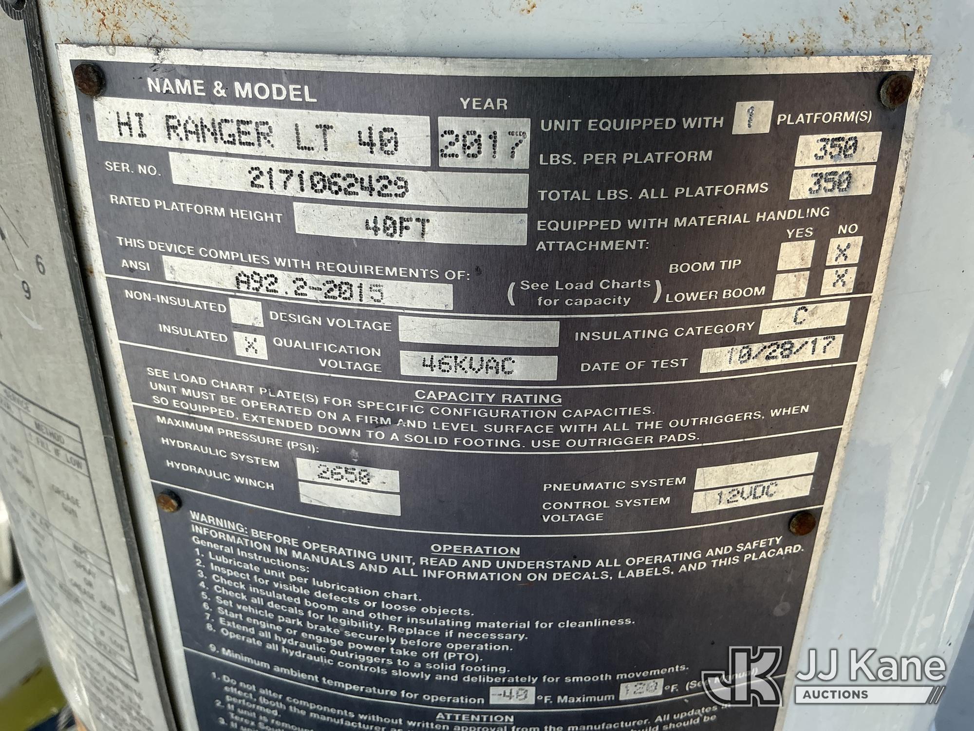 Terex/HiRanger LT40, 45 ft, Articulating & Telescopic Bucket Truck s/n 2171062429, with single-man bucket, mounted behind cab on 2017 Ford F550 4X4 Dump Chipper Truck, 6.7L diesel, Auto, A/C, with 7 ft 6 in body, front winch , (87,049 miles) (Runs & Moves) (Check Engine Light On, Airbag Light On, Upper Not Working Condition Unknown ) This is a Titled Item*