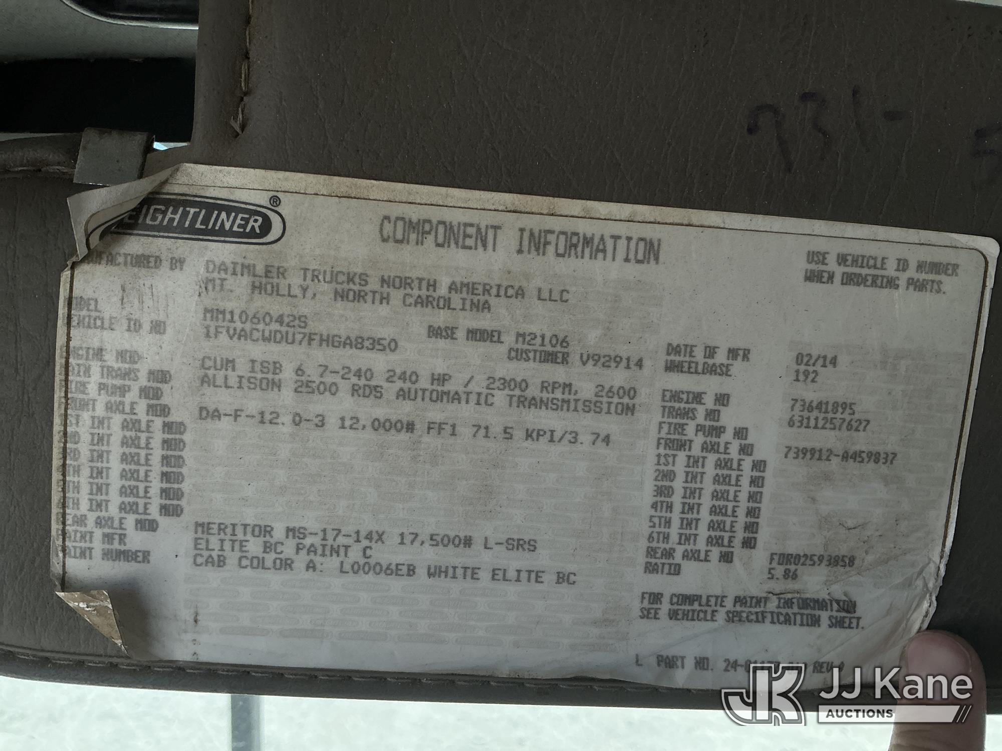 Altec LRV-56, 61 ft, Over-Center Bucket Truck s/n 0514FF2337, with single-man bucket, mounted behind cab on 2015 Freightliner M2 106 Chipper Dump Truck, Cummins ISB-240 6.7L diesel, Auto, A/C, (74,434 miles) (Runs, Moves & Upper Operates) (Check Engine Lights On) This is a Titled Item*