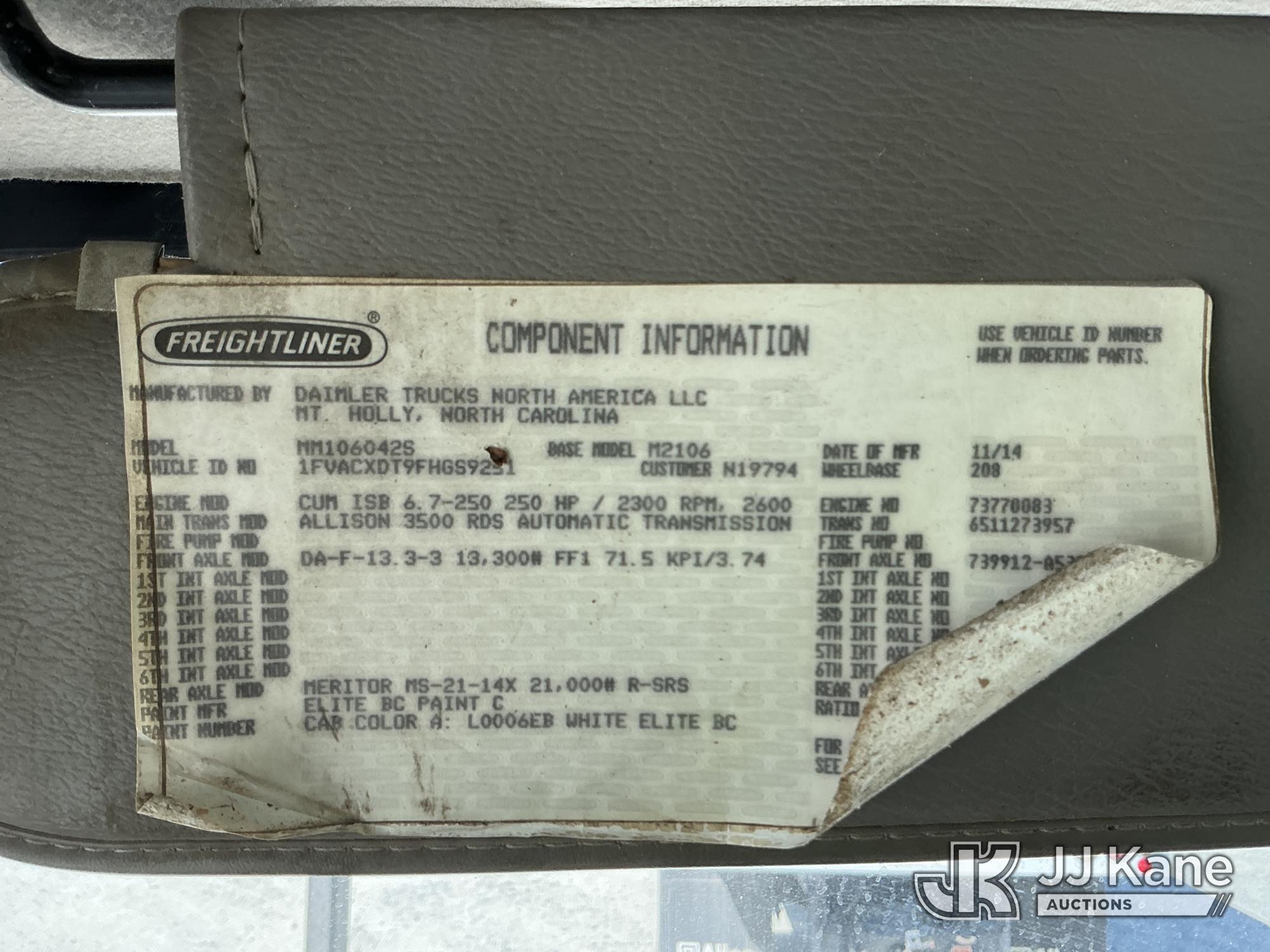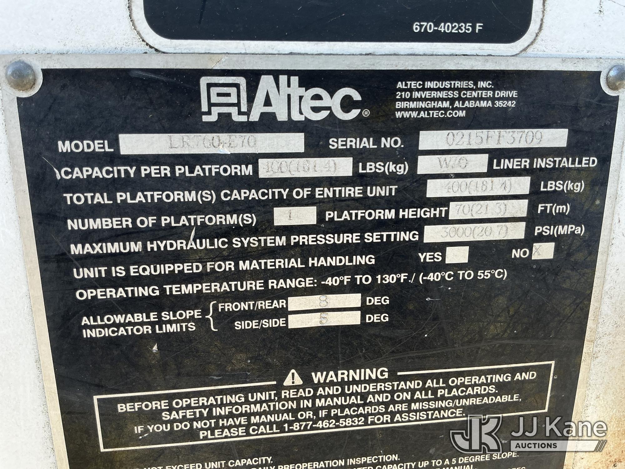 Altec LRV60-E70, 75 ft, Over-Center Elevator Bucket Truck s/n 0215FF3709, with single-man bucket, mounted behind cab on 2015 Freightliner M2 106 Utility Truck, Cummins ISB 6.7L DIESEL, Auto, A/C, (140,680 miles) (Runs, Moves & Upper Operates) ( Engine Light On) This is a Titled Item*