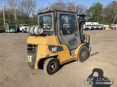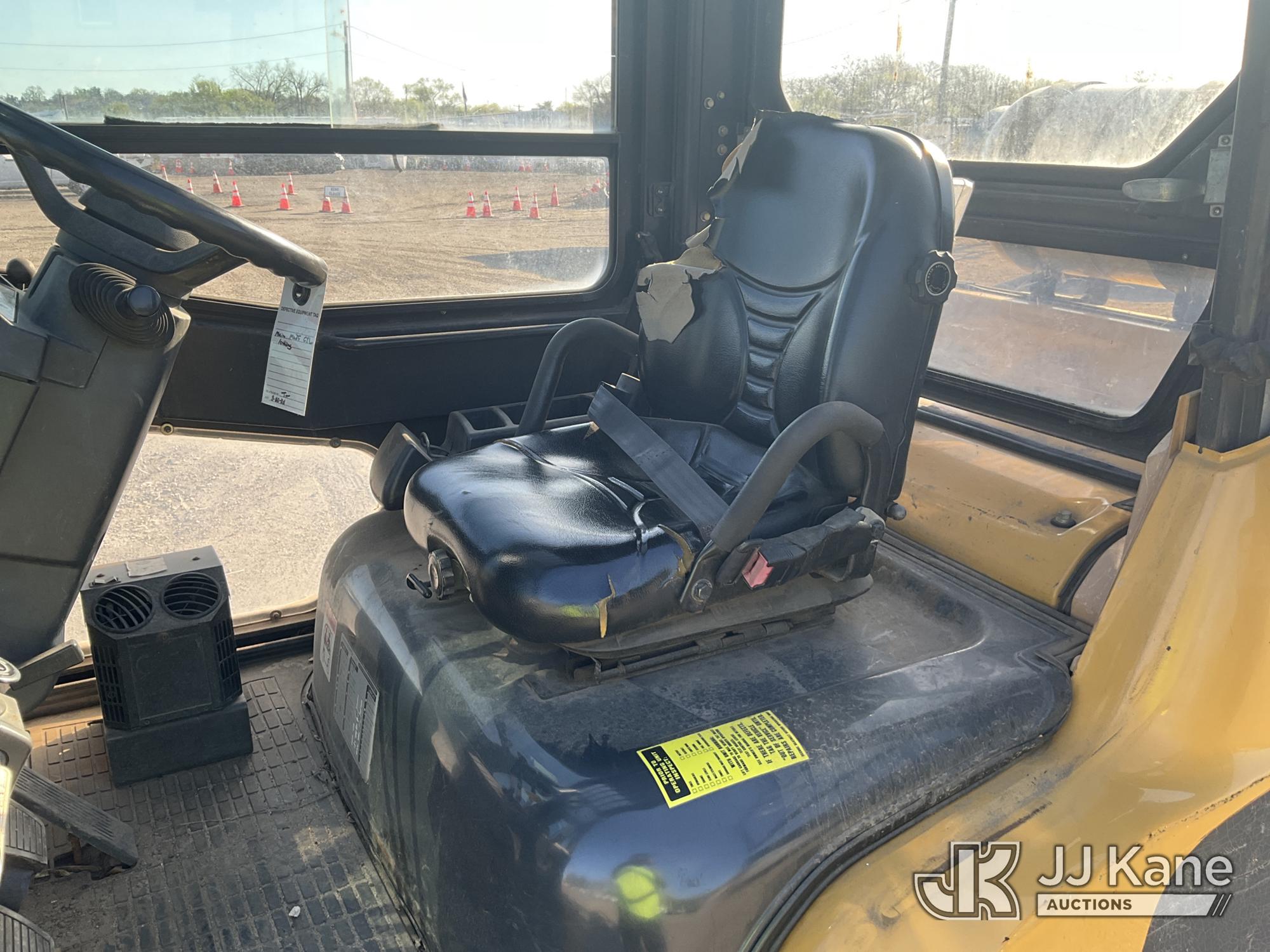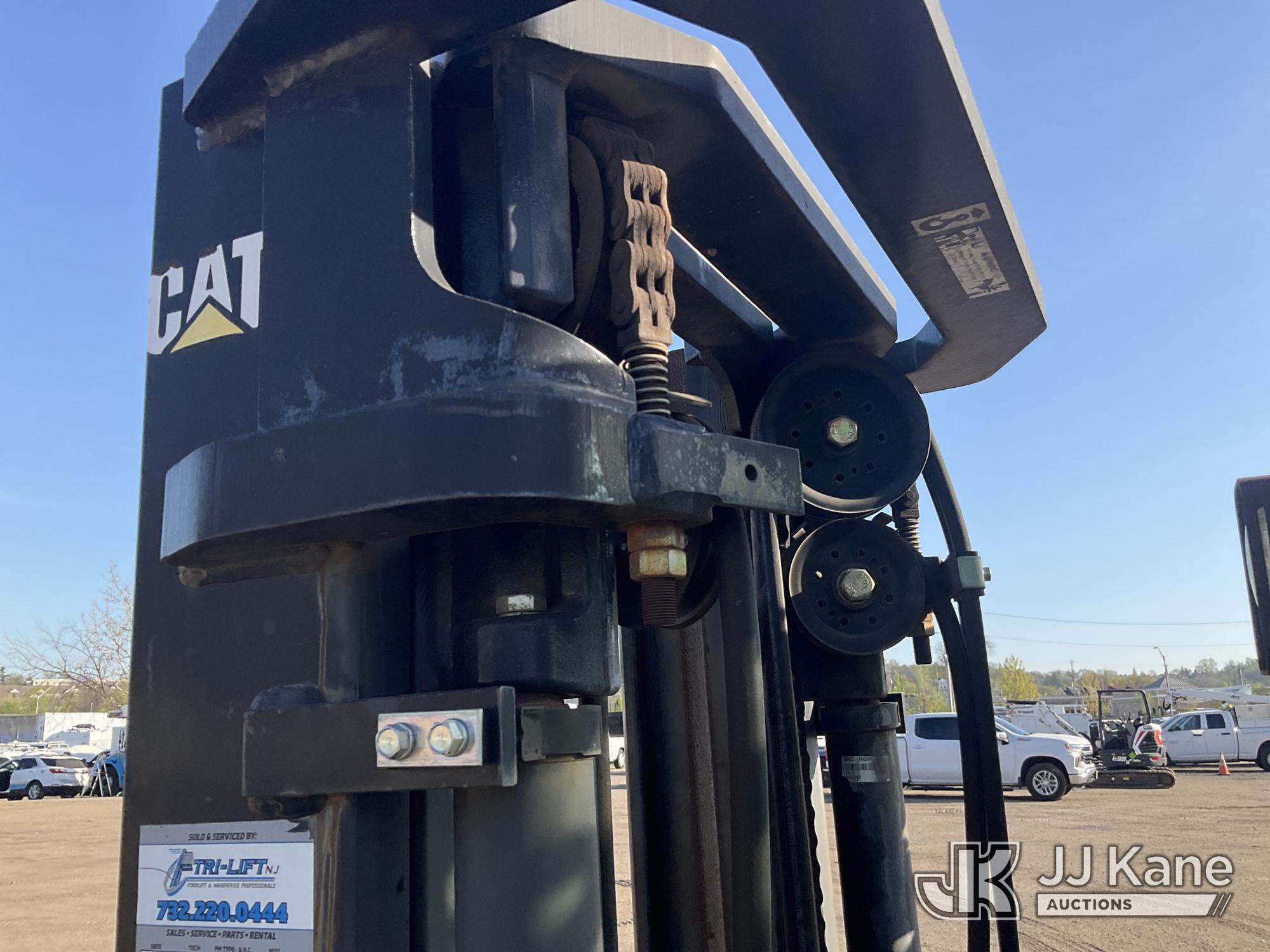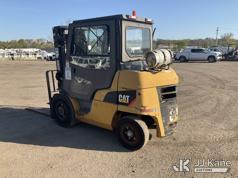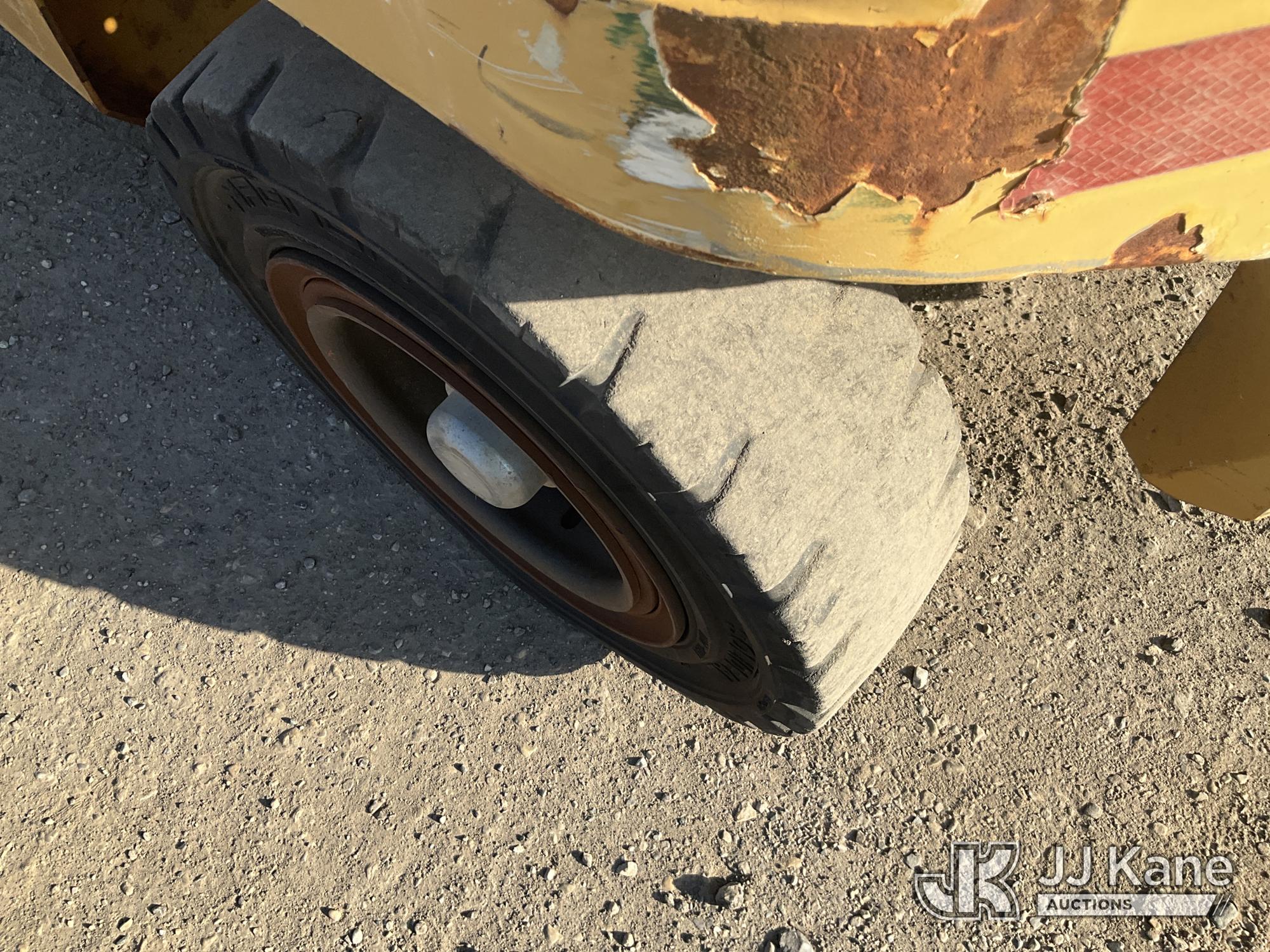 Caterpillar P8000 Solid Tired Forklift, s/n AT4000354, LPG, Shuttle, with 187in Mast Ht. 4000lb Cap., 60in Forks, EROPS, (Runs & Moves, Hyd. Leak At Main Mast Cylinder, Not Operating, No Parking Brake) (Reads 1,444 hours)*