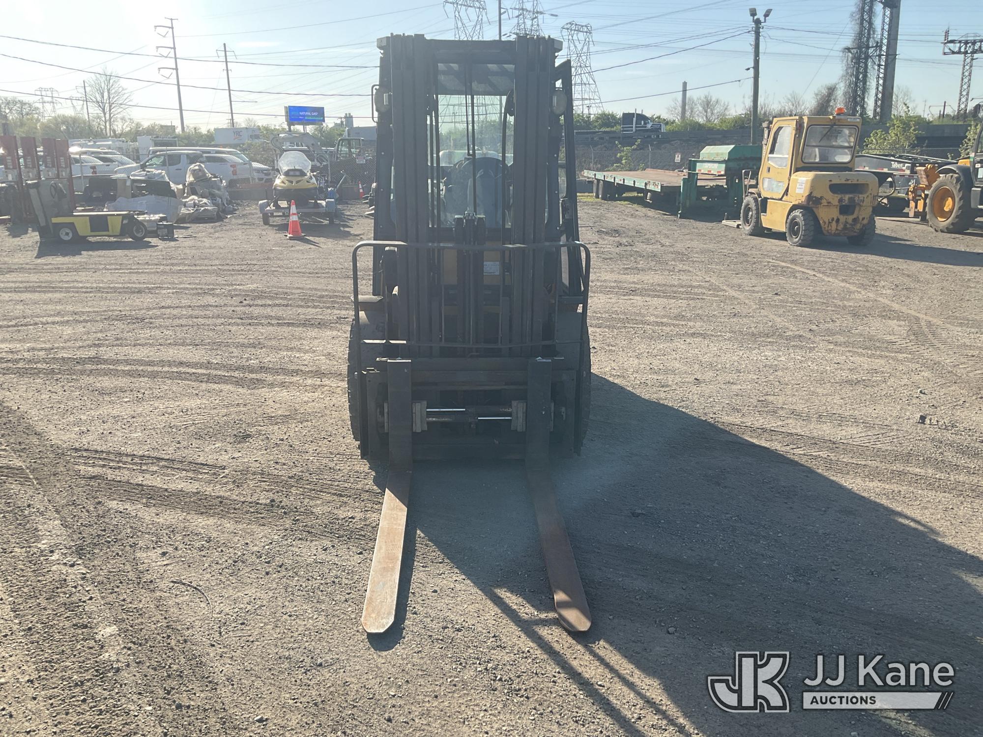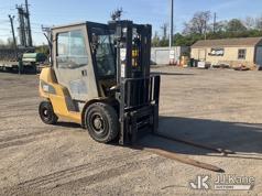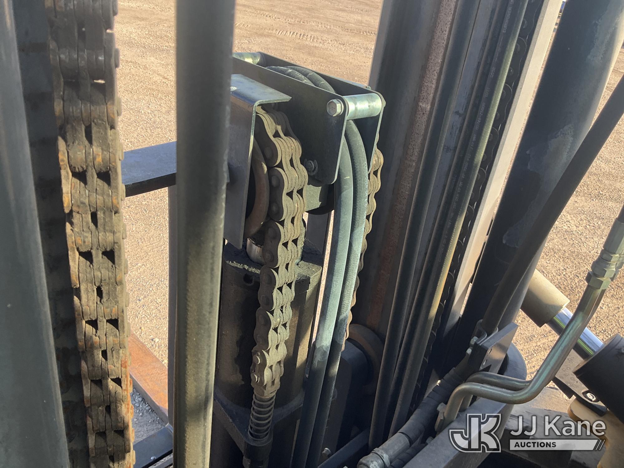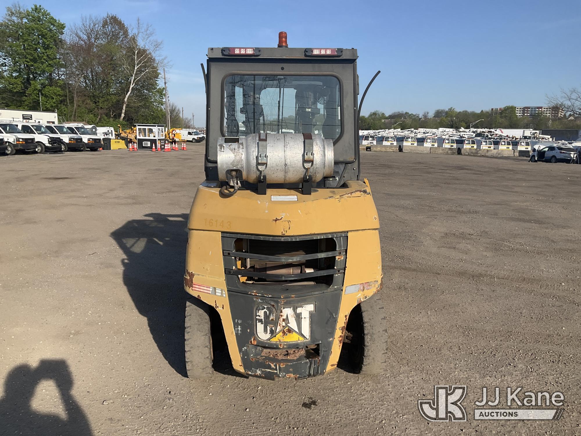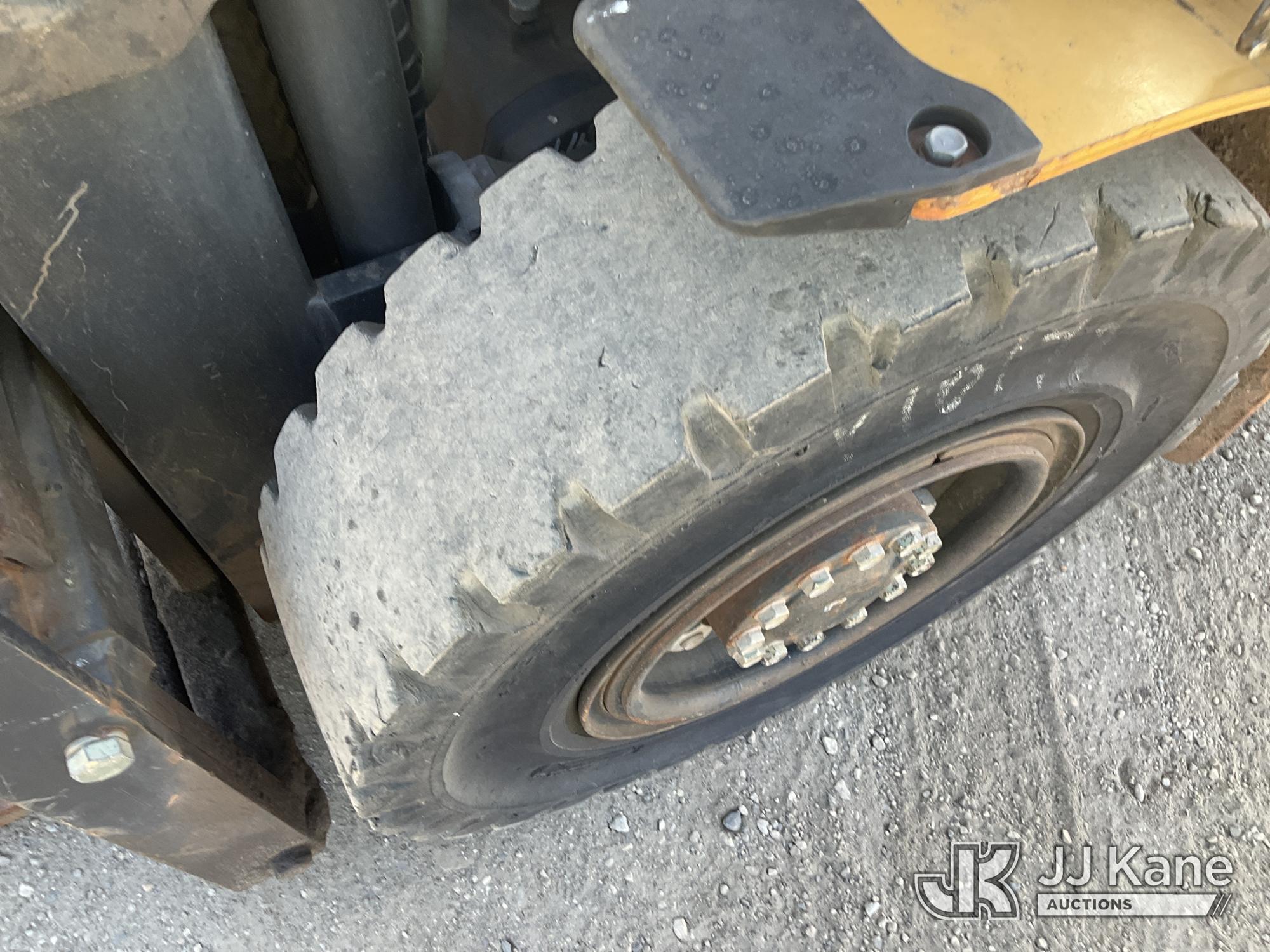 Caterpillar P8000 Solid Tired Forklift, s/n AT4000354, LPG, Shuttle, with 187in Mast Ht. 4000lb Cap., 60in Forks, EROPS, (Runs & Moves, Hyd. Leak At Main Mast Cylinder, Not Operating, No Parking Brake) (Reads 1,444 hours)*
