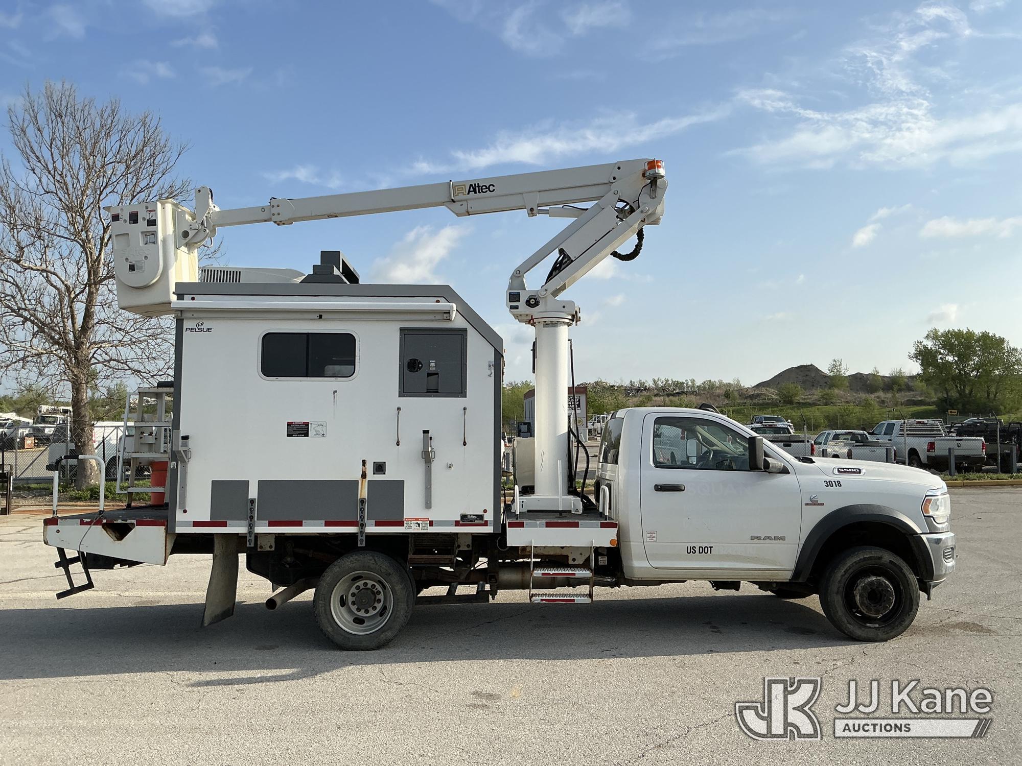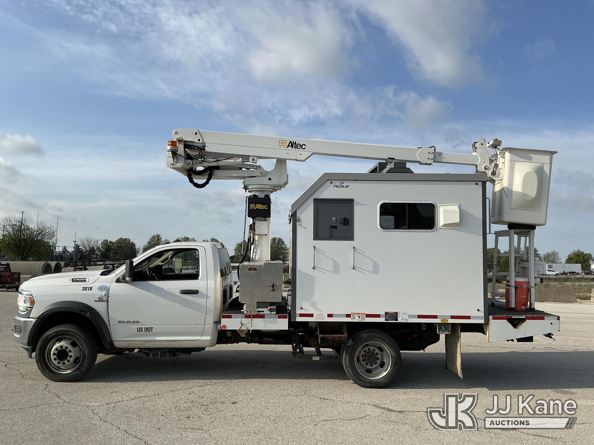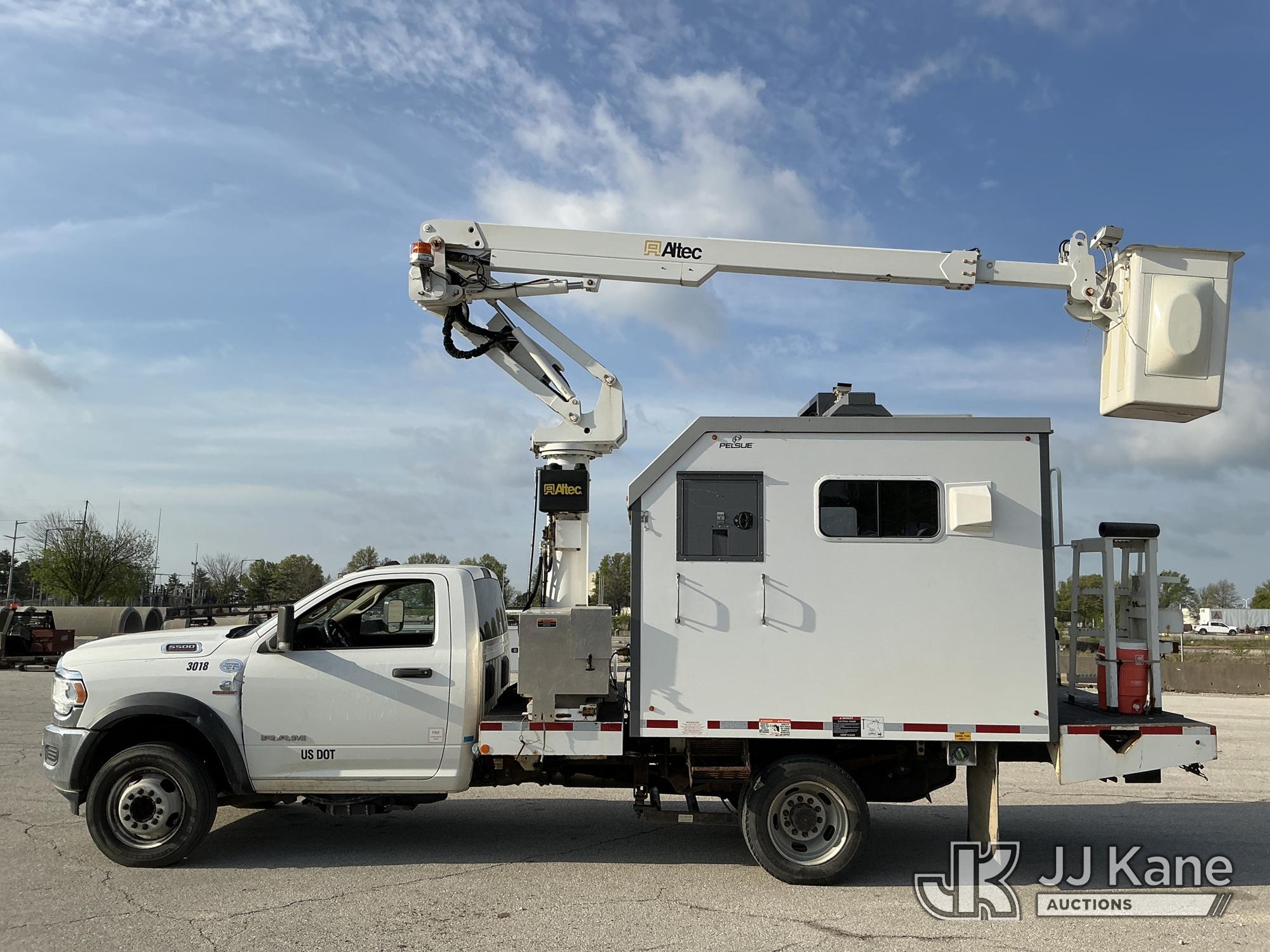 Altec AT235, 40 ft, Articulating & Telescopic Bucket Truck s/n 0120BX13469, with Single-Man Bucket, mounted behind cab on 2019 RAM 5500 Enclosed Fiber Optic Splicing Truck, 6.7L Turbo Diesel 4WD, Auto, A/C, with Cummins Onan Generator , (92,205 miles) (Runs, Moves & Upper Operates) (Reads 6,614 hours) This is a Titled Item*