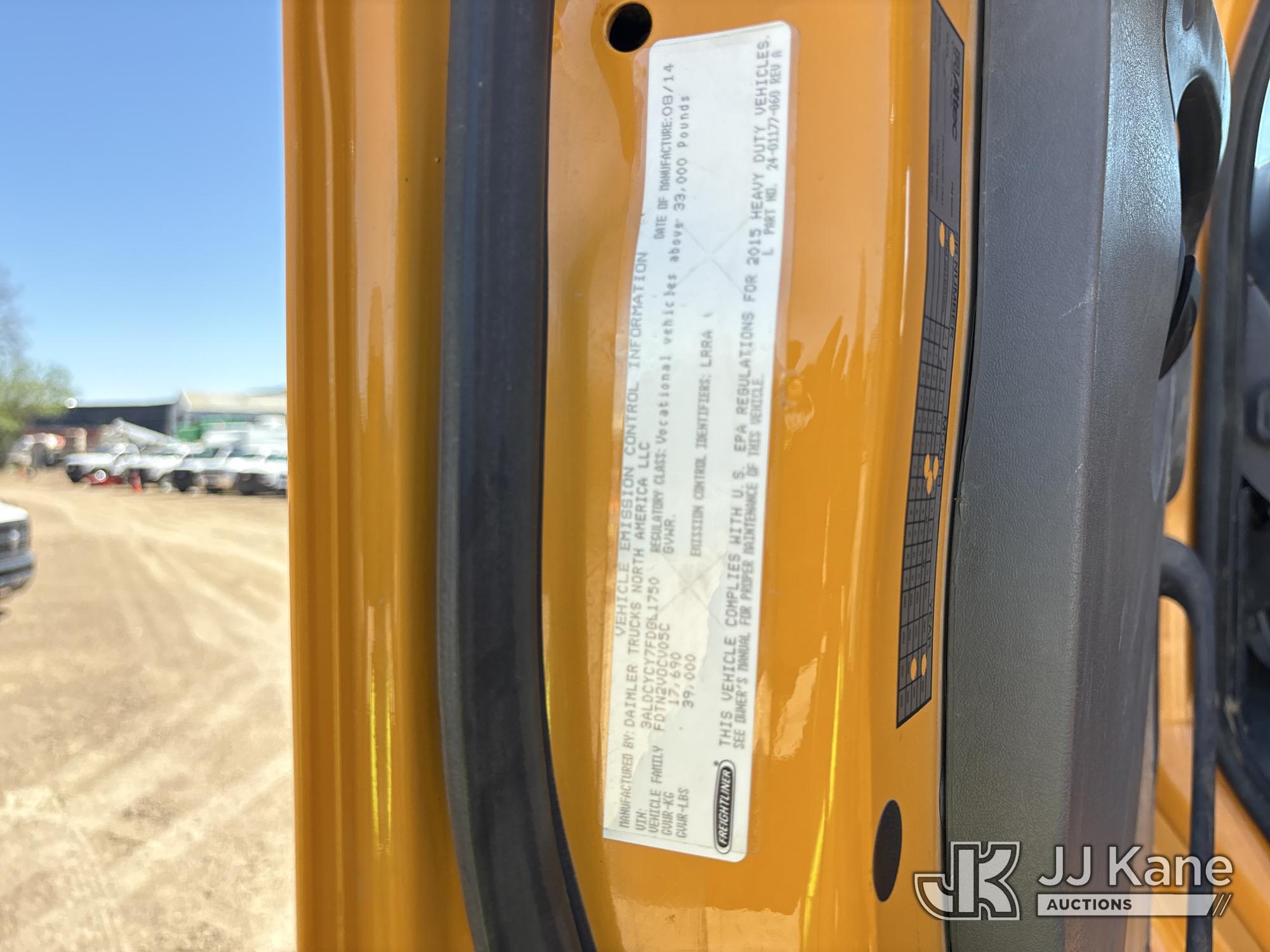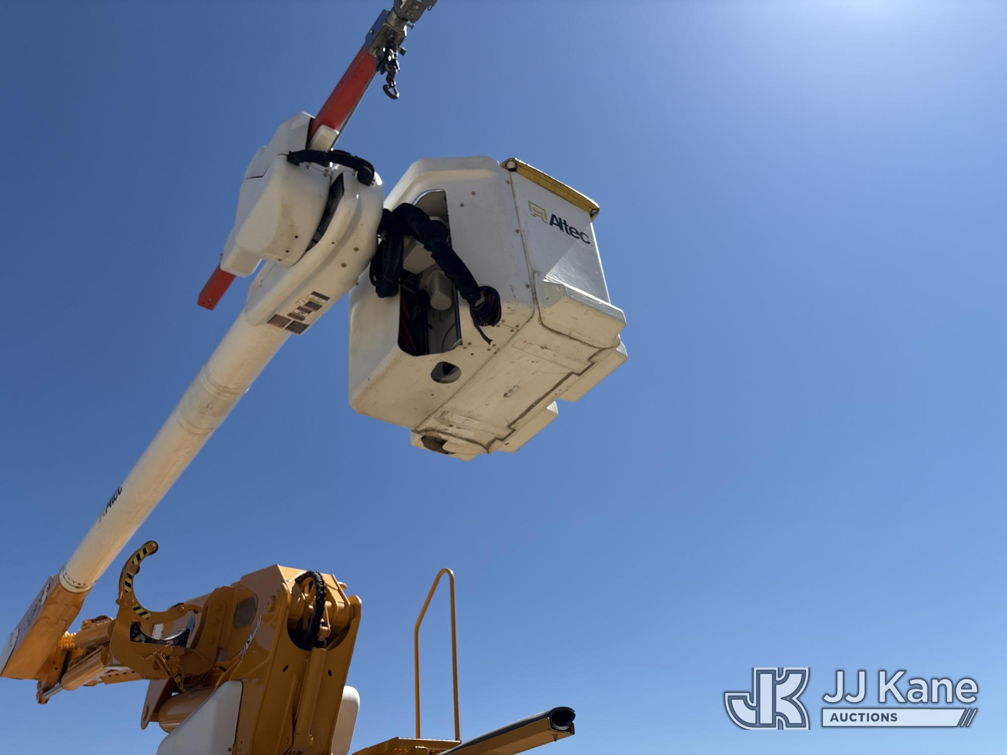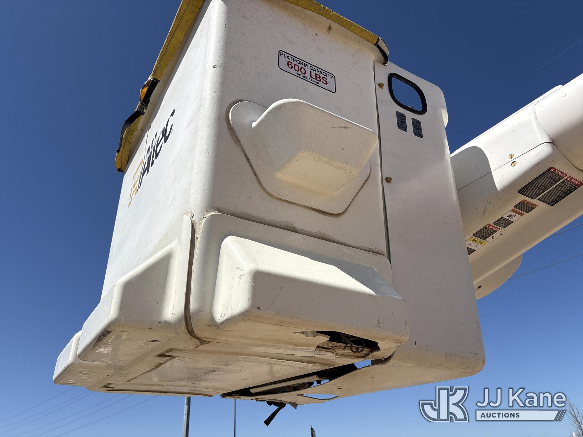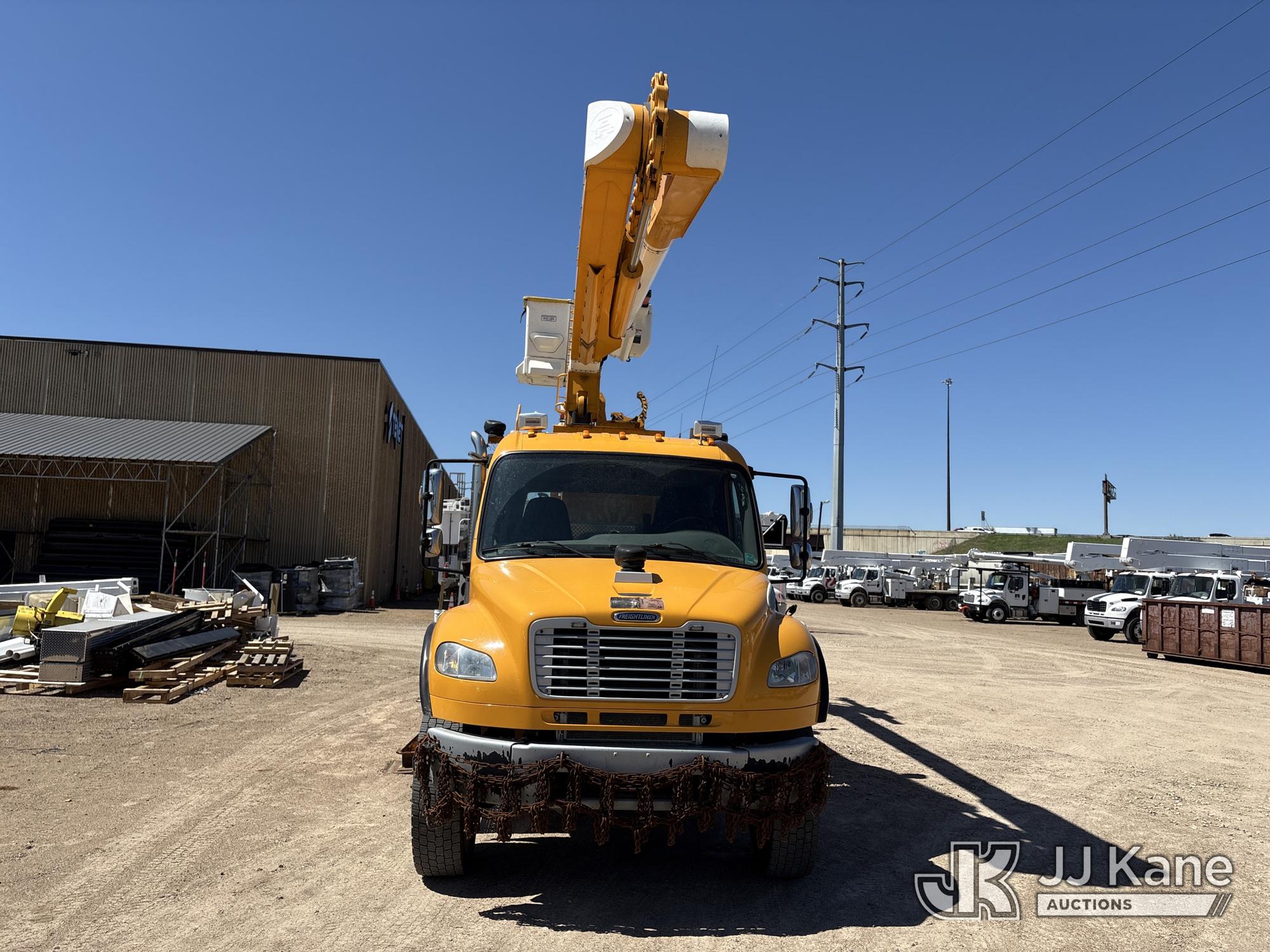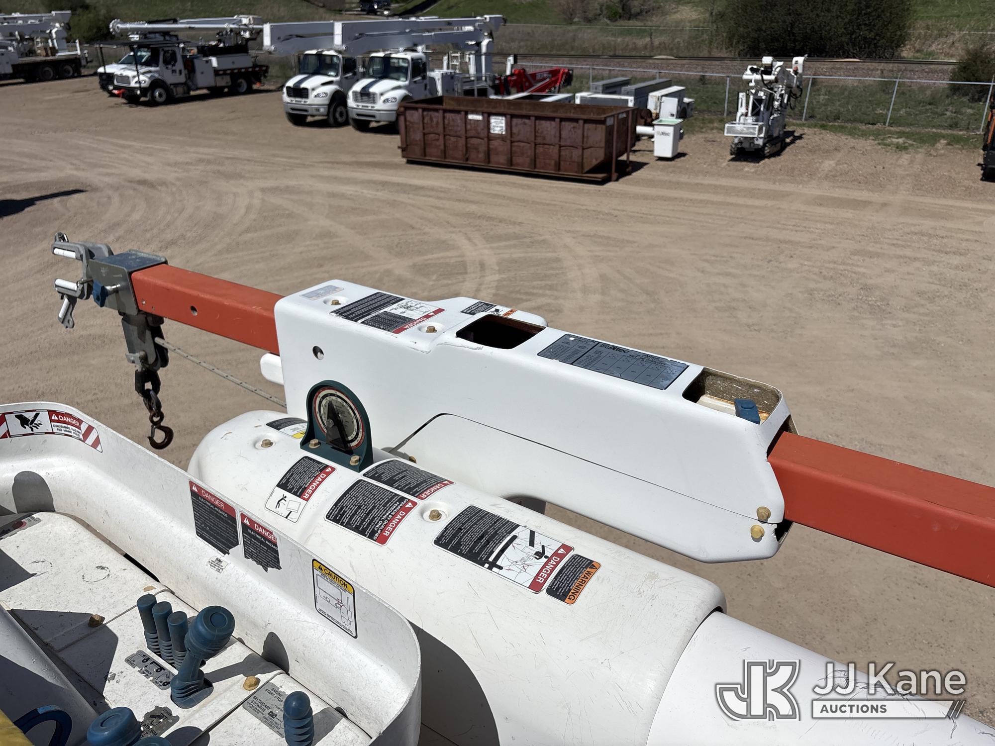 Altec AM50E, 55 ft, Over-Center Material Handling Bucket Truck s/n 1014DM5379, with 2-man bucket, 4 hydraulic outriggers, mounted behind cab on 2015 Freightliner M2 106 Extended-Cab Utility Truck, 8.9L 4X4, DIESEL, Auto, A/C, (195,304 miles) Co-op Owned ((Runs, Moves, Upper Operates)(Check Engine Light On) (Hole in Bucket) (Reads 12,867 hours) This is a Titled Item*