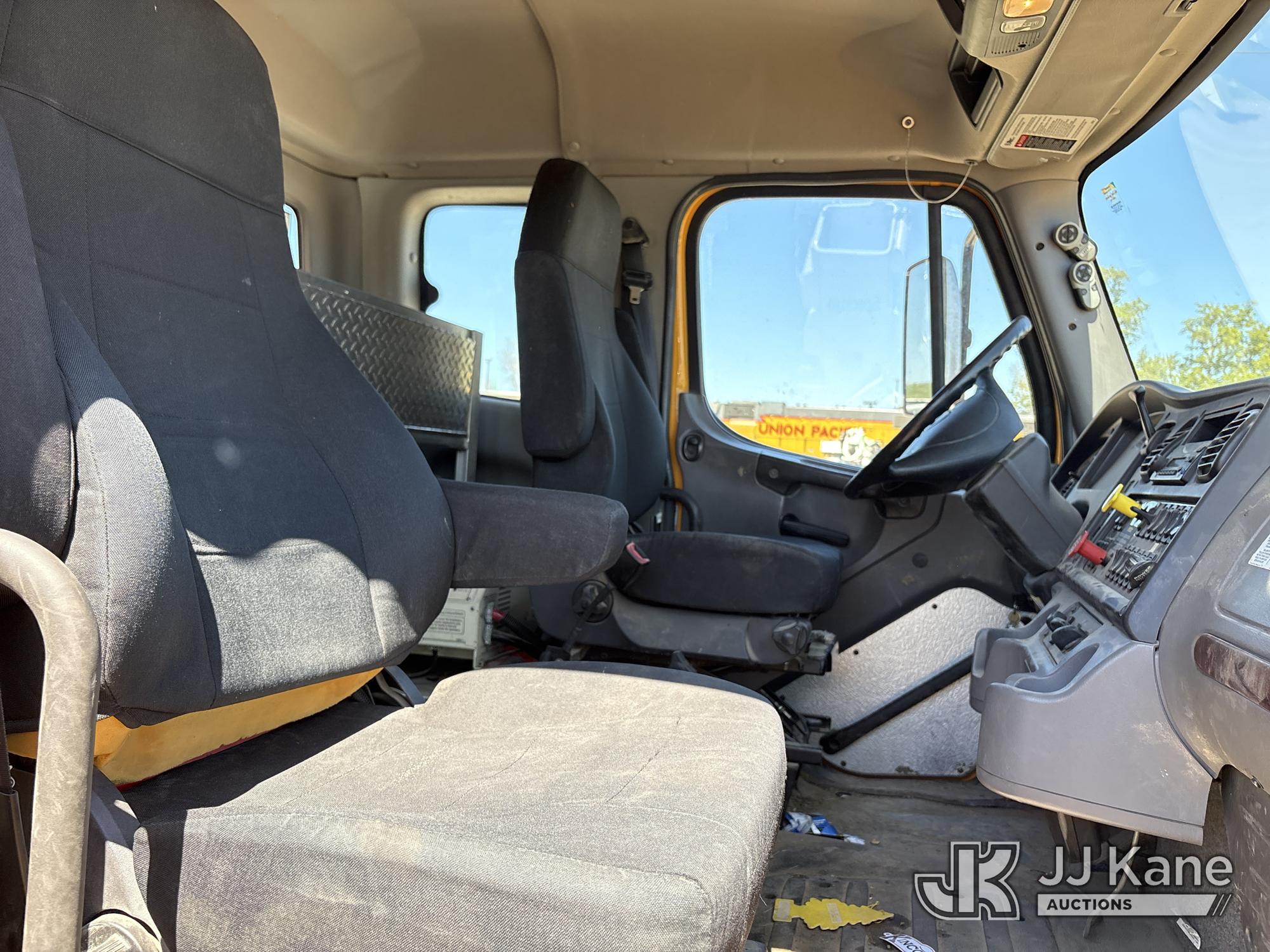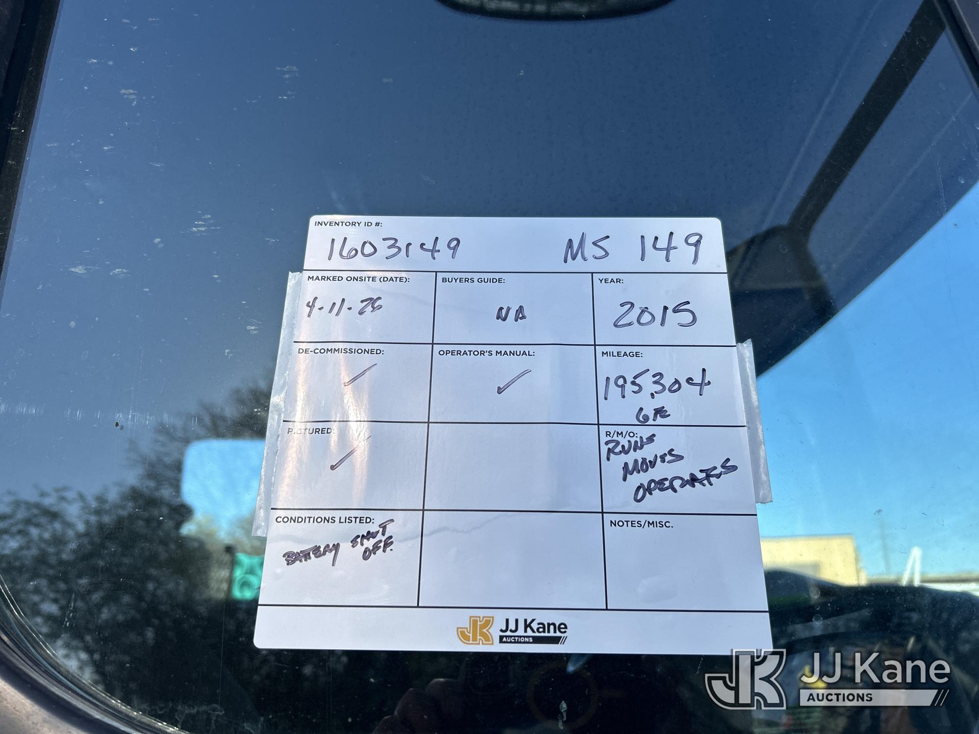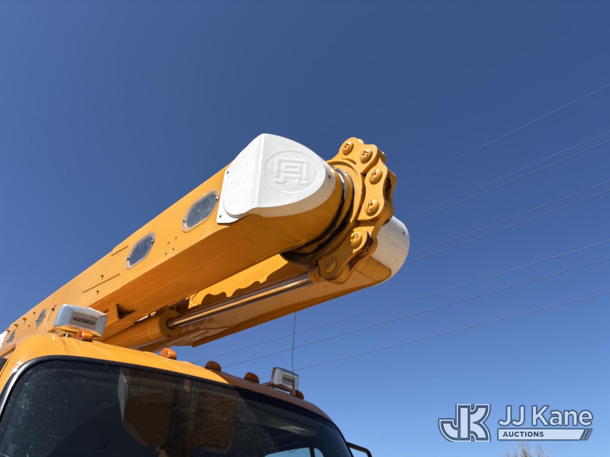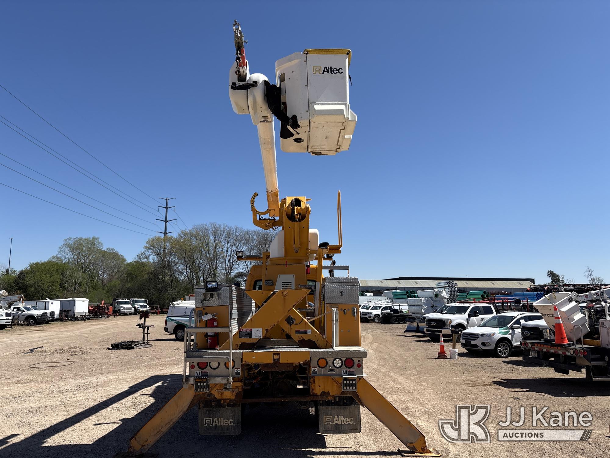 Altec AM50E, 55 ft, Over-Center Material Handling Bucket Truck s/n 1014DM5379, with 2-man bucket, 4 hydraulic outriggers, mounted behind cab on 2015 Freightliner M2 106 Extended-Cab Utility Truck, 8.9L 4X4, DIESEL, Auto, A/C, (195,304 miles) Co-op Owned ((Runs, Moves, Upper Operates)(Check Engine Light On) (Hole in Bucket) (Reads 12,867 hours) This is a Titled Item*