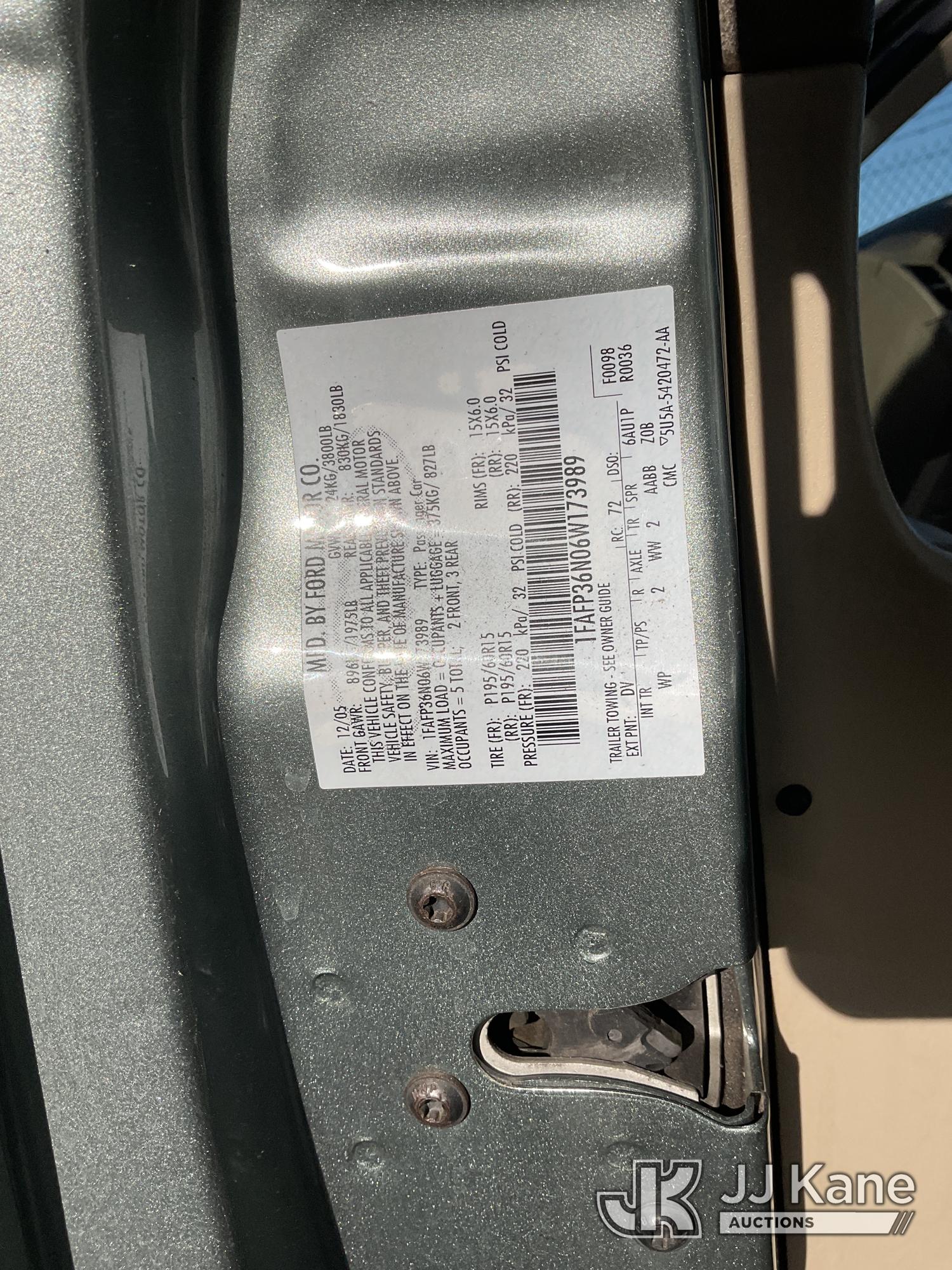 2006 Ford Focus Wagon 4-Door Station Wagon, s/n 1FAFP36N06W173989, 2.0L L4 DOHC 16V FWD, GAS, Auto, A/C, (Exempt from Odometer Disclosure - Reads 71,582 miles) SMOG (Runs & Moves, Passed Smog, Dried and Cracked Tires) (Bidding Restricted to Licensed Vehicle Dealers Only), This is a Titled Item*