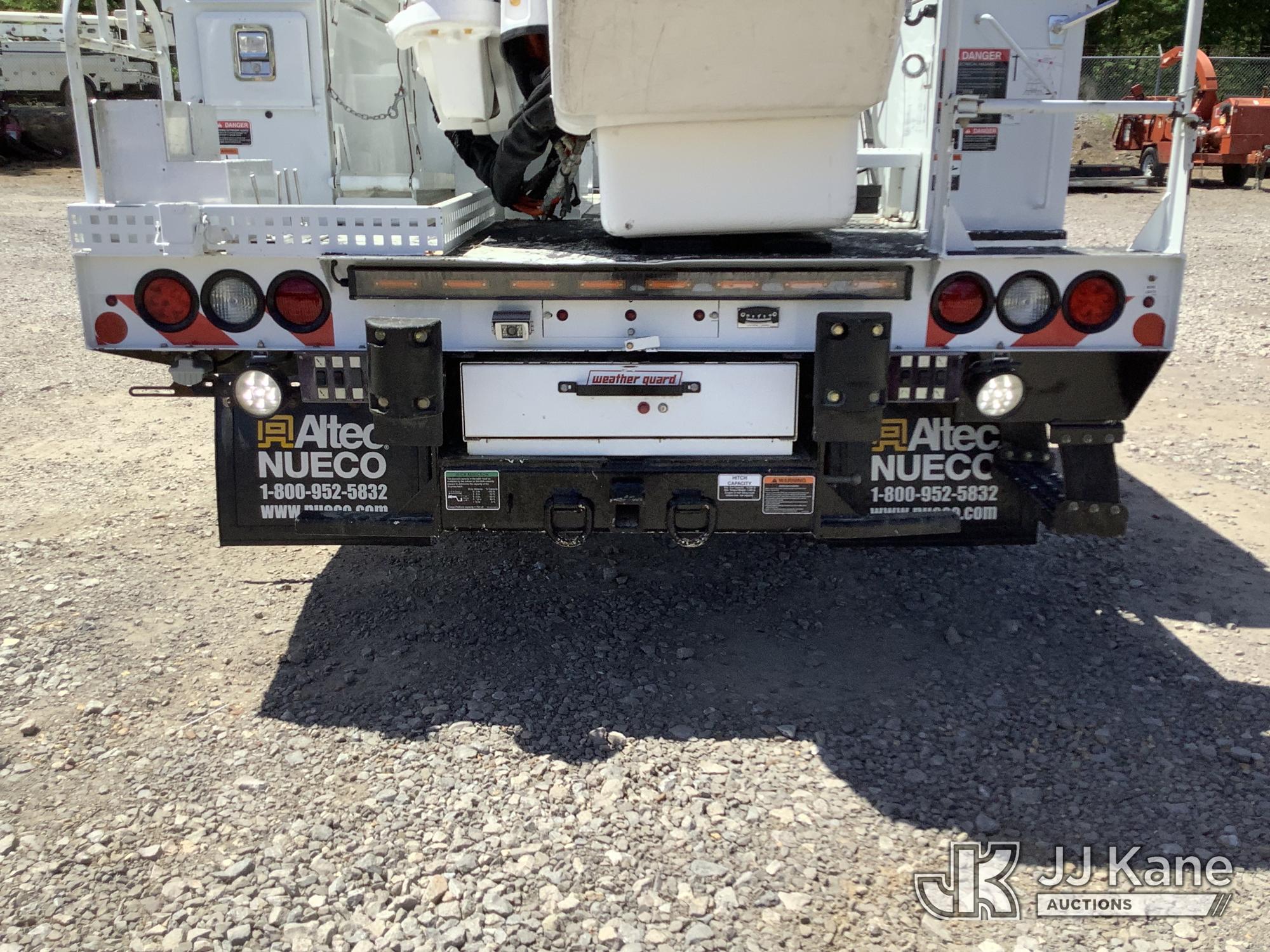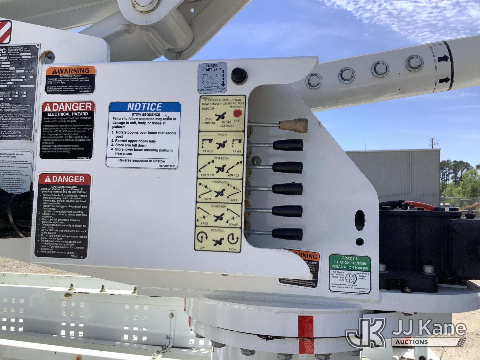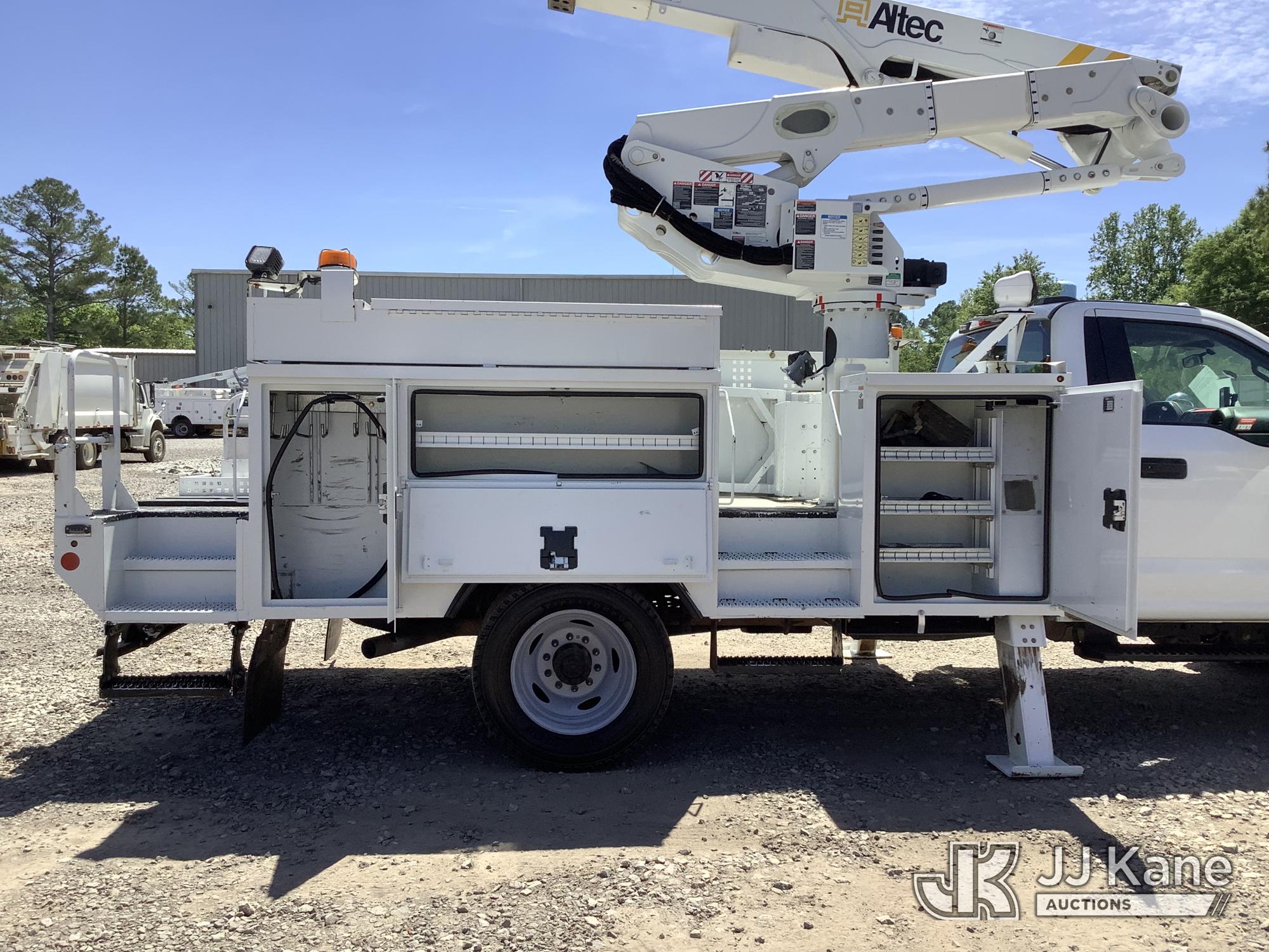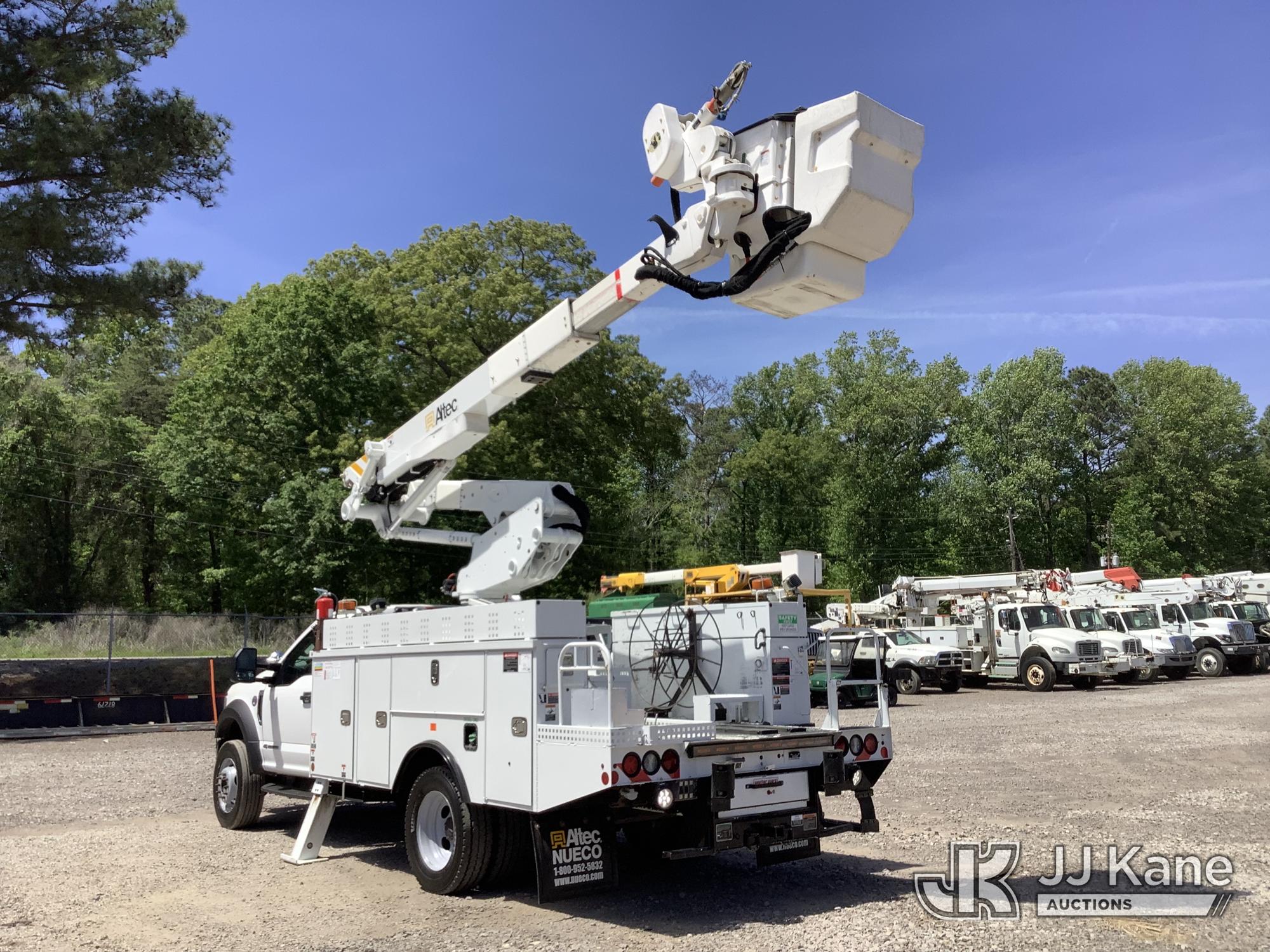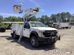 Altec AT41M, 46 ft, Articulating & Telescopic Material Handling Bucket Truck s/n 0621GX1762, with single-man bucket & 2 hyd outriggers, mounted behind cab on 2021 Ford F550 Service Truck, 6.7L Diesel, RWD, Auto, A/C, with front winch, (135,490 miles) (Runs, Moves & Upper Operates) This is a Titled Item*