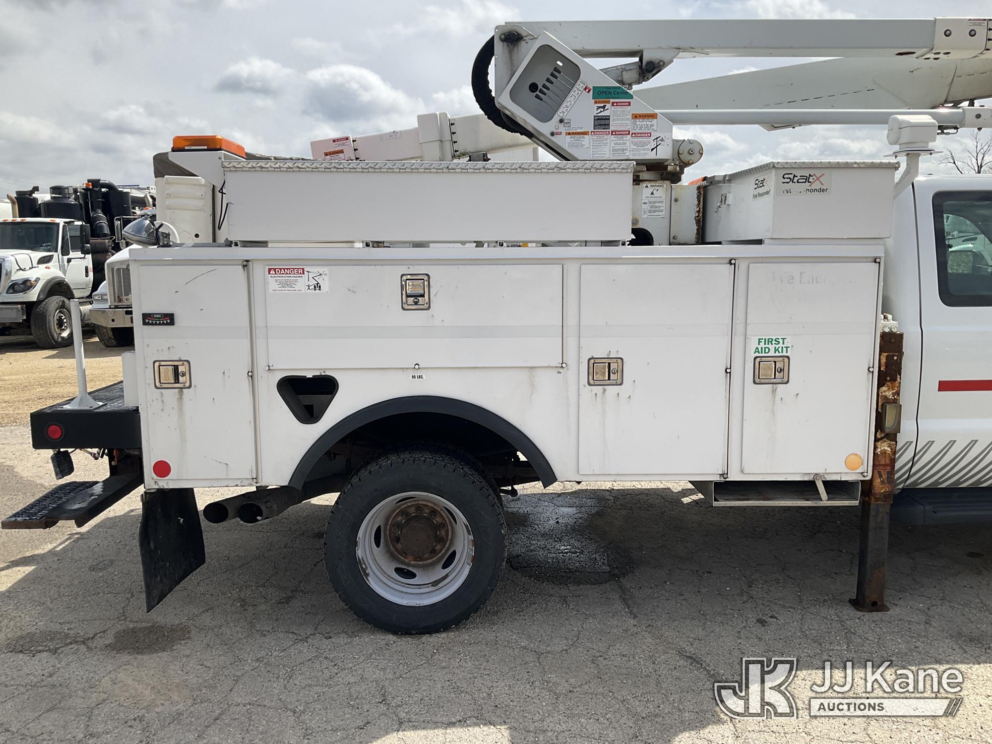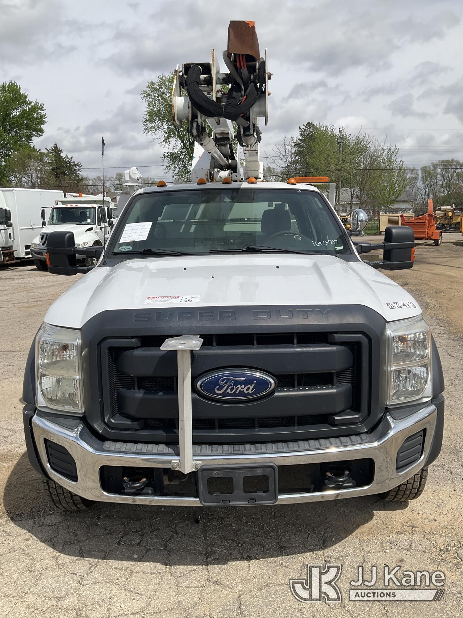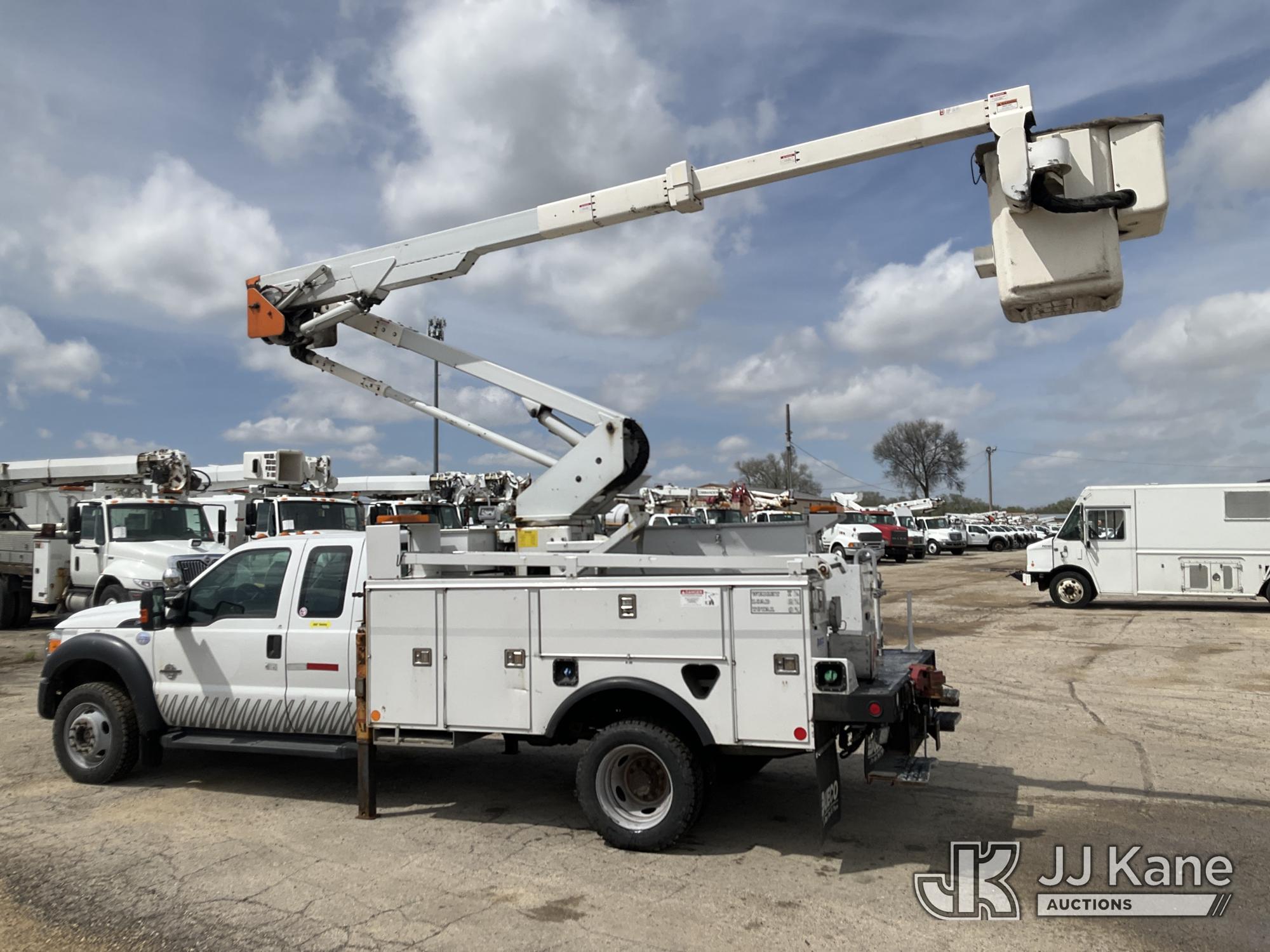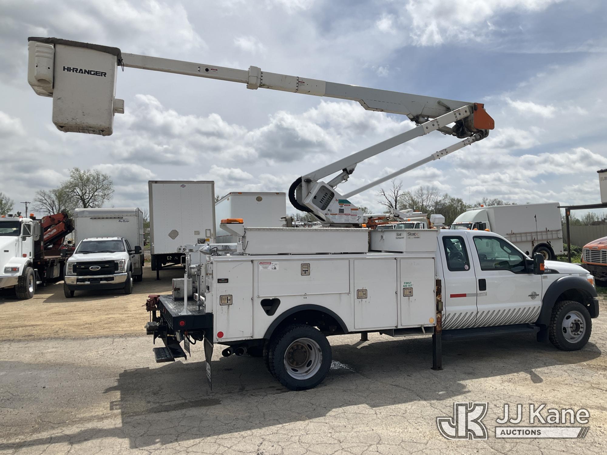 HiRanger LT40, 45 ft, Articulating & Telescopic Bucket Truck s/n 2130148738, with single-man bucket & 2 hyd outriggers, mounted behind cab on 2012 Ford F550 4x4 Extended-Cab Service Truck, 6.7L V8 OHV 16V Diesel, Auto, A/C, (155,879 miles) (Runs, Moves & Upper Operates)(Dash Indicator On) This is a Titled Item*