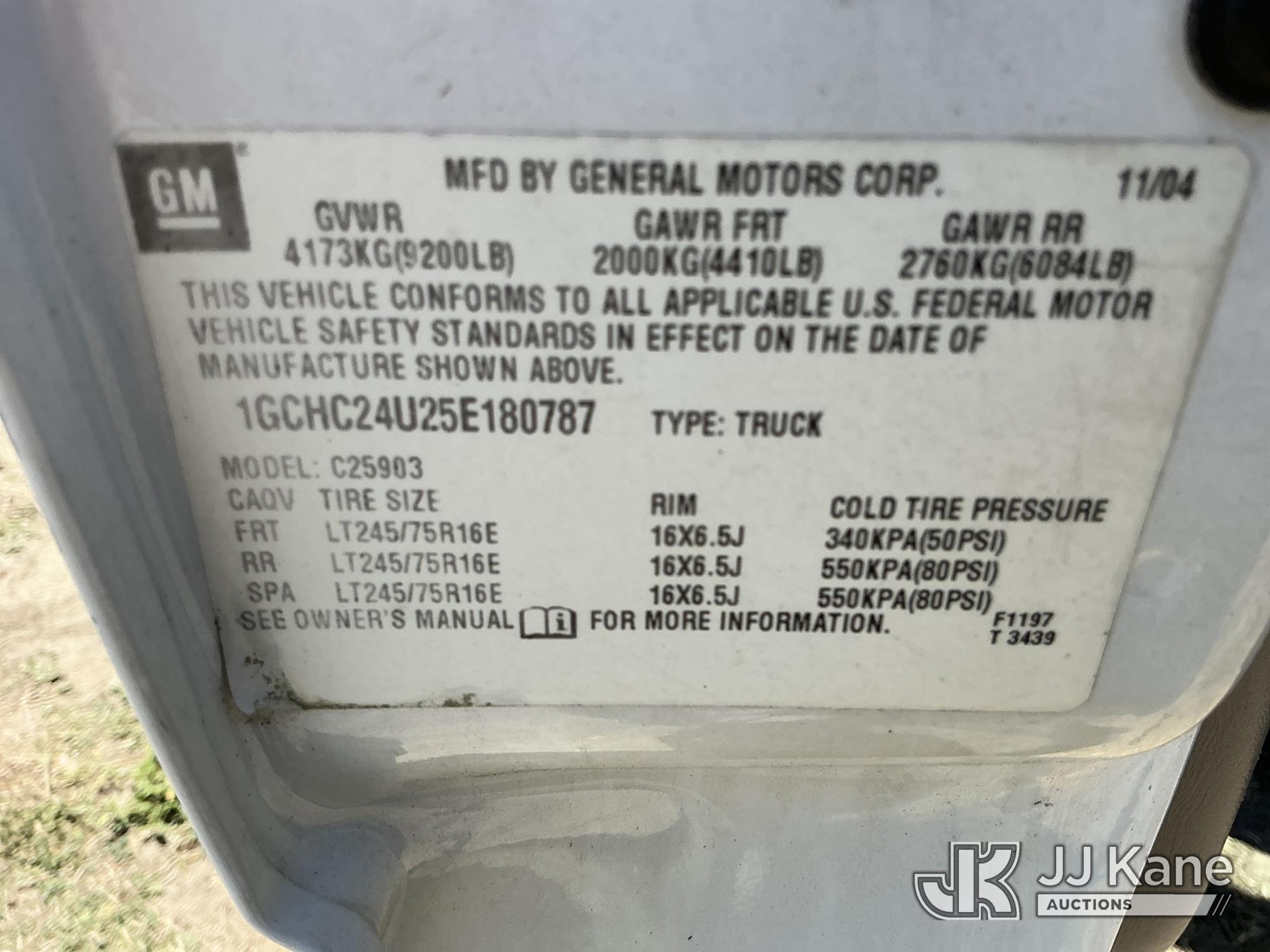 2005 Chevrolet Silverado 2500HD Pickup Truck, 8-cyl gas, RWD, Auto, A/C, with Generator Serial: PB-10837-0906, (Exempt from Odometer Disclosure - Reads 148,437 miles) (Runs & Moves) (Jump To Start, Generator INOP, Generator Condition Unknown) (FL Residents Purchasing Titled Items - tax, title & registration fees will be collected at the maximum rate of $400.00 under 25,999 and $800.00 for Over 26,000 and $250.00 trailers - Proof of insurance is mandatory; Out of State Residents Purchasing Title Items - tax will be collected based upon your state rate.) This is a Titled Item*