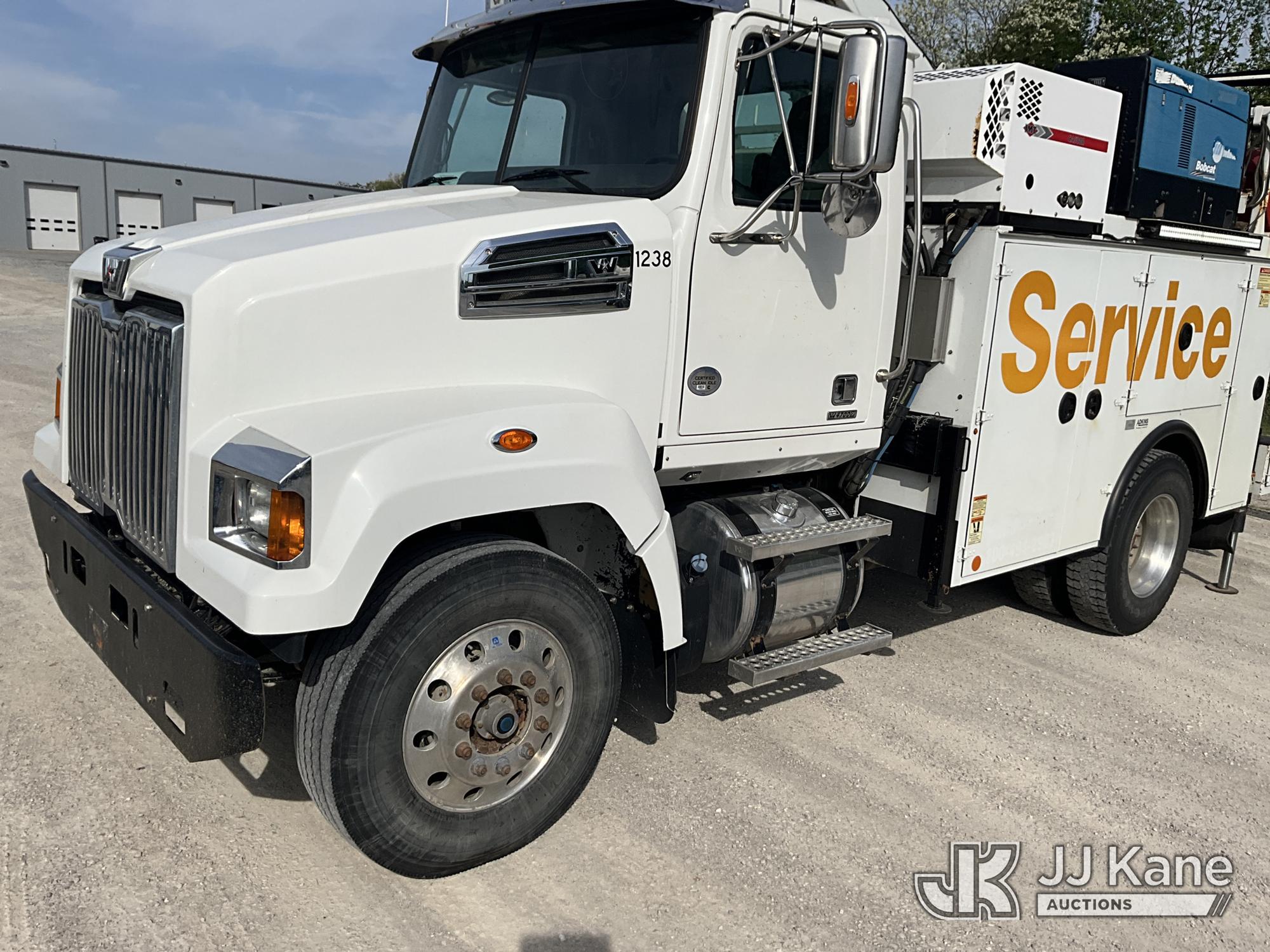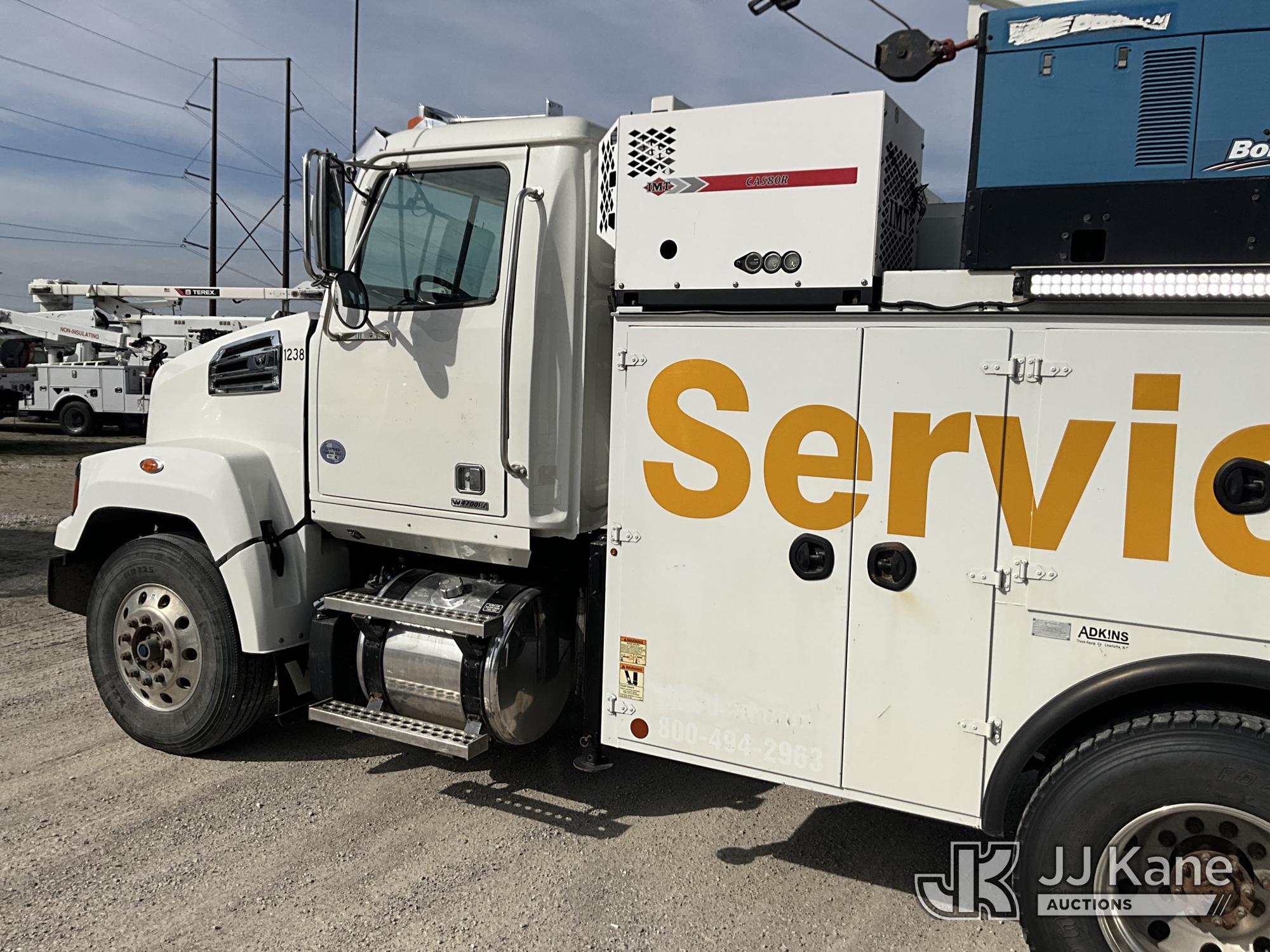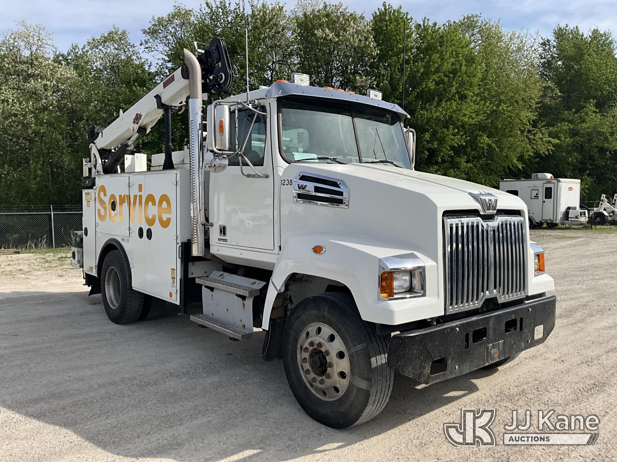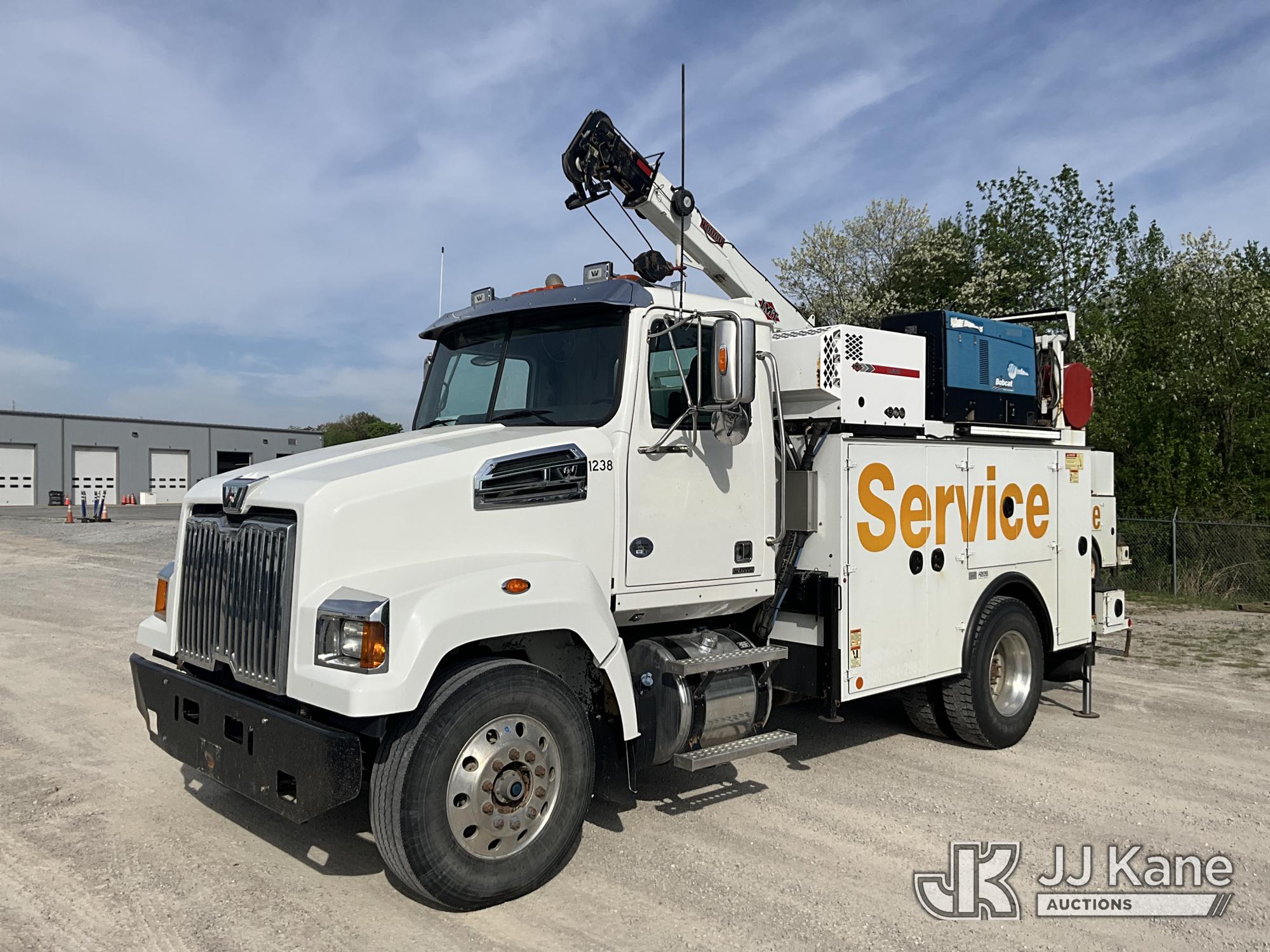 2019 Western Star Trucks 4700SF Mechanics Service Truck, Cummins L9 9.0L L6 diesel, Auto, A/C, with IMT Service Crane 2 Stage Hyd. Boom, 25 ft. Sheave Height, 10,000 lbs. (Reads 215 Hours) with remote control, IMT Air Compressor (Reads 197 Hours), Bobcat Welder/Generator, Aux Tank & 2 hyd. outriggers, (one out and down), (205,249 miles) (Runs, Moves & Crane Operates, Minor Hyd. Leak in Crane) This is a Titled Item*