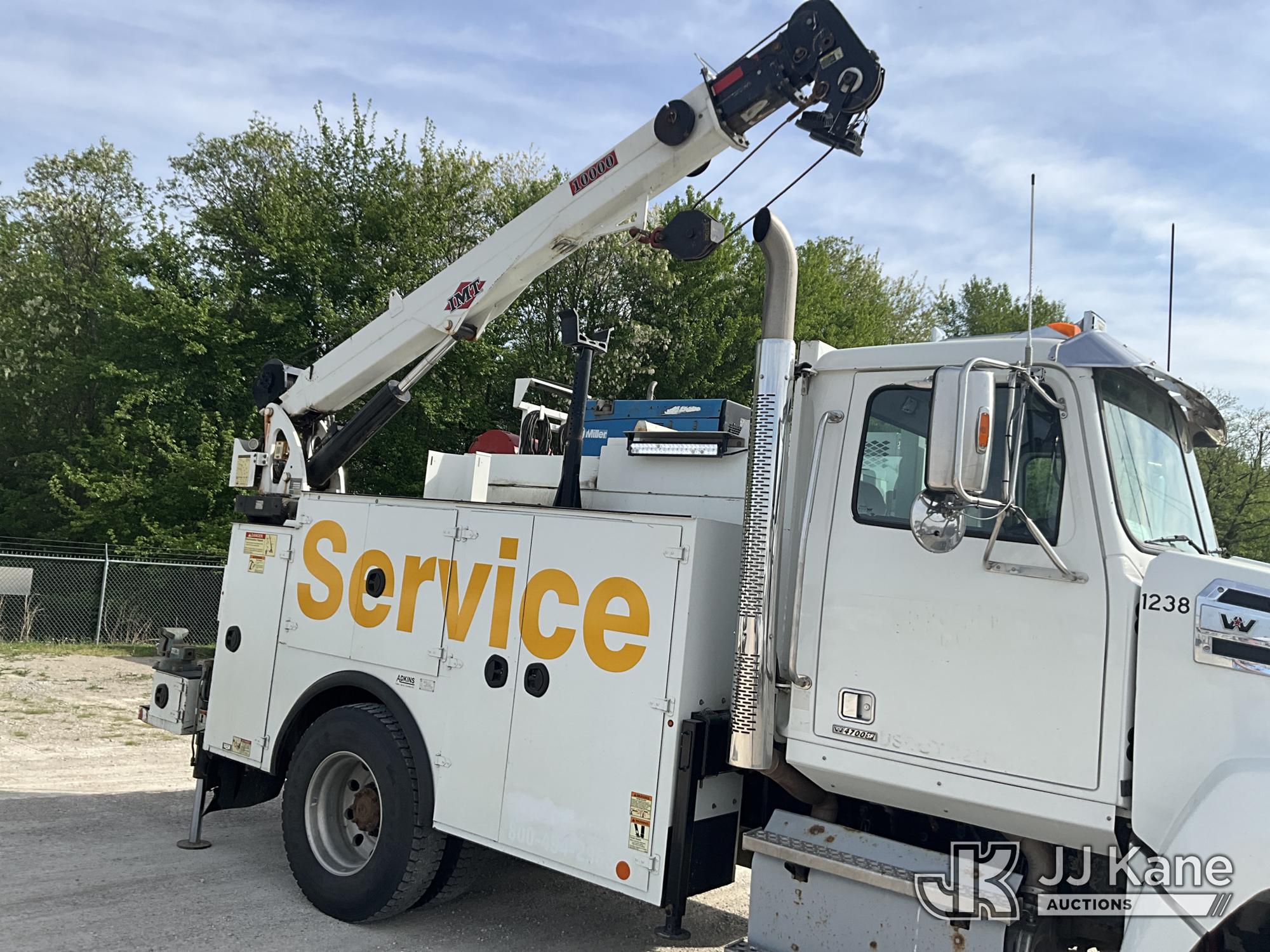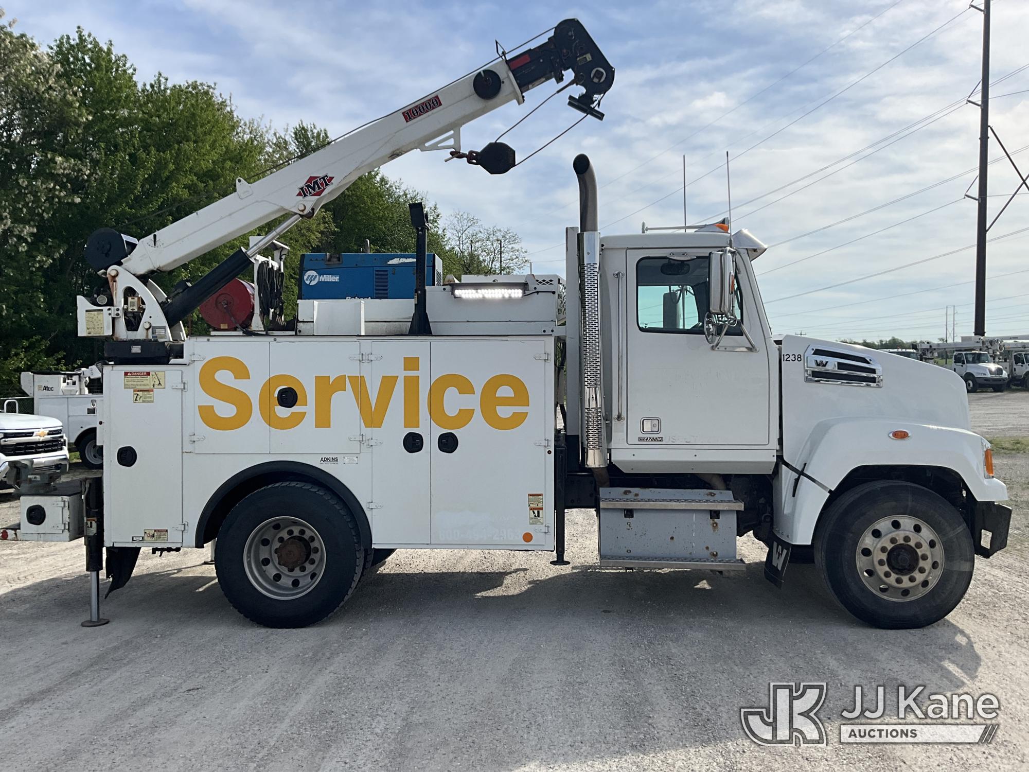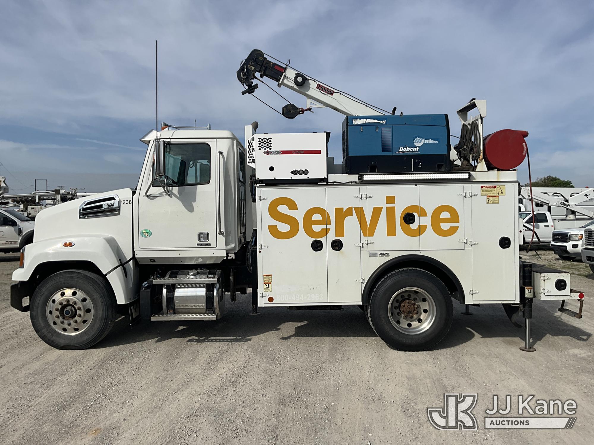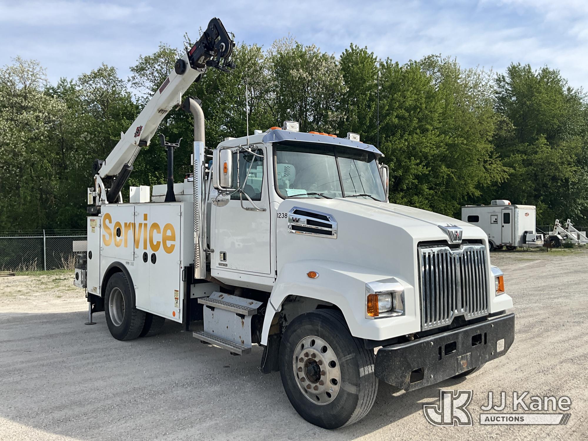 2019 Western Star Trucks 4700SF Mechanics Service Truck, Cummins L9 9.0L L6 diesel, Auto, A/C, with IMT Service Crane 2 Stage Hyd. Boom, 25 ft. Sheave Height, 10,000 lbs. (Reads 215 Hours) with remote control, IMT Air Compressor (Reads 197 Hours), Bobcat Welder/Generator, Aux Tank & 2 hyd. outriggers, (one out and down), (205,249 miles) (Runs, Moves & Crane Operates, Minor Hyd. Leak in Crane) This is a Titled Item*