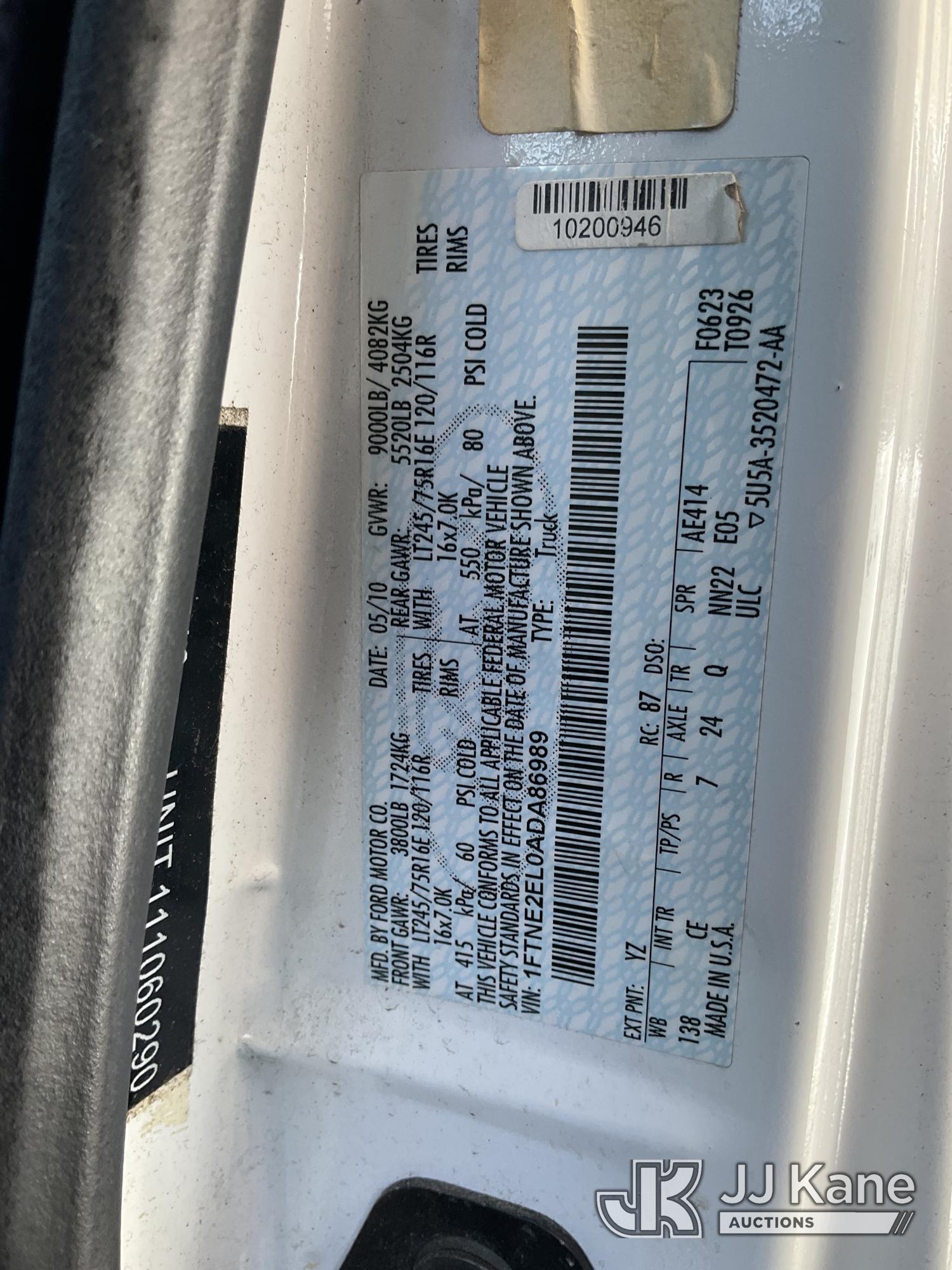 2010 Ford Econoline E-250 Cargo Window Van, 8-cyl, CNG Only, 4-Speed Automatic, A/C, with Ladder rack, (076,155 miles) (Runs & Moves) (CNG Only, CNG Tank Expired 04-2025) (Bidding Restricted to Licensed Vehicle Dealers Only), This is a Titled Item*