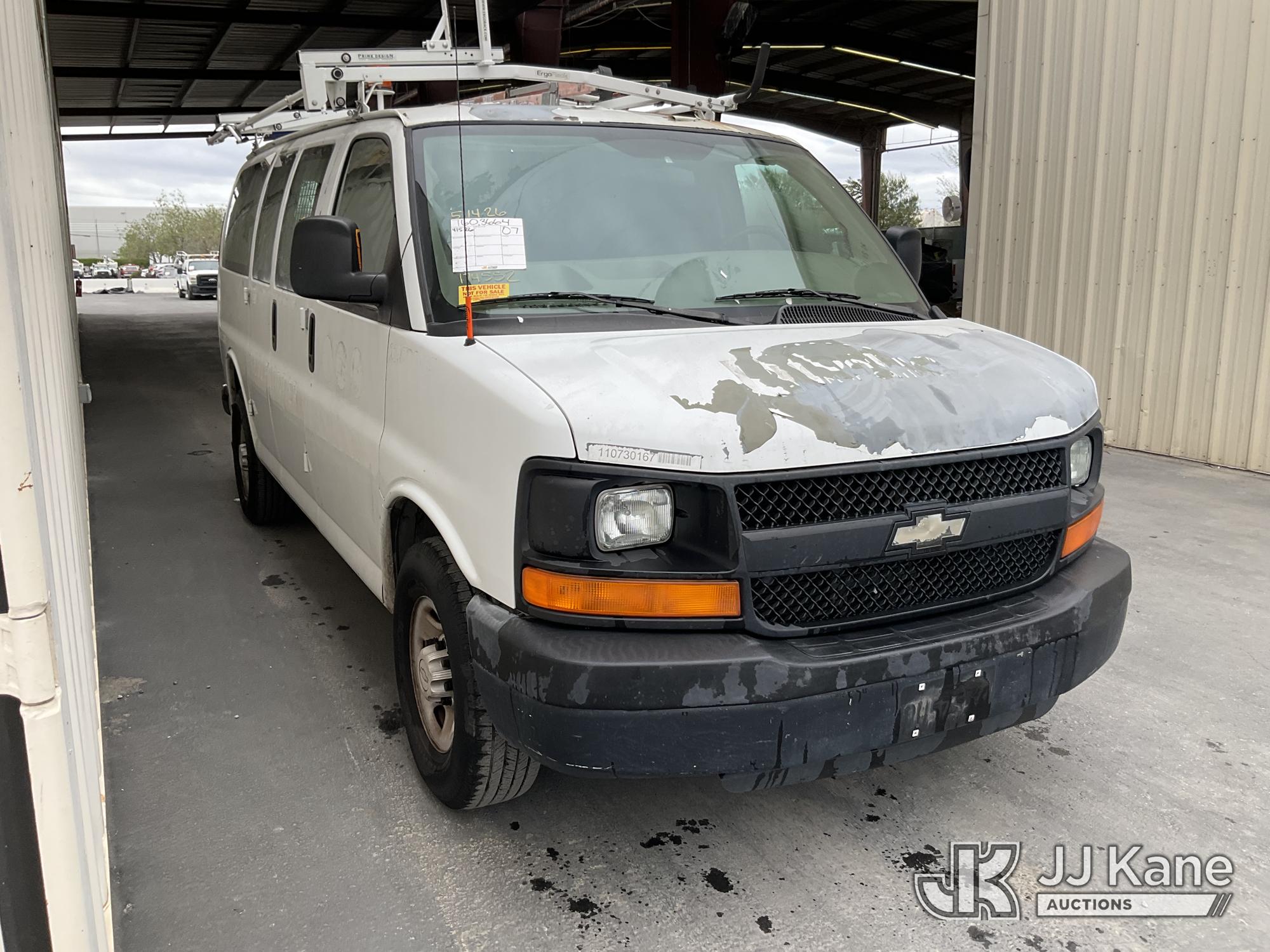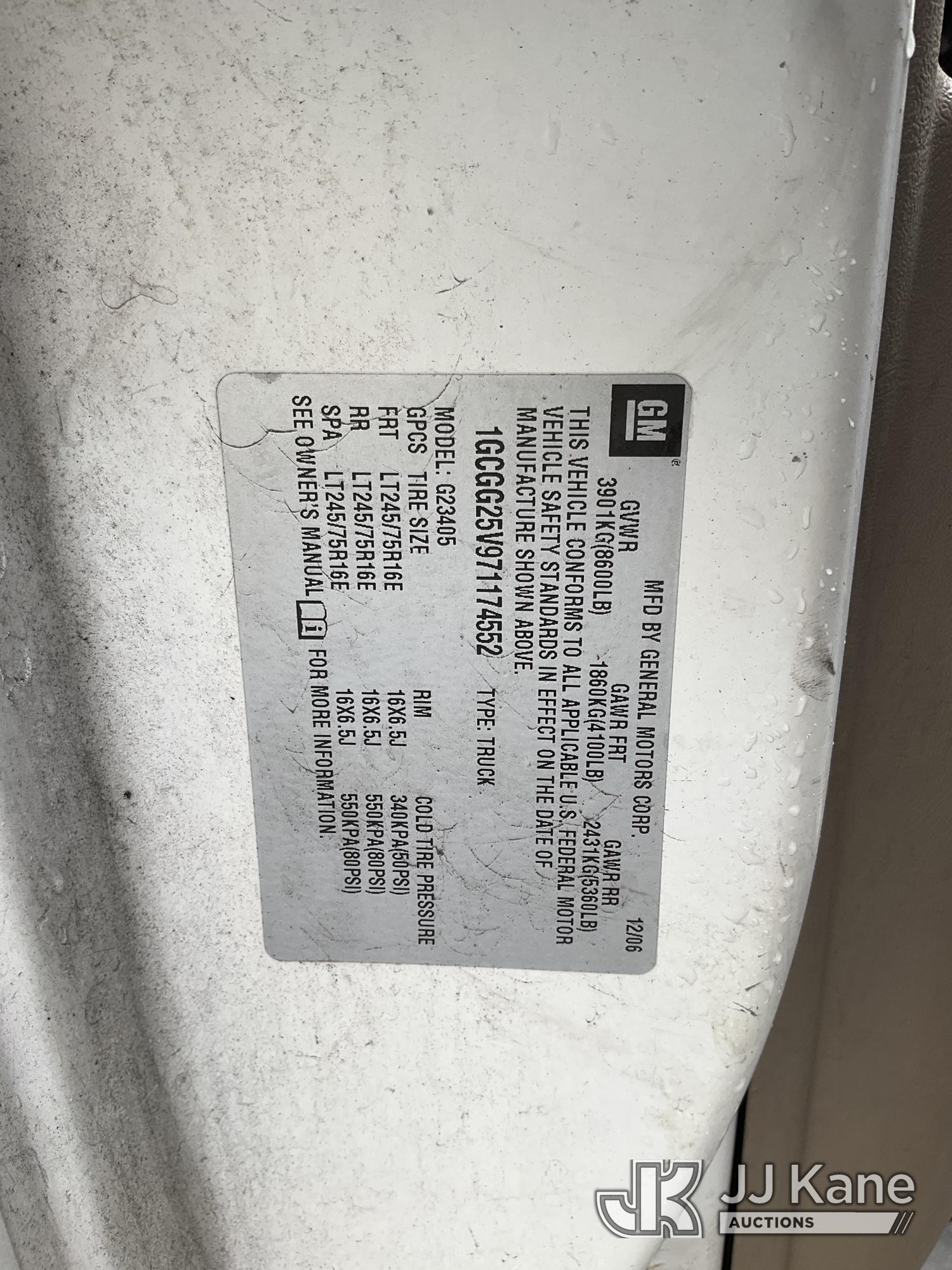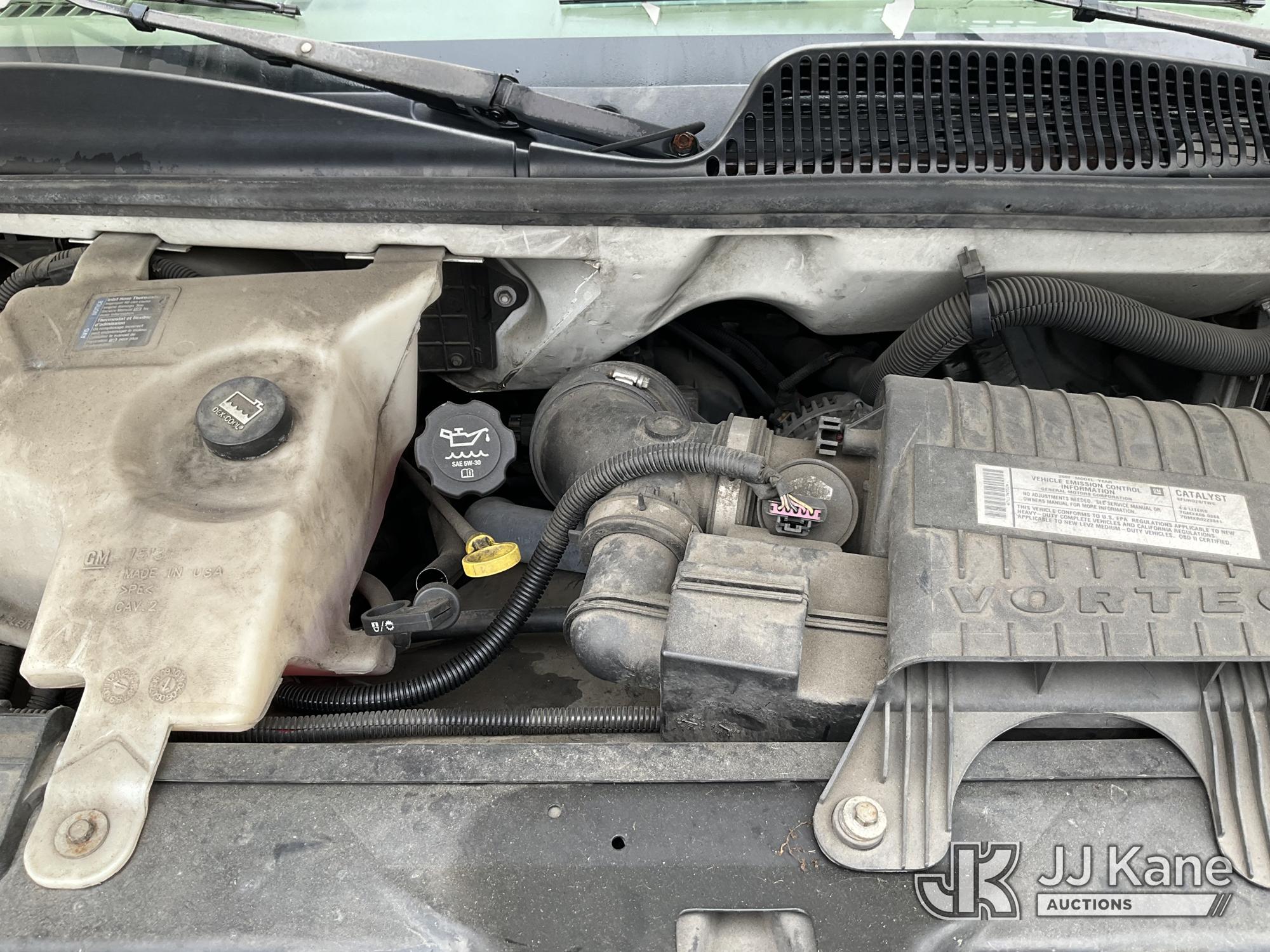 2007 Chevrolet Express 2500 Cargo Van, s/n 1GCGG25V971174552, 4.8L V8 OHV 16V RWD, GAS, 4-Speed Automatic, A/C, with Ladder rack, (133,642 miles) (Runs & Moves, ABS Light On, Overheating, Ticking Under Engine Bay) (Bidding Restricted to Licensed Vehicle Dealers Only), This is a Titled Item*