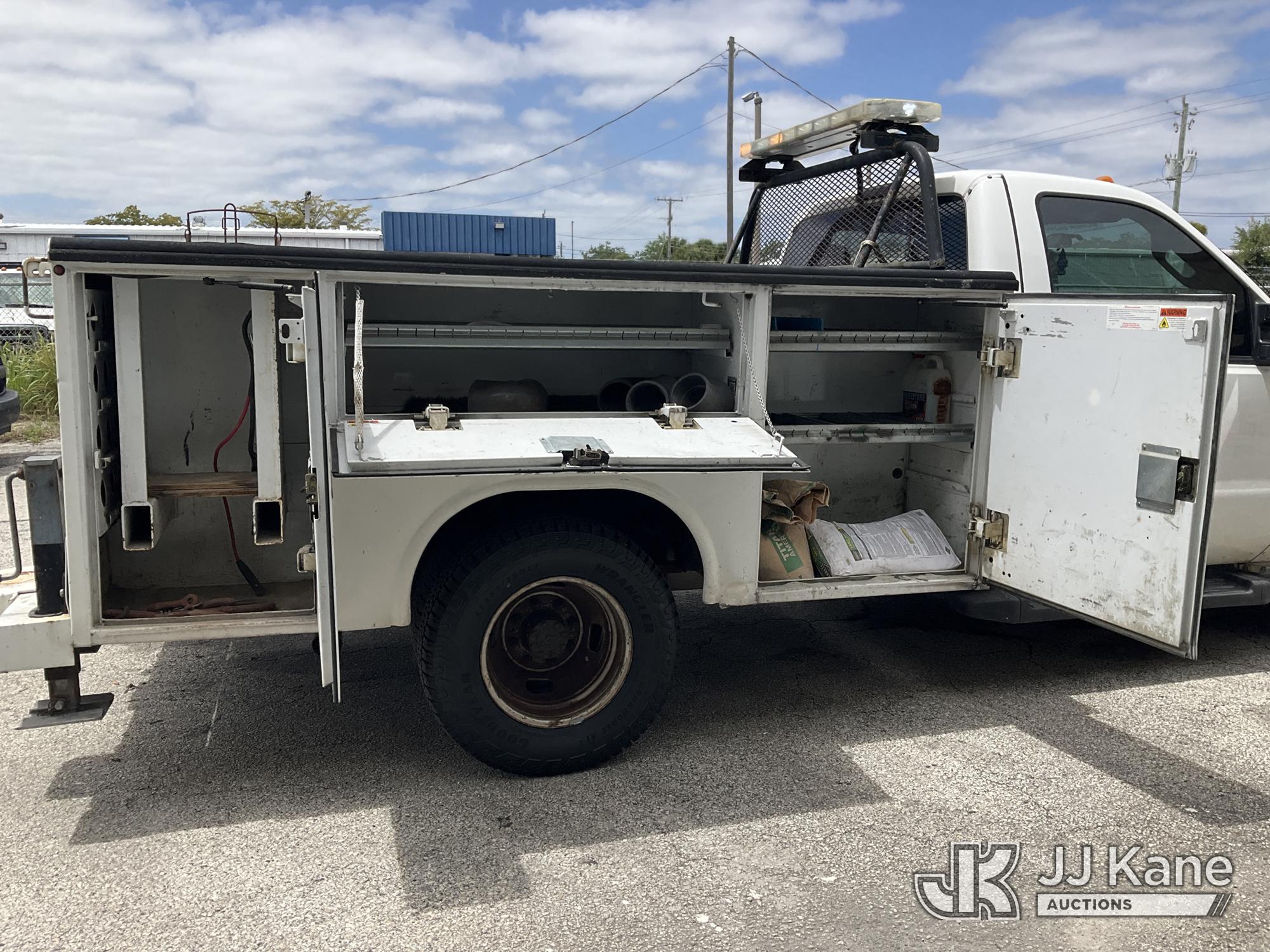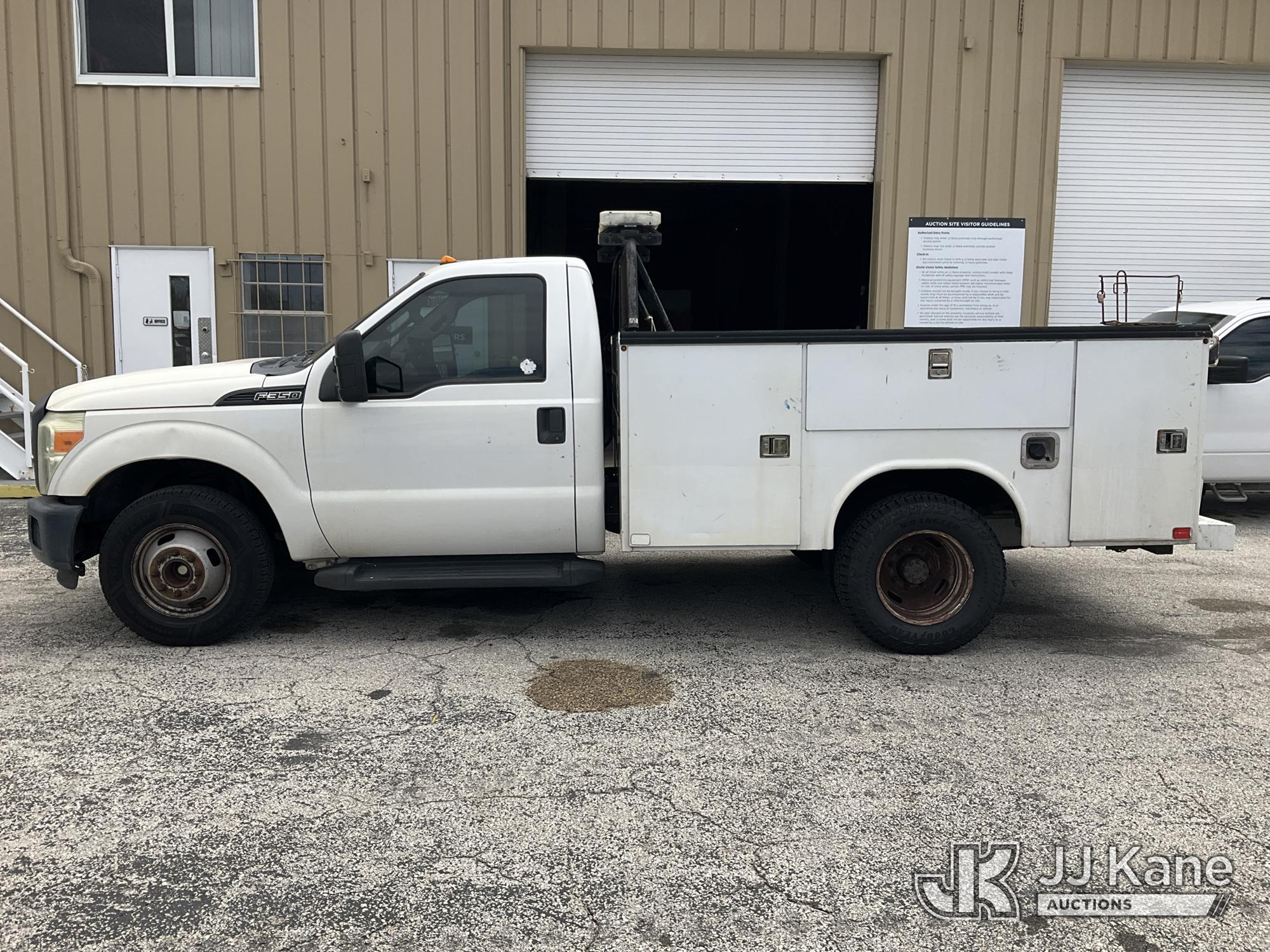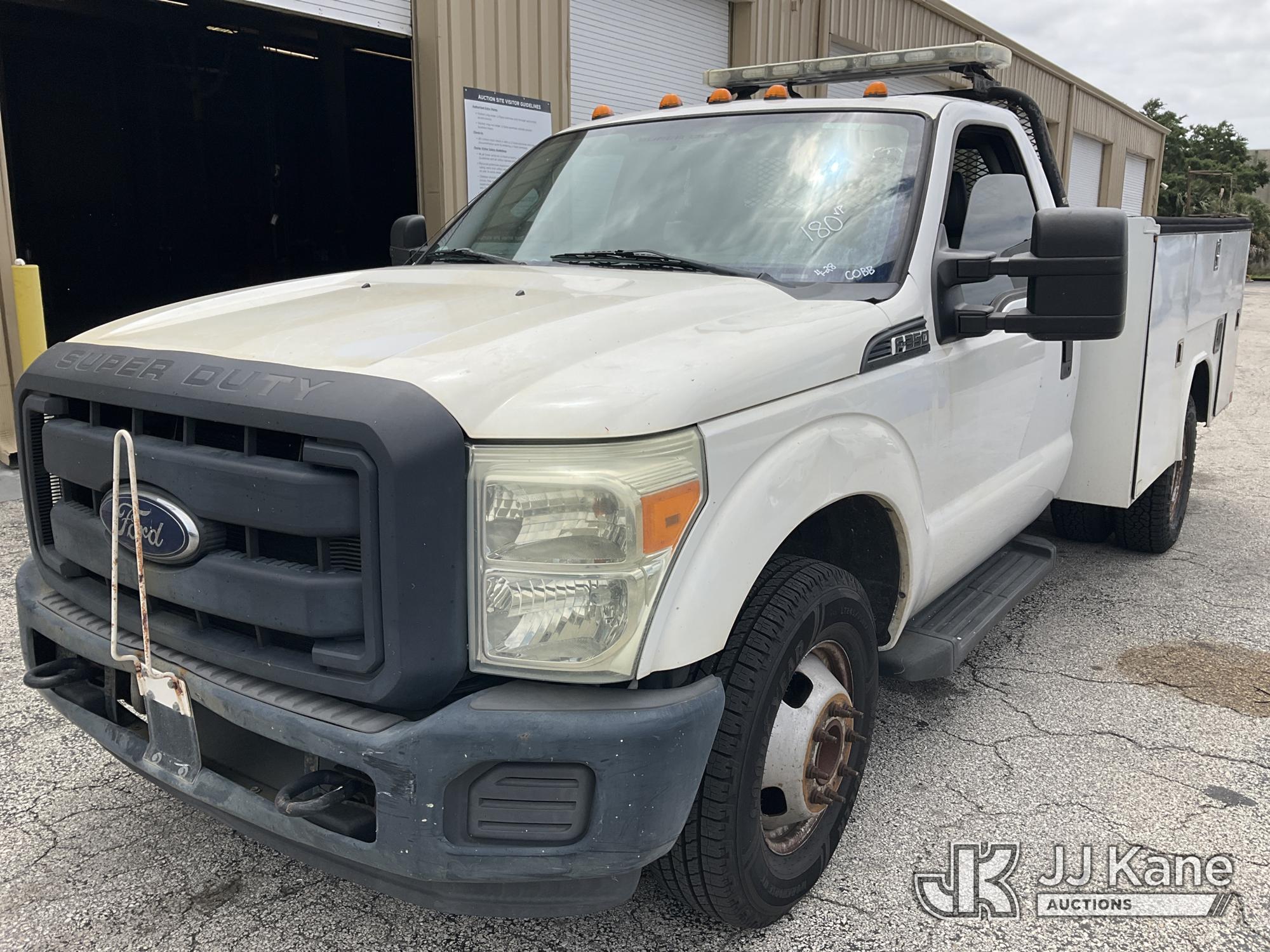 2015 Ford F-350 SD Service Truck, 6.2L V8 OHV 16V RWD, GAS, Auto, A/C, (71,203 miles) (Runs & Moves, Body Damage & Rust) (FL Residents Purchasing Titled Items – tax, title & registration fees will be collected at the maximum rate of $400.00 under 25,999 and $800.00 for Over 26,000 and $250.00 for Trailers – Proof of insurance is mandatory; Out of State Residents Purchasing Title Items – tax will be collected based upon your state rate) (Reads 11,441 hours) This is a Titled Item*