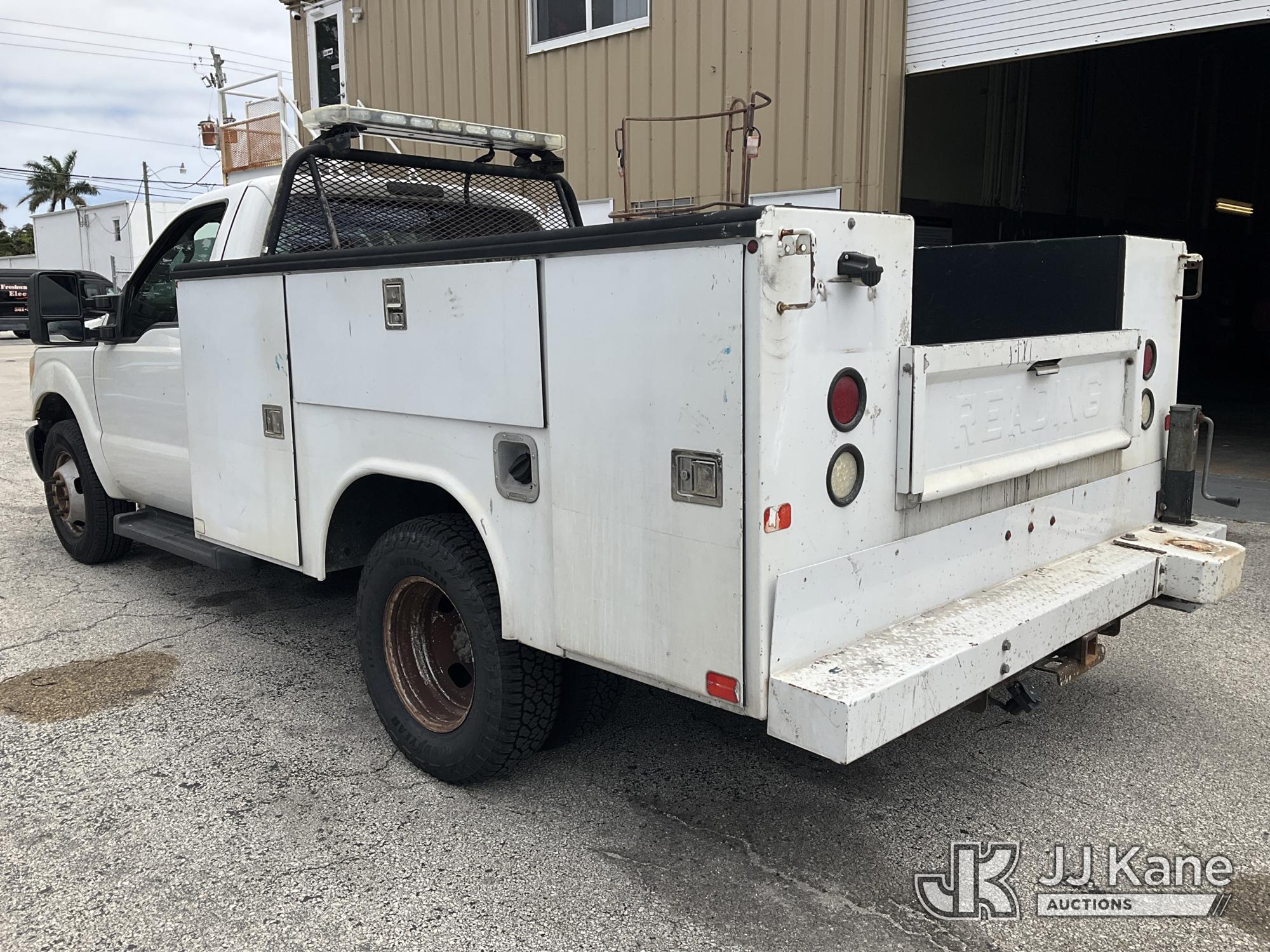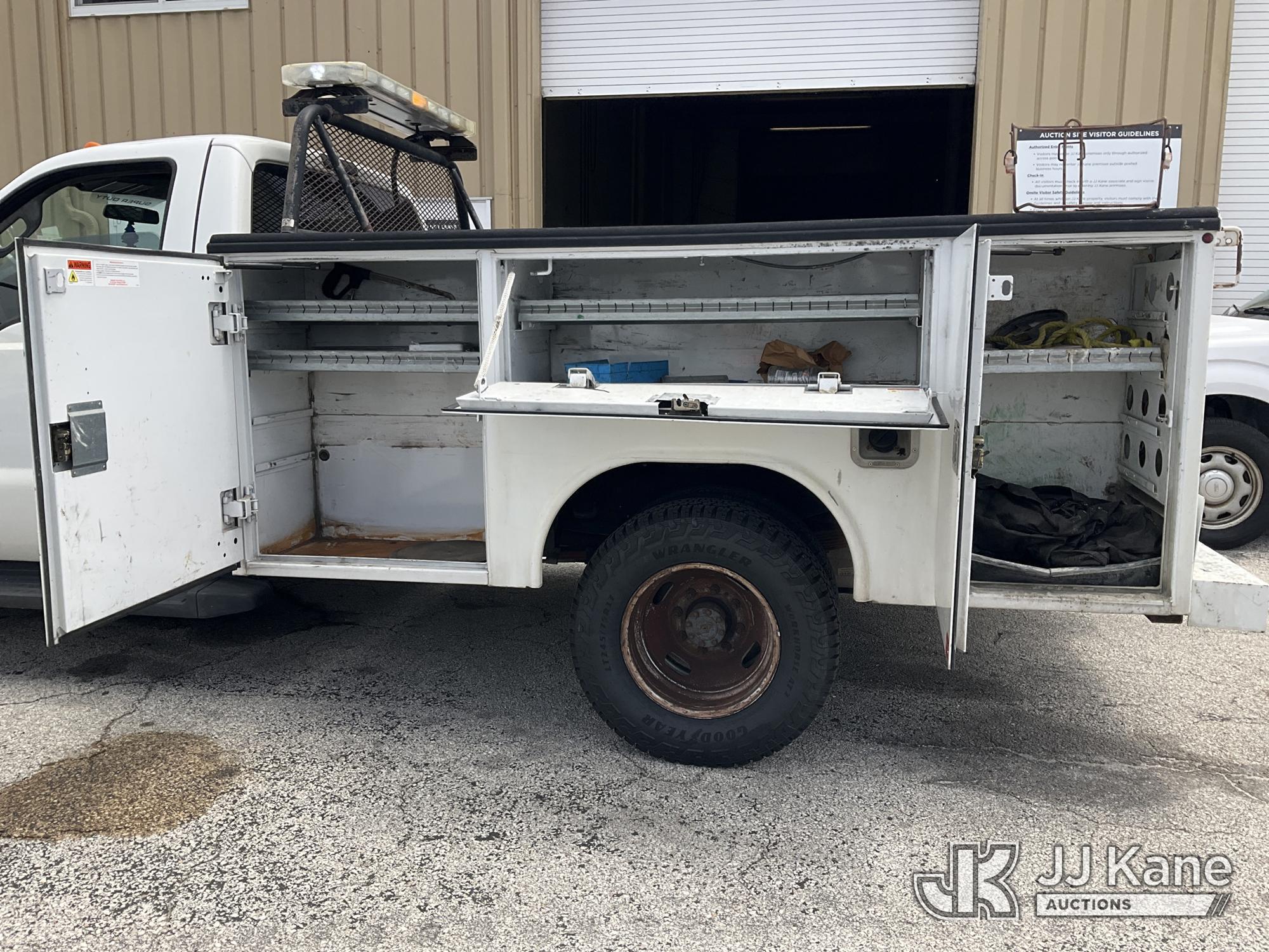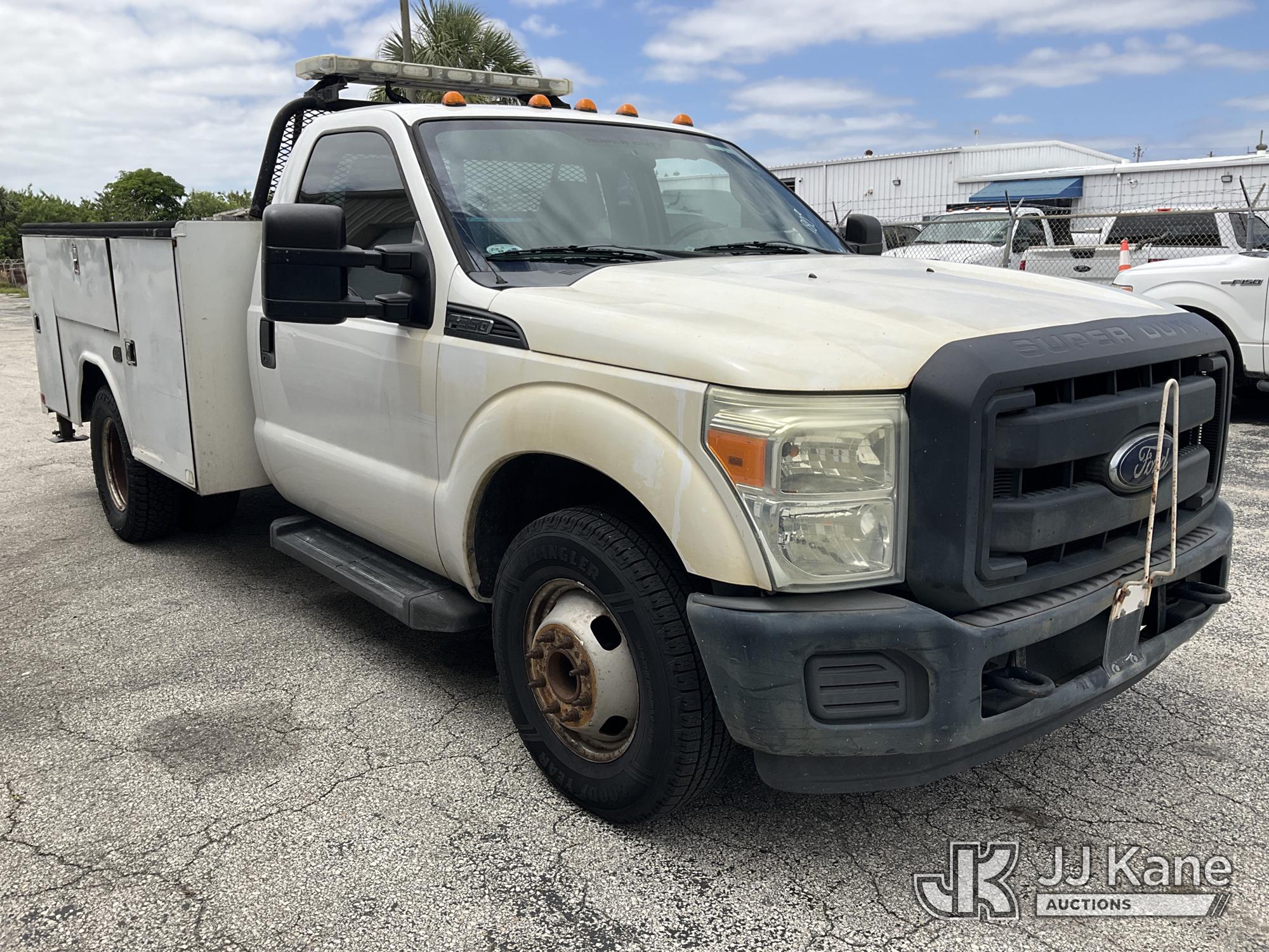 2015 Ford F-350 SD Service Truck, 6.2L V8 OHV 16V RWD, GAS, Auto, A/C, (71,203 miles) (Runs & Moves, Body Damage & Rust) (FL Residents Purchasing Titled Items – tax, title & registration fees will be collected at the maximum rate of $400.00 under 25,999 and $800.00 for Over 26,000 and $250.00 for Trailers – Proof of insurance is mandatory; Out of State Residents Purchasing Title Items – tax will be collected based upon your state rate) (Reads 11,441 hours) This is a Titled Item*