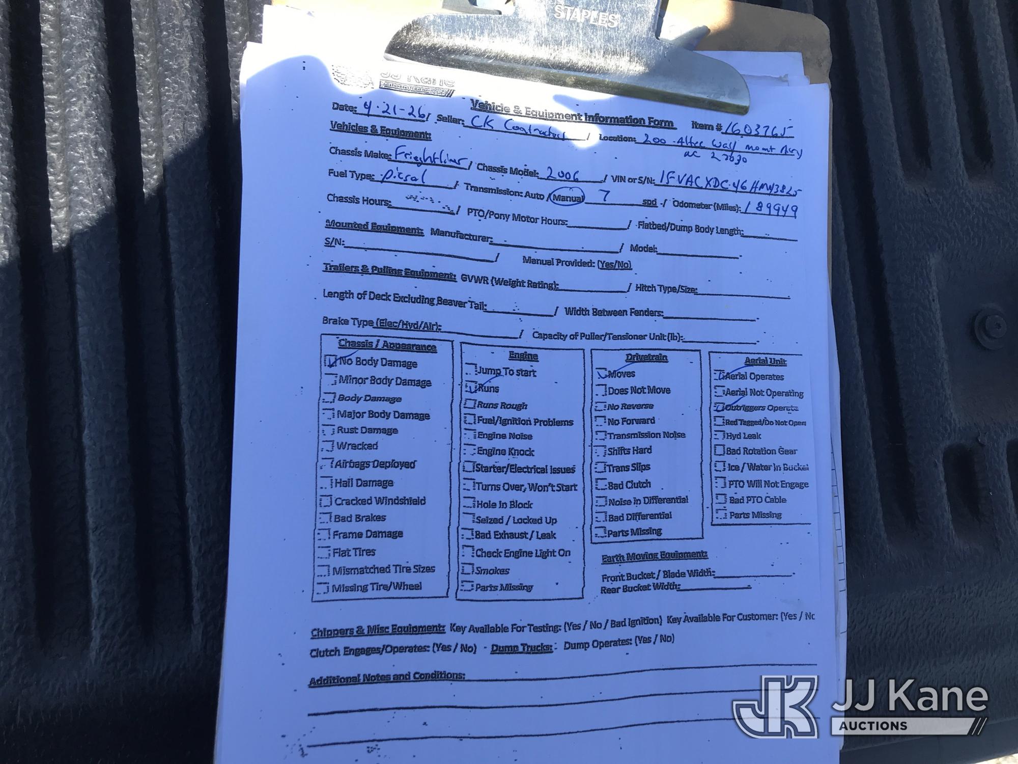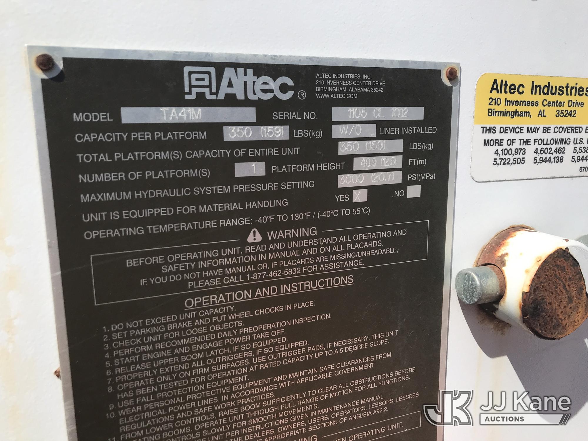 Altec TA41M, 46 ft, Articulating & Telescopic Material Handling Bucket Truck s/n 1105CL1012, with single-man bucket, mounted behind cab on 2006 Freightliner M2 106 Medium Duty Utility Truck, Cat C7 Diesel, 4X2, 7-spd, (Exempt from Odometer Disclosure - Reads 189,949 miles) (Runs, Moves & Upper Operates) This is a Titled Item*