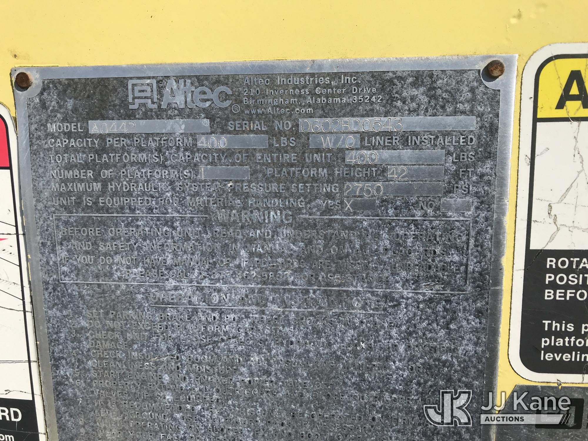 Altec AO442-MH, 47 ft, Material Handling Bucket Truck s/n 0602BD0543, with single-man bucket & 4 hyd outriggers, center mounted on 2003 Freightliner FL70 Utility Truck, 7.2L L6 Diesel, 4X2, Auto, A/C, (Exempt from Odometer Disclosure - Reads 97,498 miles) (Runs, Moves & Upper Operates) This is a Titled Item*