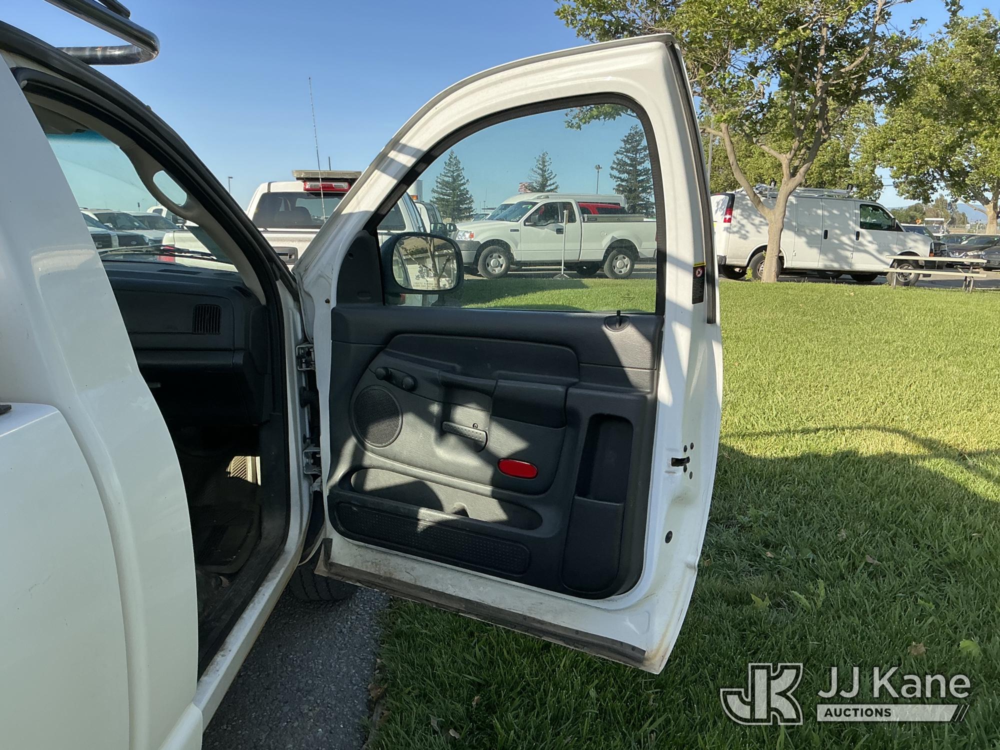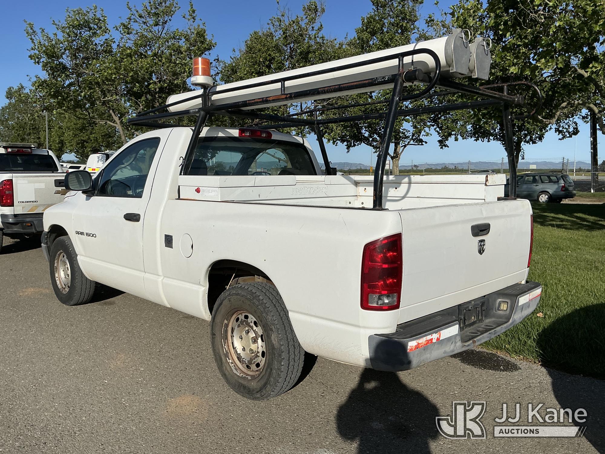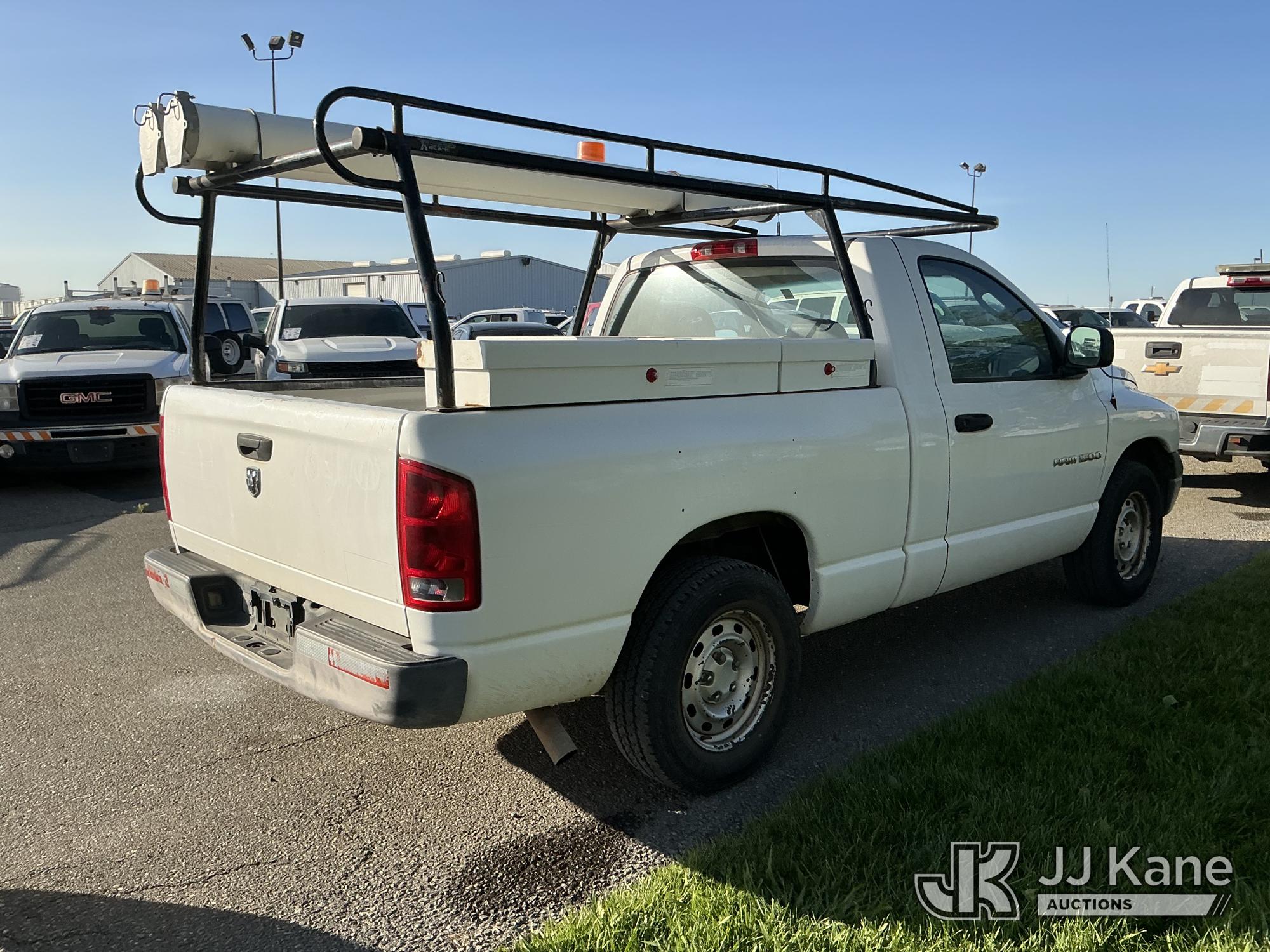 2005 Dodge Ram 1500 Pickup Truck, s/n 1D3HA16N35J556434, 4.7L V8 SOHC 16V RWD, GAS, Auto, A/C, with ladder rack, (Exempt from Odometer Disclosure - Reads 123,757 miles) (Runs & Moves)(Hood Does Not Close Properly) This is a Titled Item*