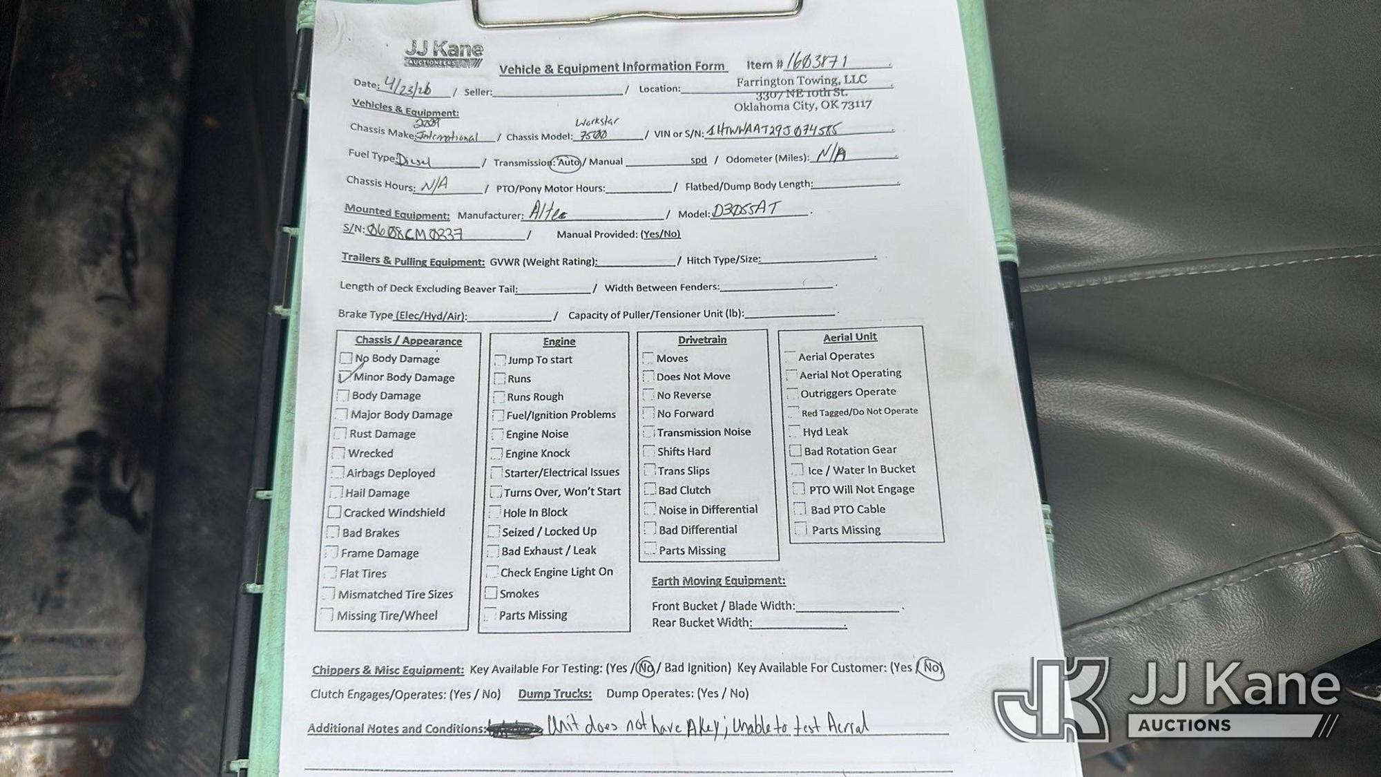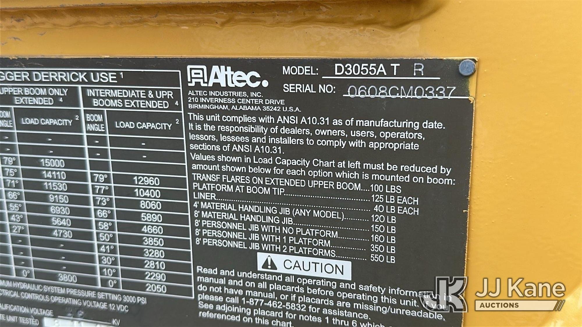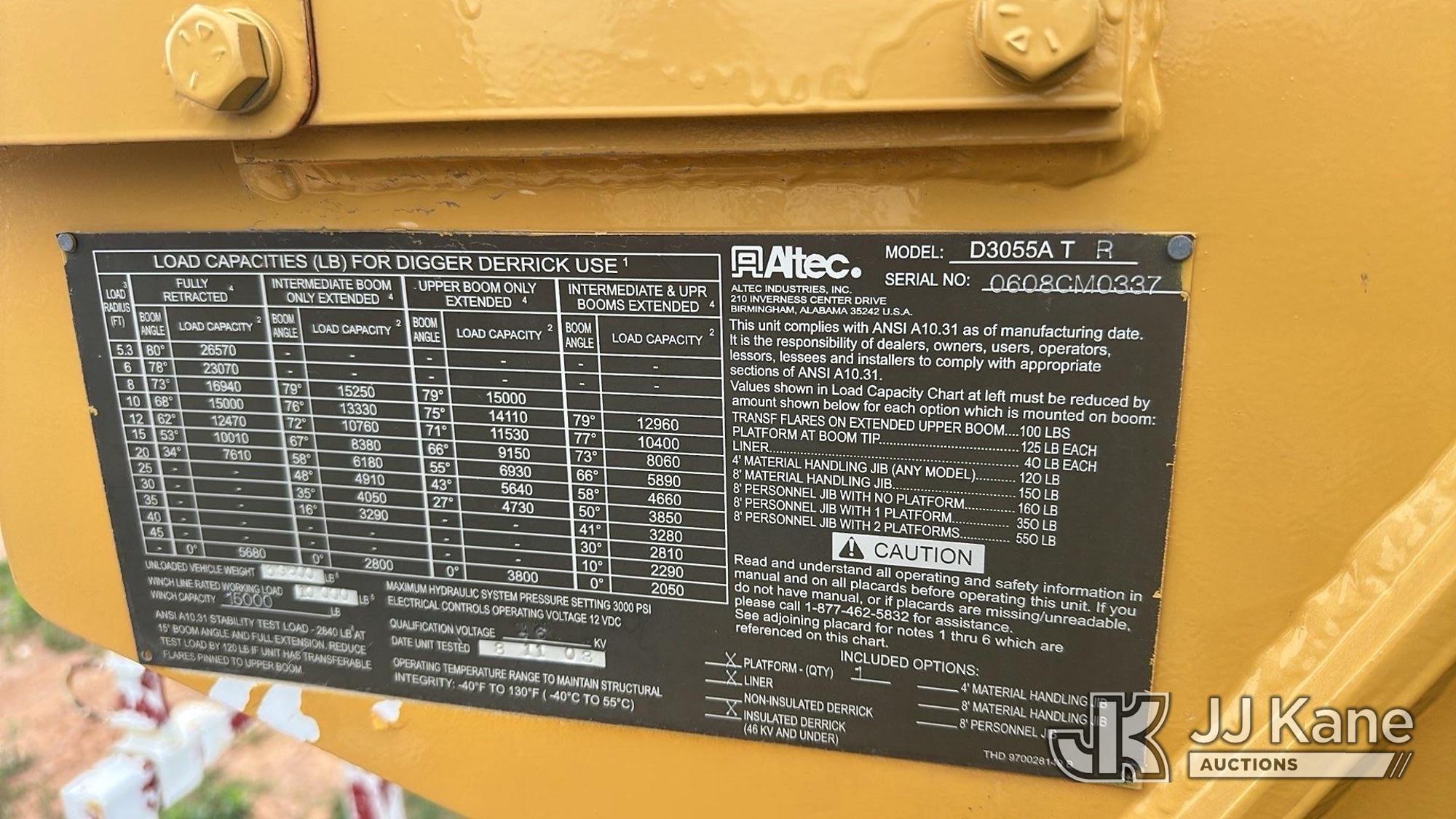 Altec D3055A-TR, 26,570 Lb Digger Derrick s/n 0608CM0337, with 55ft sheave height, 2spd digger, pole guides, upper controls, heel winch & riding console, rear mounted on 2009 International 7500 T/A Utility Truck, 7.6L 6X6, DIESEL, Auto, A/C, True Mileage Unknown ((Not Running, Condition Unknown)) This is a Titled Item*