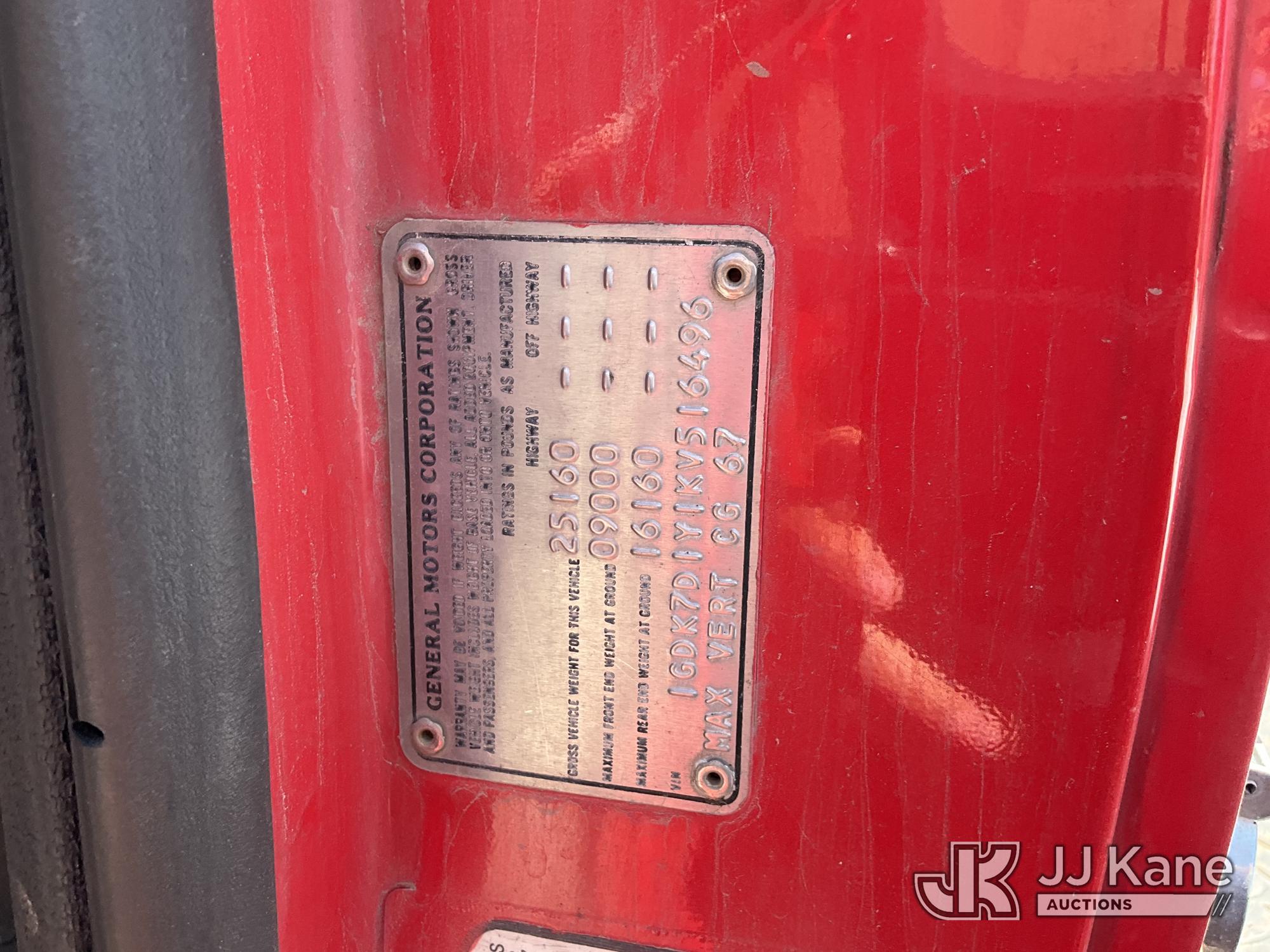 1989 GMC C7D042 Fuel Truck, s/n 1GDK7D1Y1KV516496, 10.4L V8 4X2, DIESEL, 5-spd, with Fuel Tank, Hose Reels , (Exempt from Odometer Disclosure - Reads 116,301 miles) (Not Running, Condition Unknown) (Bidding Restricted to Licensed Vehicle Dealers Only), Subject to CARB Regs,CARB non Compliant,Cannot Operate on CA Roads/Highways until Compliant This is a Titled Item*