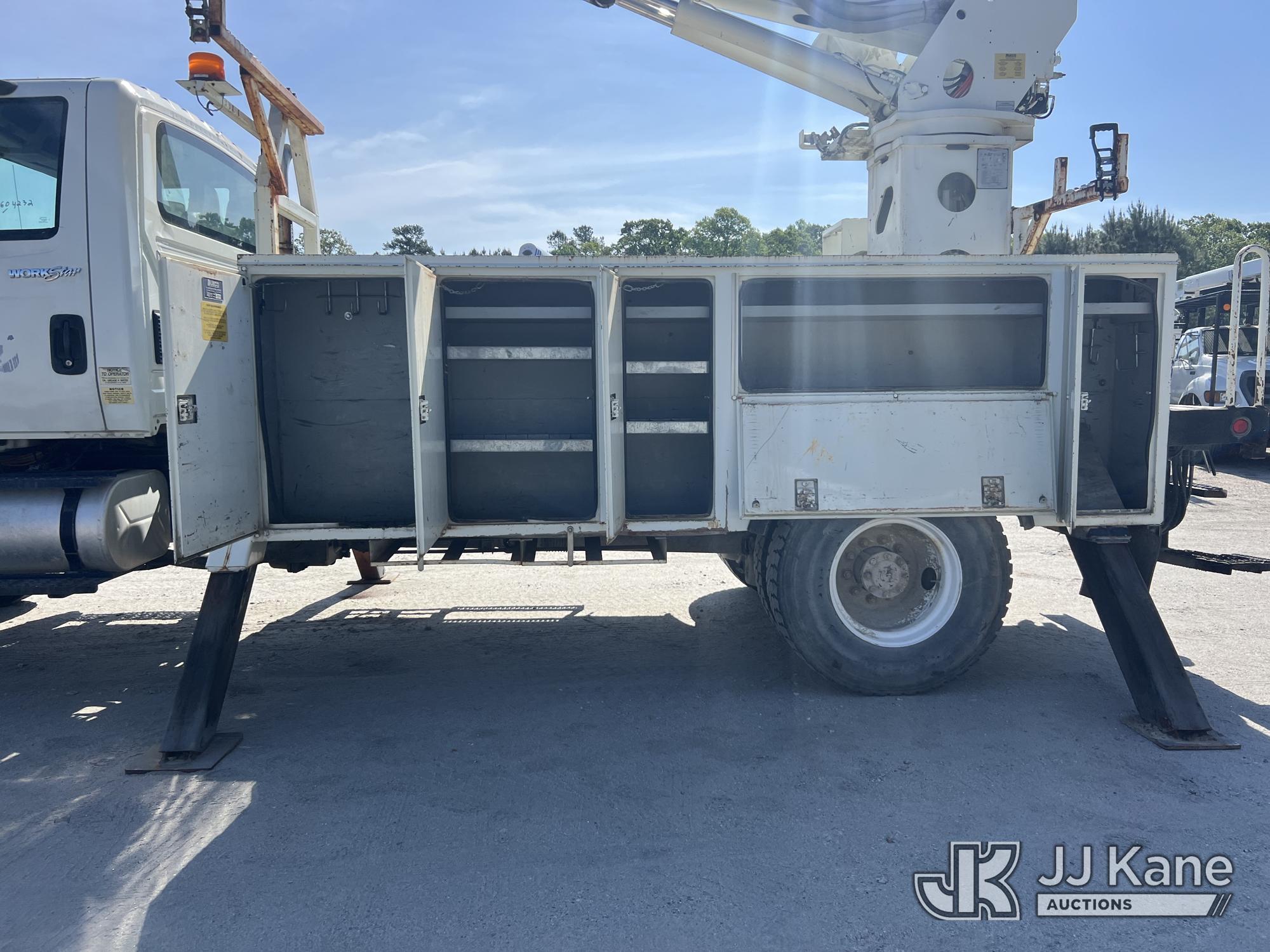 Terex/Telelect C4047, 18,810 Lb Digger Derrick s/n 2120246403, with 47 ft sheave height, 2-spd digger, tip winch, pole grabs & riding console, rear mounted on 2013 International 7300 4x4 Utility Truck, MaxxForce diesel, Auto, A/C, (65,627 miles) (Runs, Moves & Upper Operates) (Upper To Lower Selector Valve Handle Broken) This is a Titled Item*