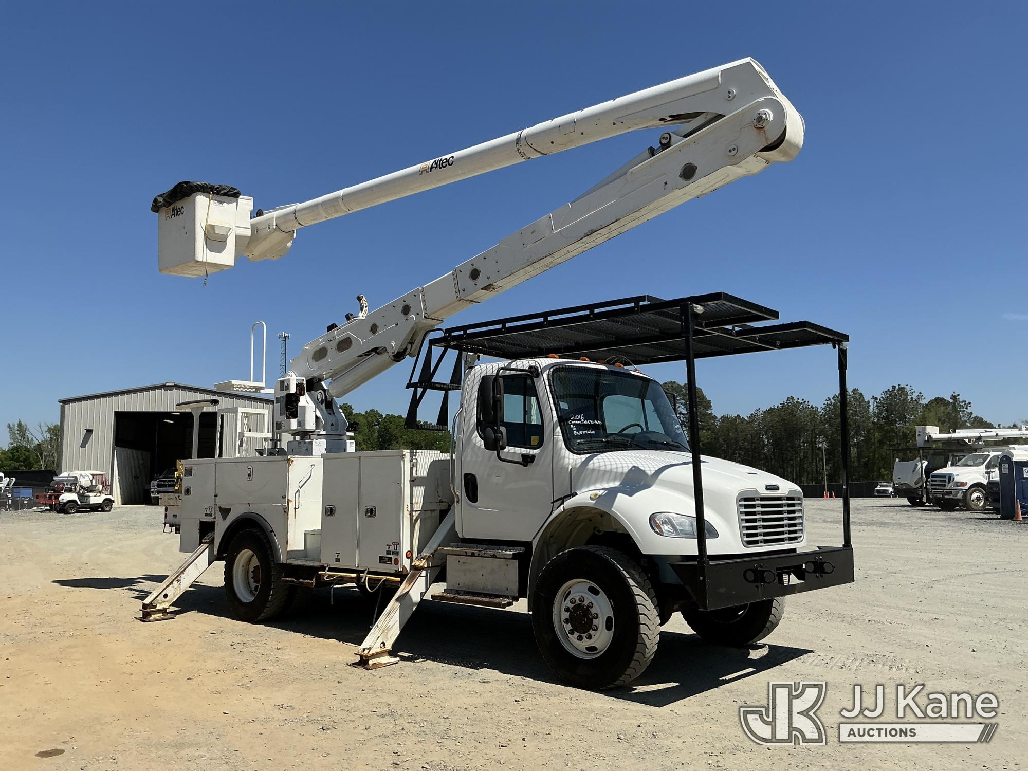 Altec AA55-MH, 60 ft, Material Handling Bucket Truck s/n 0215FJ0240, with two-man bucket & 4 hyd outriggers, rear mounted on 2016 Freightliner M2 106 4X4 Utility Truck, Cummins ISB-250 6.7L diesel, Auto, A/C, (82,534 miles) (Runs, Moves & Upper Operates) (Check Engine Light On, Missing Data Plate) This is a Titled Item*