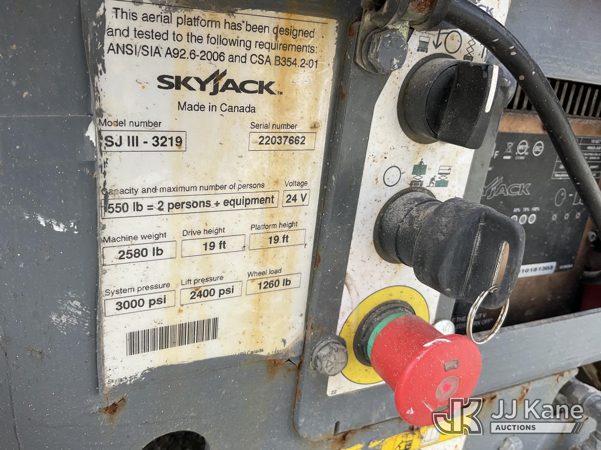 SkyJack SJIII-3219 Self-Propelled Scissor Lift, s/n 22037662, Battery electric, with 19 ft. platform height, (Moves & Operates ) (Reads 169 hours)*