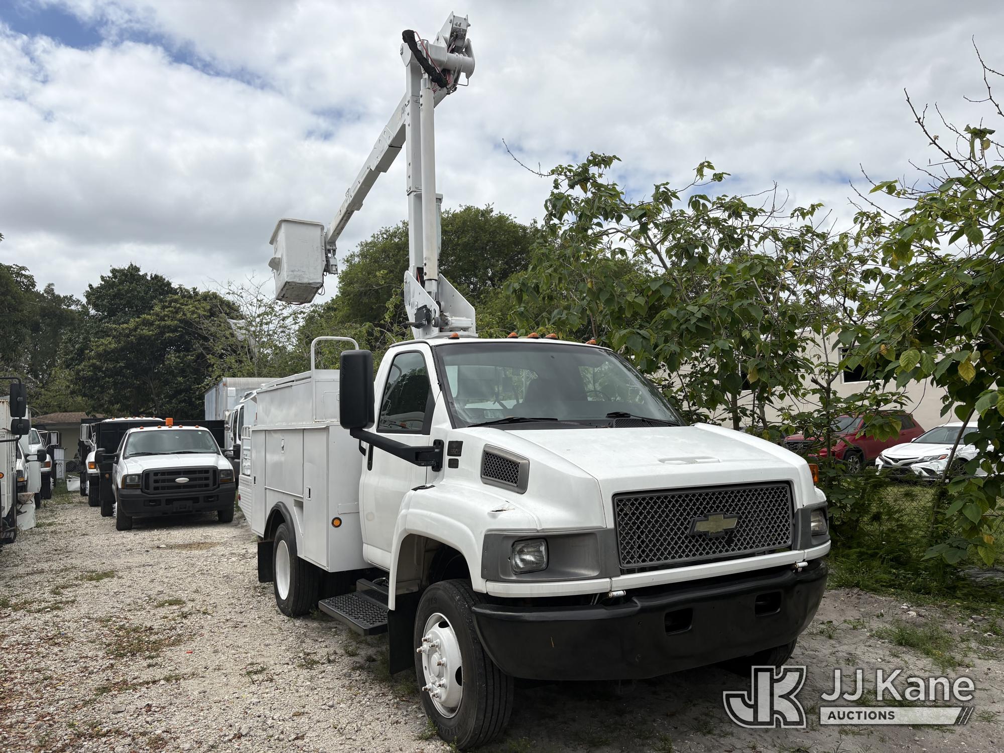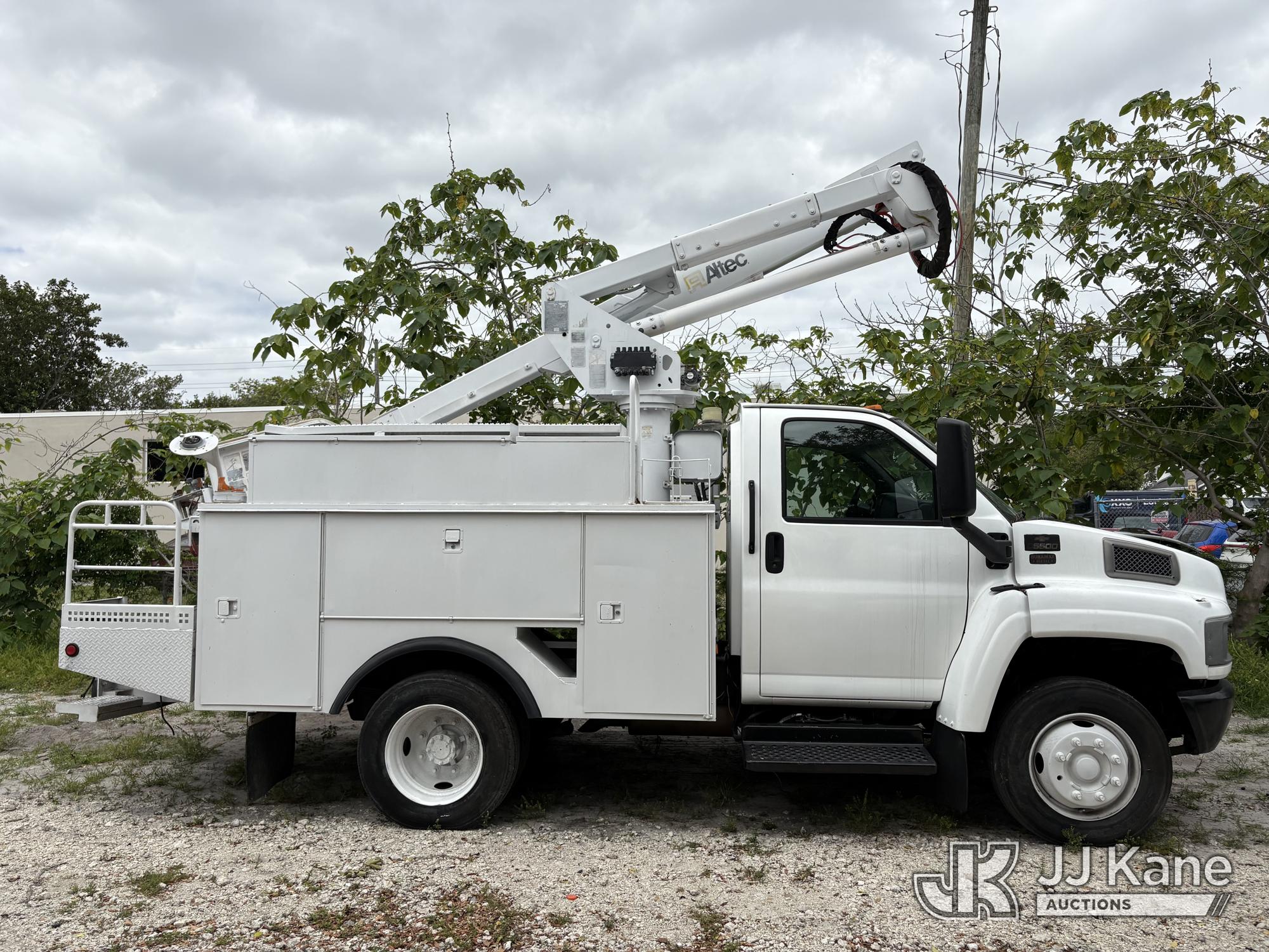 Altec AT37G, 42 ft, Articulating & Telescopic Bucket Truck s/n 0804DF4931, with single man bucket, mounted behind cab on 2004 Chevrolet C5500 Service Truck, 6.6L V8 OHV 32V Diesel, 4X2, Auto, A/C, (Exempt from Odometer Disclosure - Reads 220,439 miles) (Runs, Moves, and Boom Operates) (Upper Boom Has a Bad Holding Valve on the Lift Cylinder and Will not Stay up, Body Damage.) This is a Titled Item*