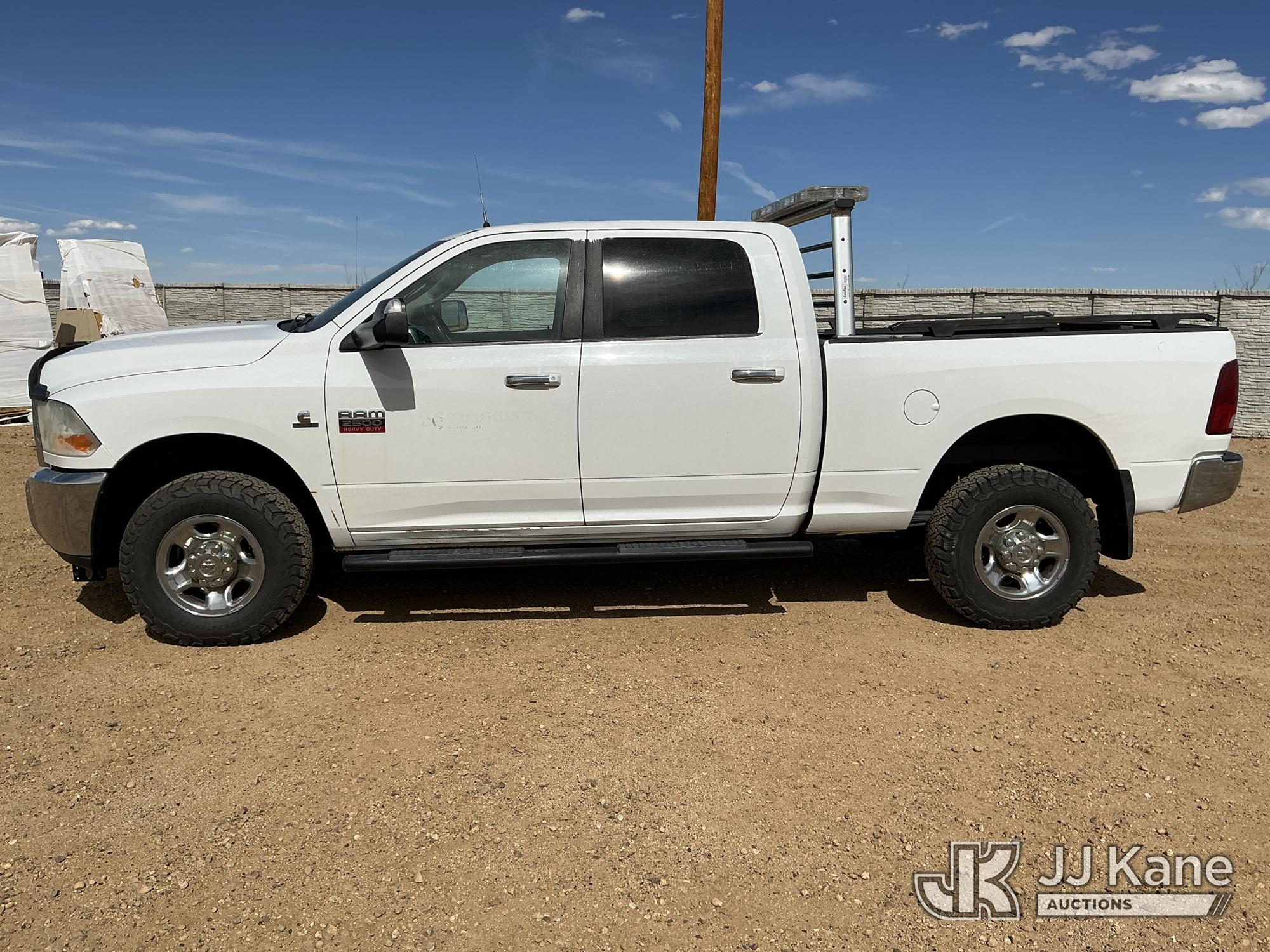2010 RAM 2500 4x4 Crew-Cab Pickup Truck, 6.7L L6 OHV 24V TURBO DIESEL, Auto, A/C, (177,506 miles) (Runs & Moves) (Check Engine Light On) (No Emissions Provided, See Bidder Agreement) (Reads 7,187 hours) This is a Titled Item*