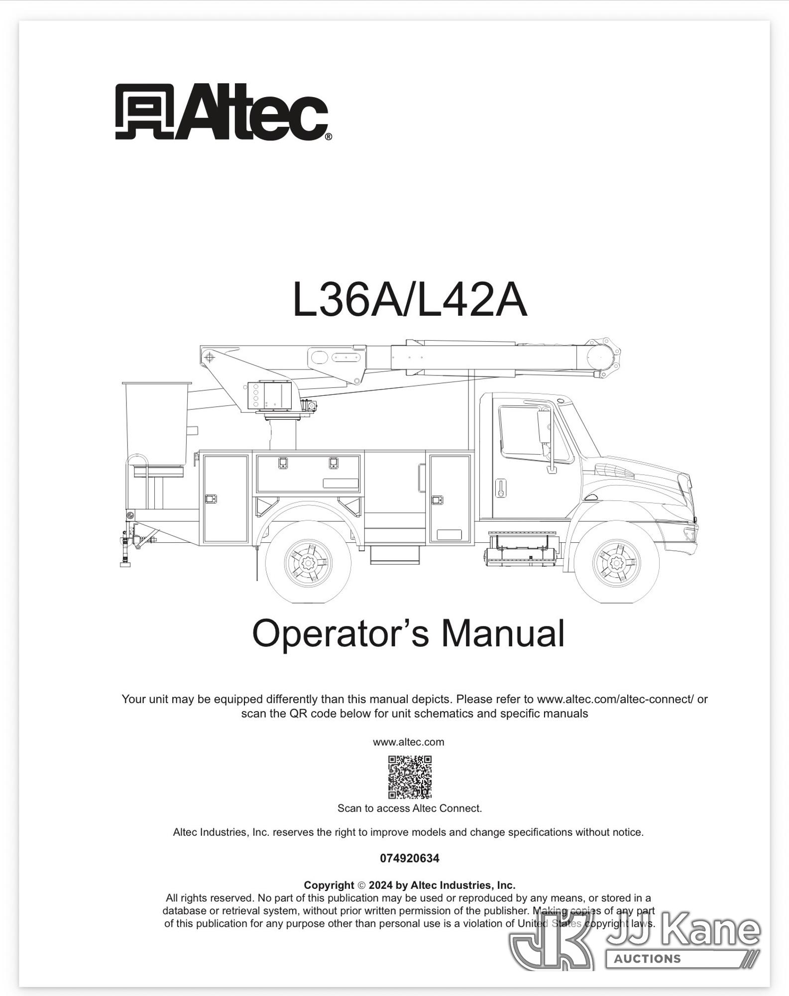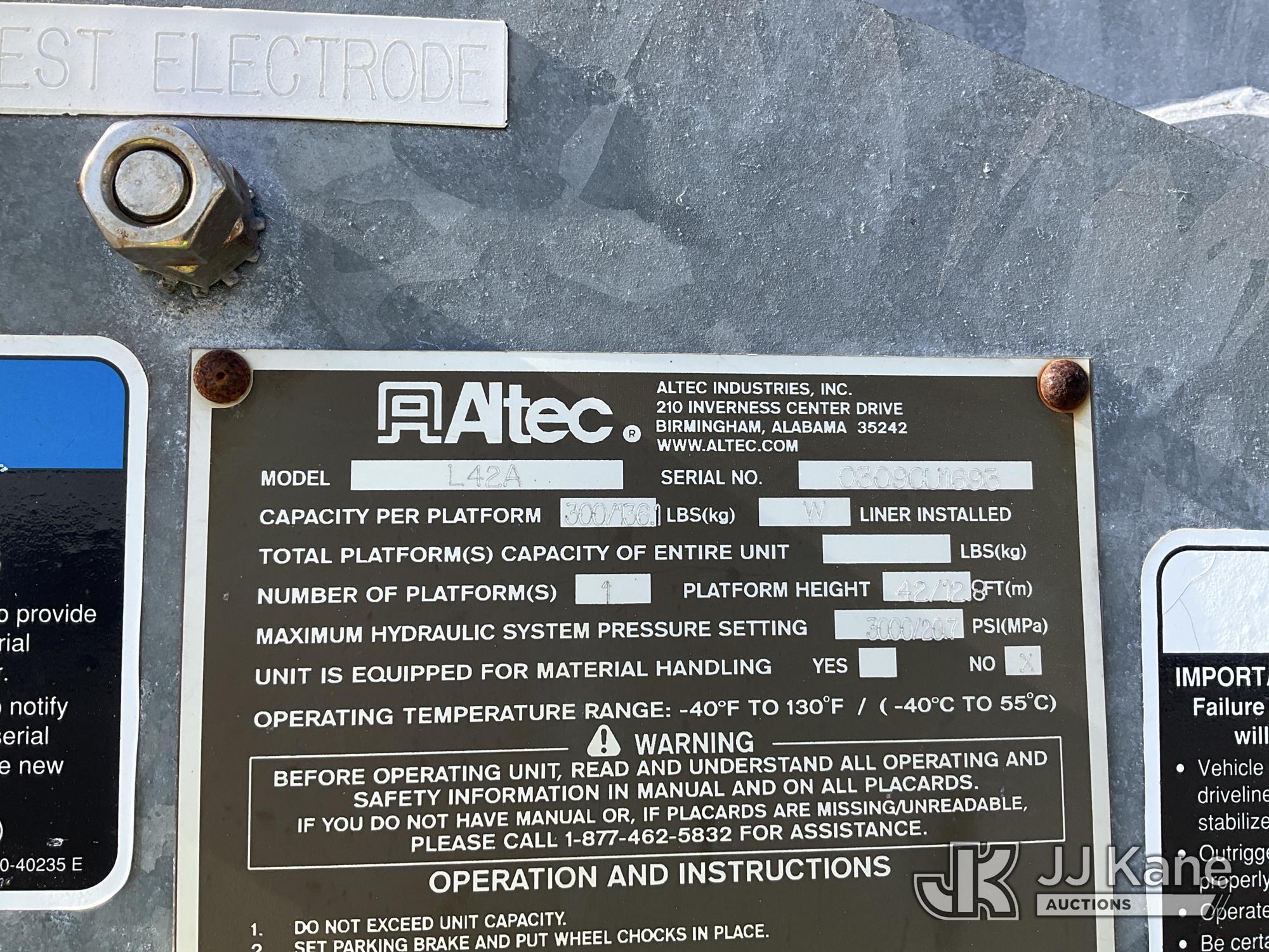 Altec L42A, 47 ft, Over-Center Bucket Truck s/n 0309CC1693, with single-man bucket, center mounted on 2009 International 4300 Utility Truck, 7.6L L6 Diesel, 4X2, Auto, A/C, with ePTO, (137,640 miles) Hybrid System (Runs, Moves & Upper Operates) (Check Hybrid System Light On ) This is a Titled Item*