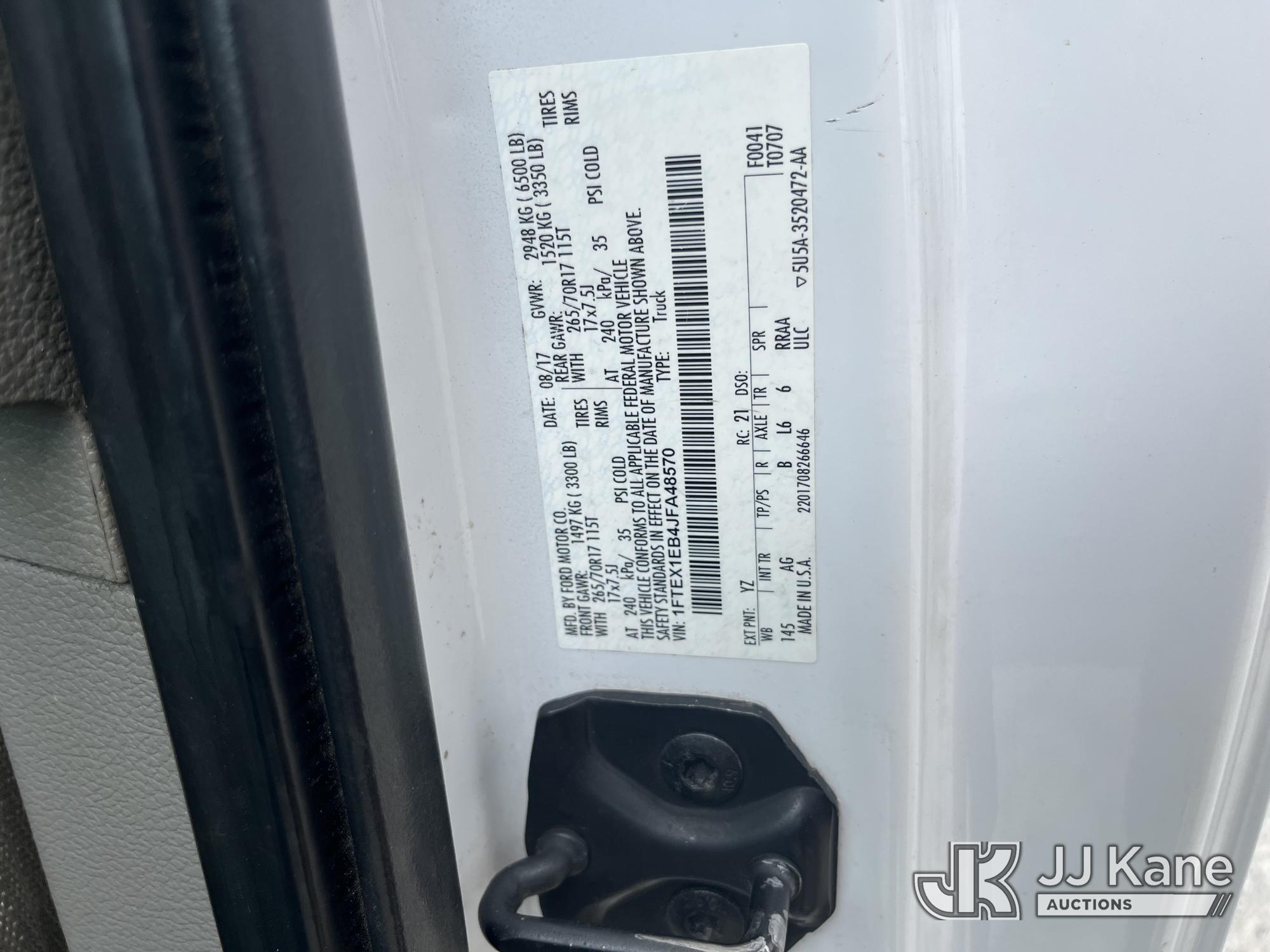 2018 Ford F-150 Extended-Cab Pickup Truck, s/n 1FTEX1EB4JFA48570, 6-cyl gas, 4WD, Auto, A/C, with service cap, (256,547 miles) (Runs & Moves) (Exhaust Noise) This is a Titled Item*