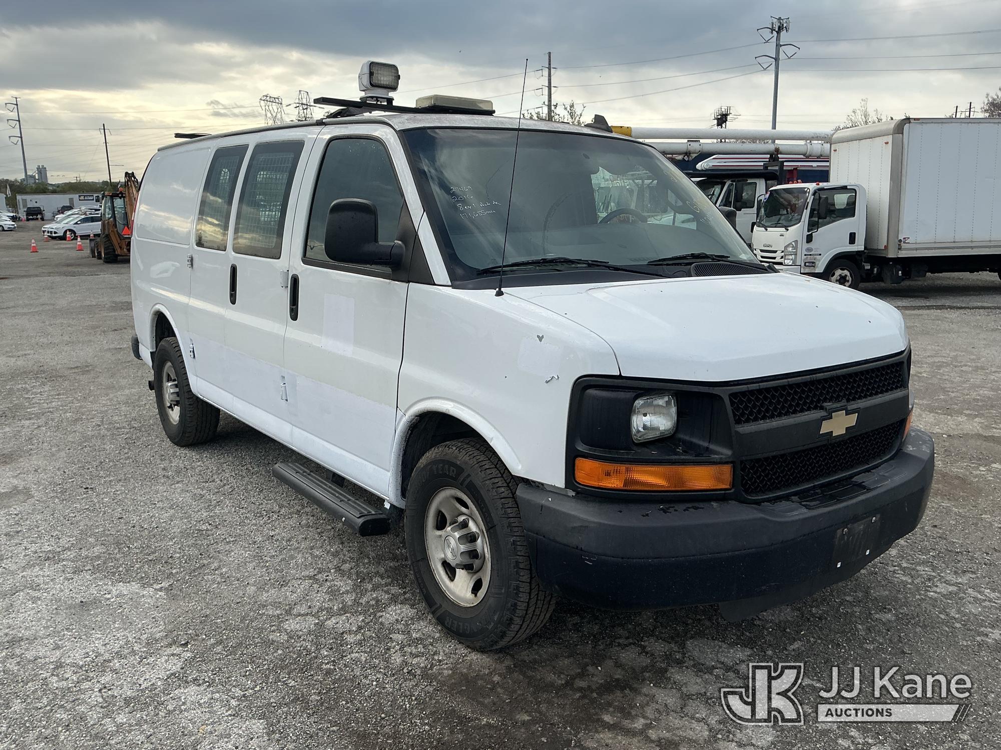 2016 Chevrolet Express 3500 Cargo Van, 8-cyl gas, RWD, Auto, A/C, (171,686 miles) (Runs & Moves, Check Engine Light On, Dent In Right Front Fender) This is a Titled Item*