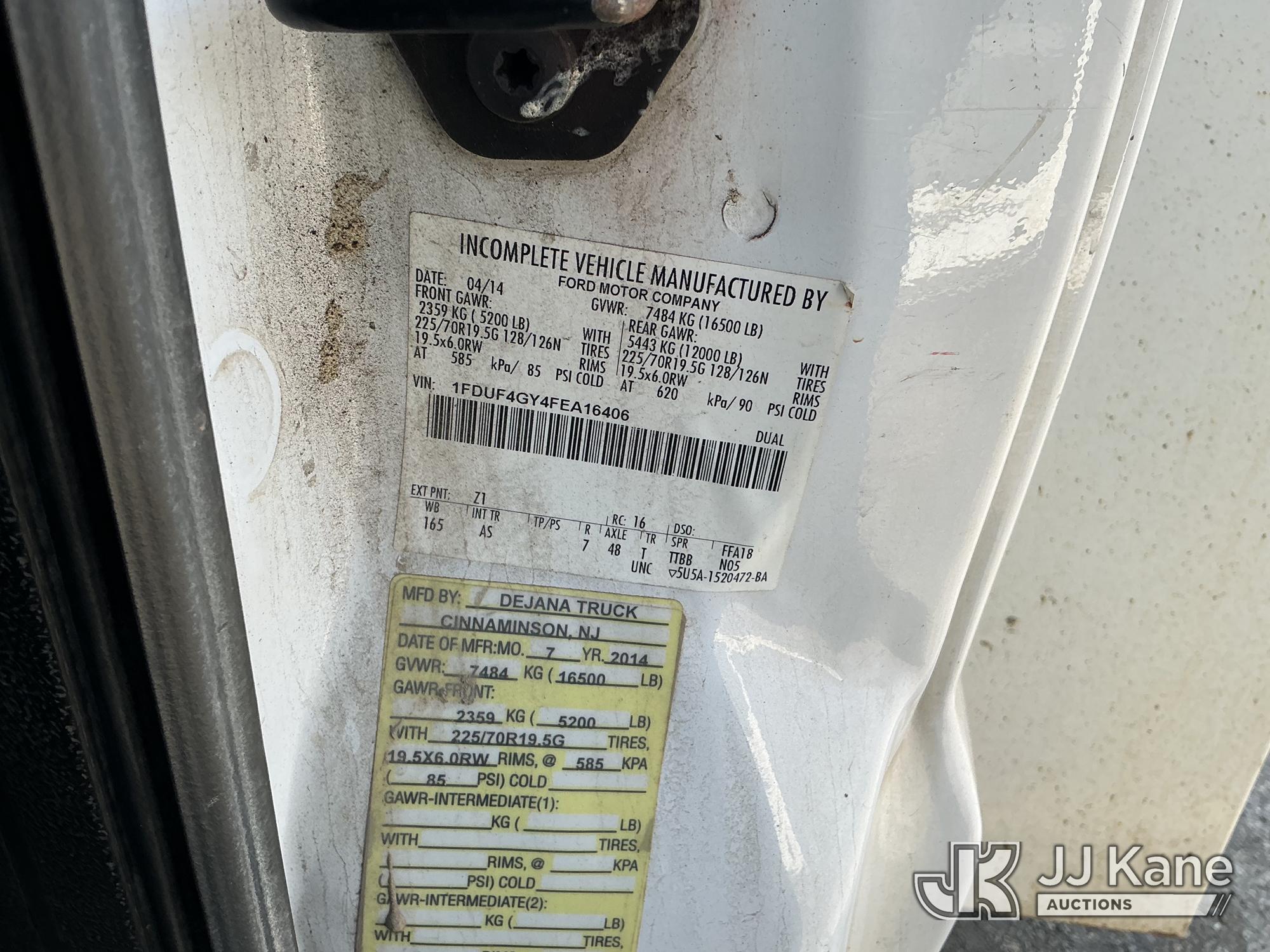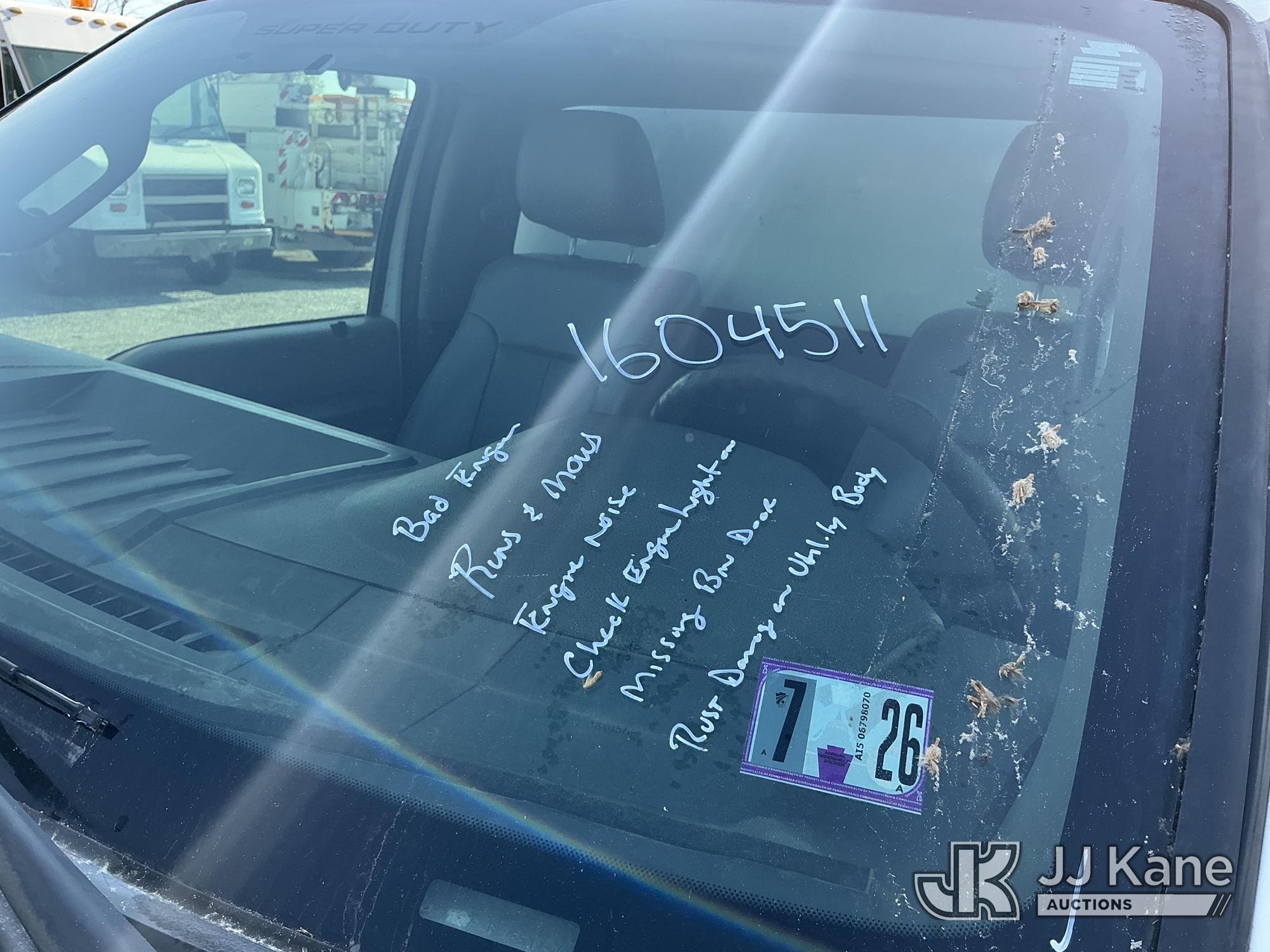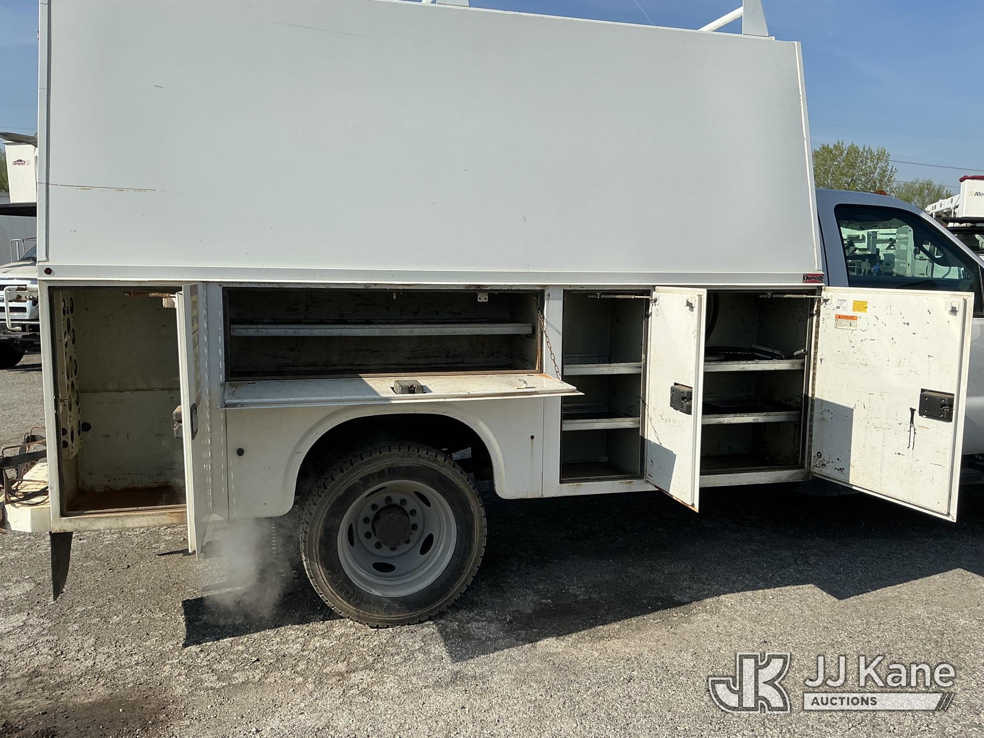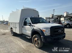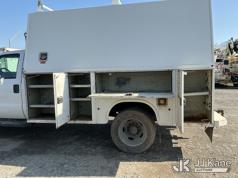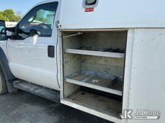 2015 Ford F450 Enclosed Service Truck, s/n 1FDUF4GY4FEA16406, 10-cyl gas, RWD, Auto, A/C, (138,203 miles) (Bad Engine, Runs & Moves, Engine Noise, Check Engine Light On, Missing Bin Door, Rust Damage On Utility Body) This is a Titled Item*