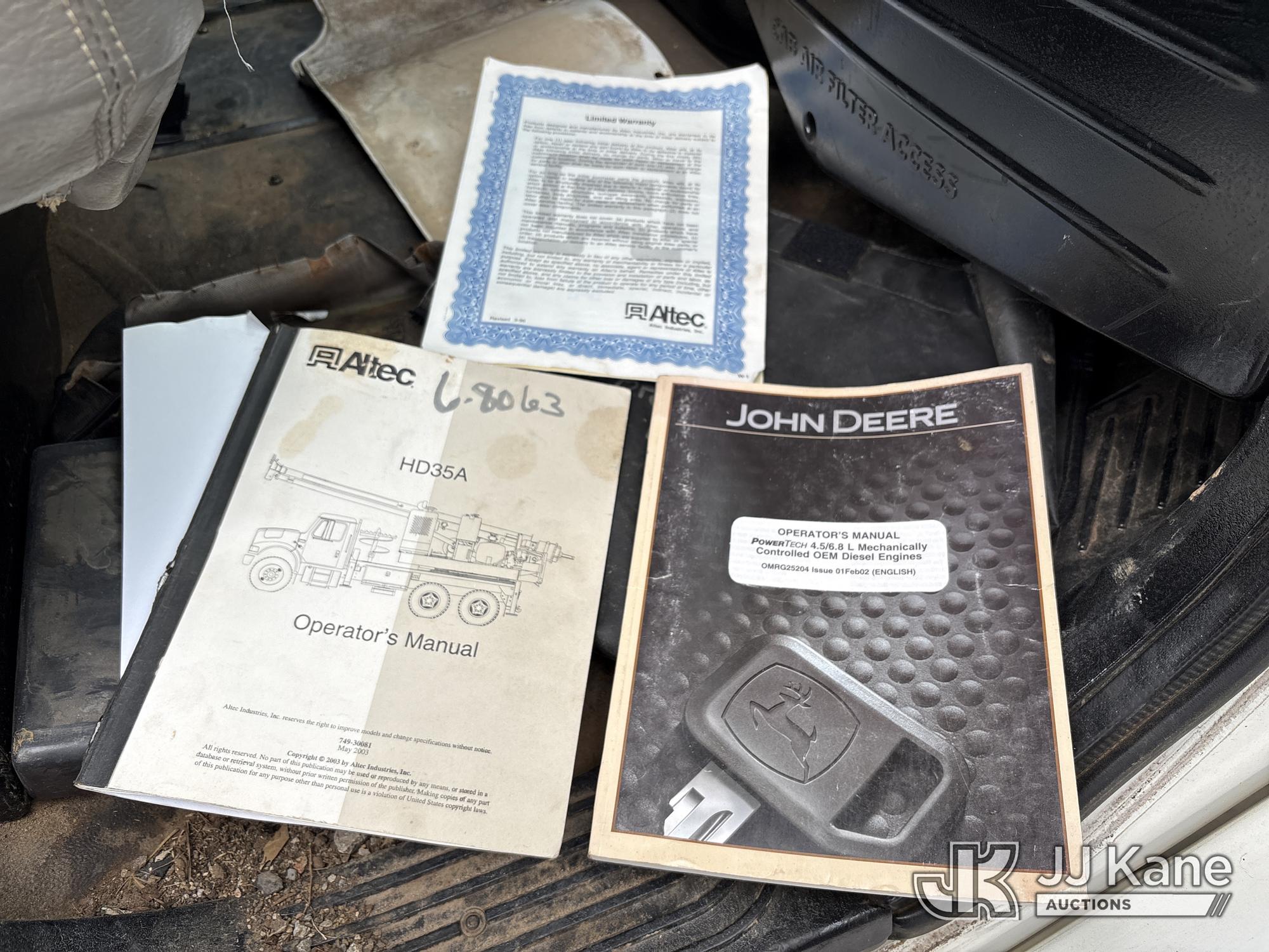 Altec HD35A-25, Pressure Digger s/n 0604DW0149, J.D. diesel, with approx. 3 1/2 in. x 28 ft. 2 in. Kelly bar, rotating & extendable table, boom winch, PVC tank, 4 hyd outriggers & riding console, mounted on 2004 Freightliner M2 106 6x6 Flatbed Truck, Cat C7 diesel, Auto, A/C, (Exempt from Odometer Disclosure - Reads 30,264 miles) (Runs, Moves & Upper Operates) (Drive Shaft Removed) This is a Titled Item*