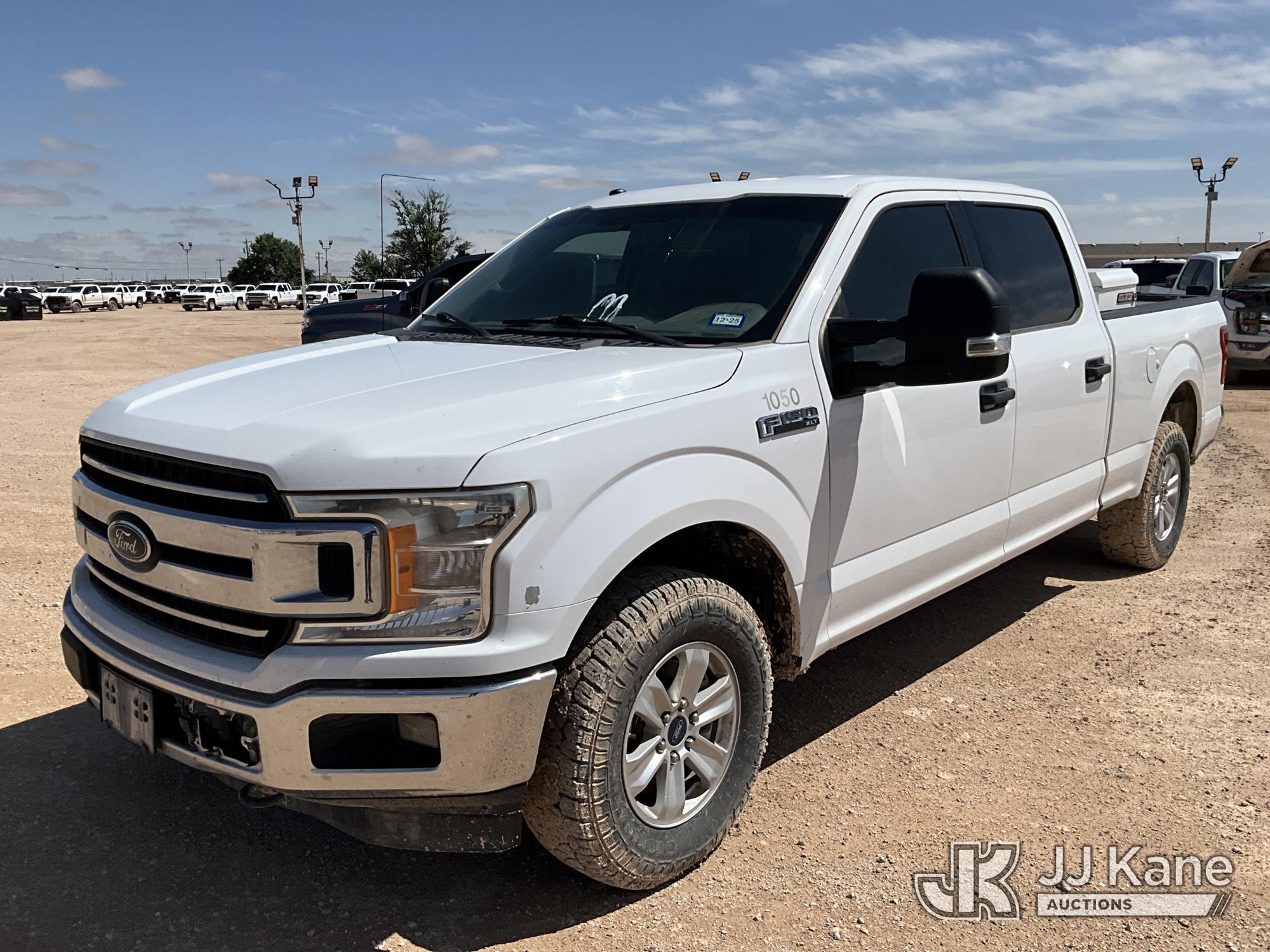 2018 Ford F150 4x4 Crew-Cab Pickup Truck, 5.0L V8 OHV 16V gas, 6-Speed Automatic, A/C, (103,953 miles) (Runs & Moves) (Jump To Start, Check Engine Light On, Cracked Windshield, Paint Damage) (Reads 4,019 hours) This is a Titled Item*