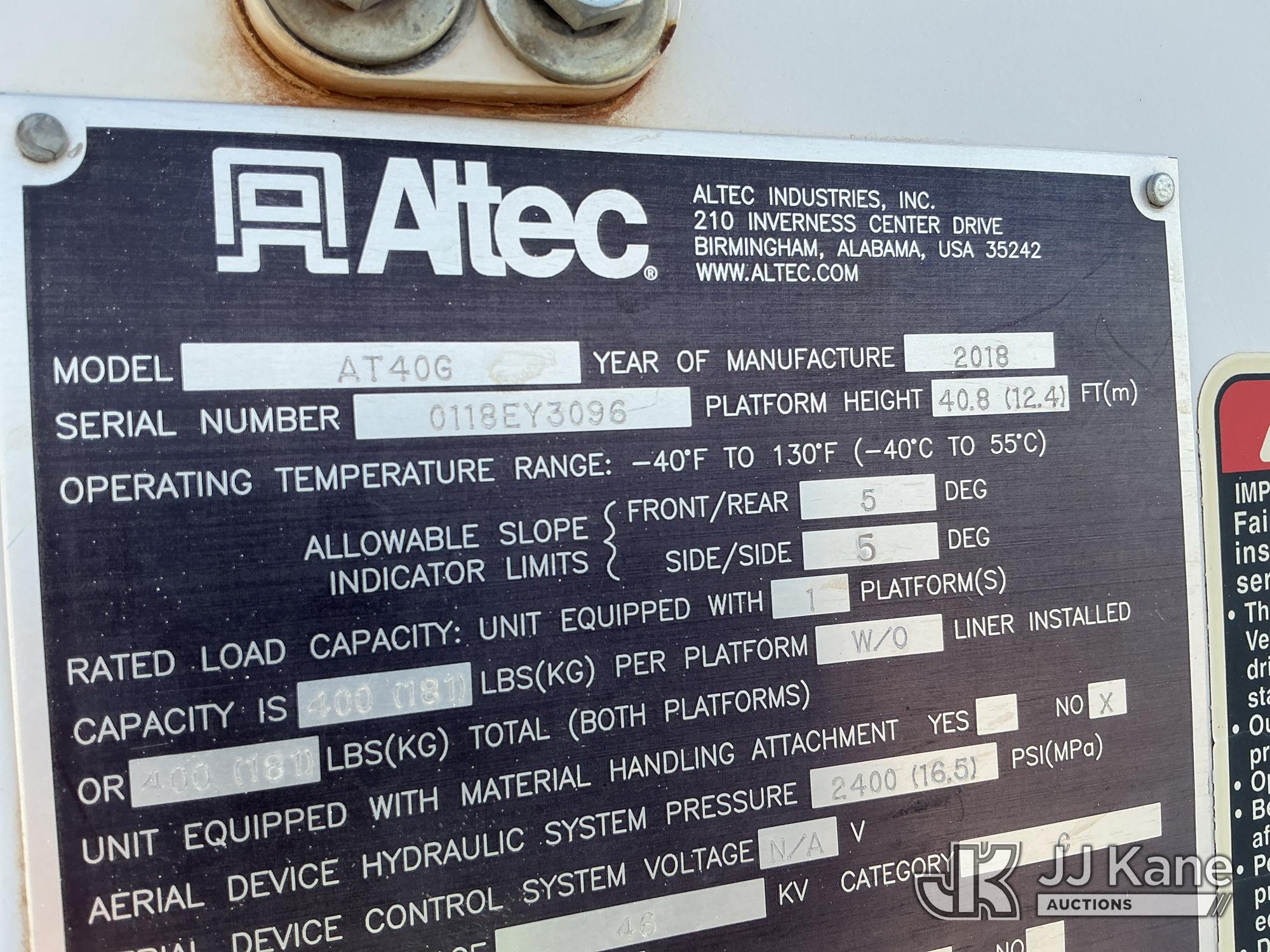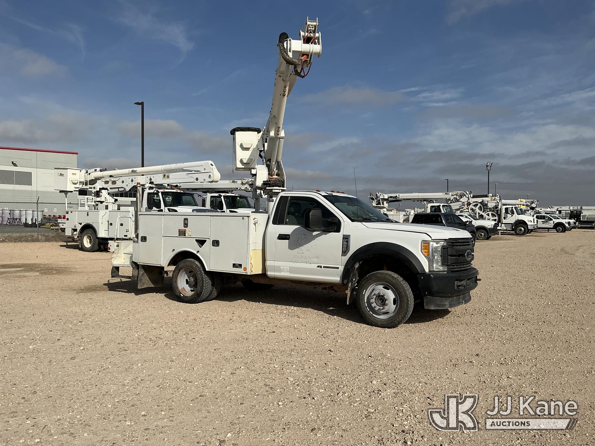 Altec AT40G, 45 ft, Articulating & Telescopic Bucket Truck s/n 0118EY3096, with single man bucket, mounted behind cab on 2017 Ford F550 Service Truck, 6.7L diesel, Auto, A/C, (156,111 miles) ((Runs, Moves & Upper Operates) (Dash Warning Indicator On, Hail Damage )) This is a Titled Item*