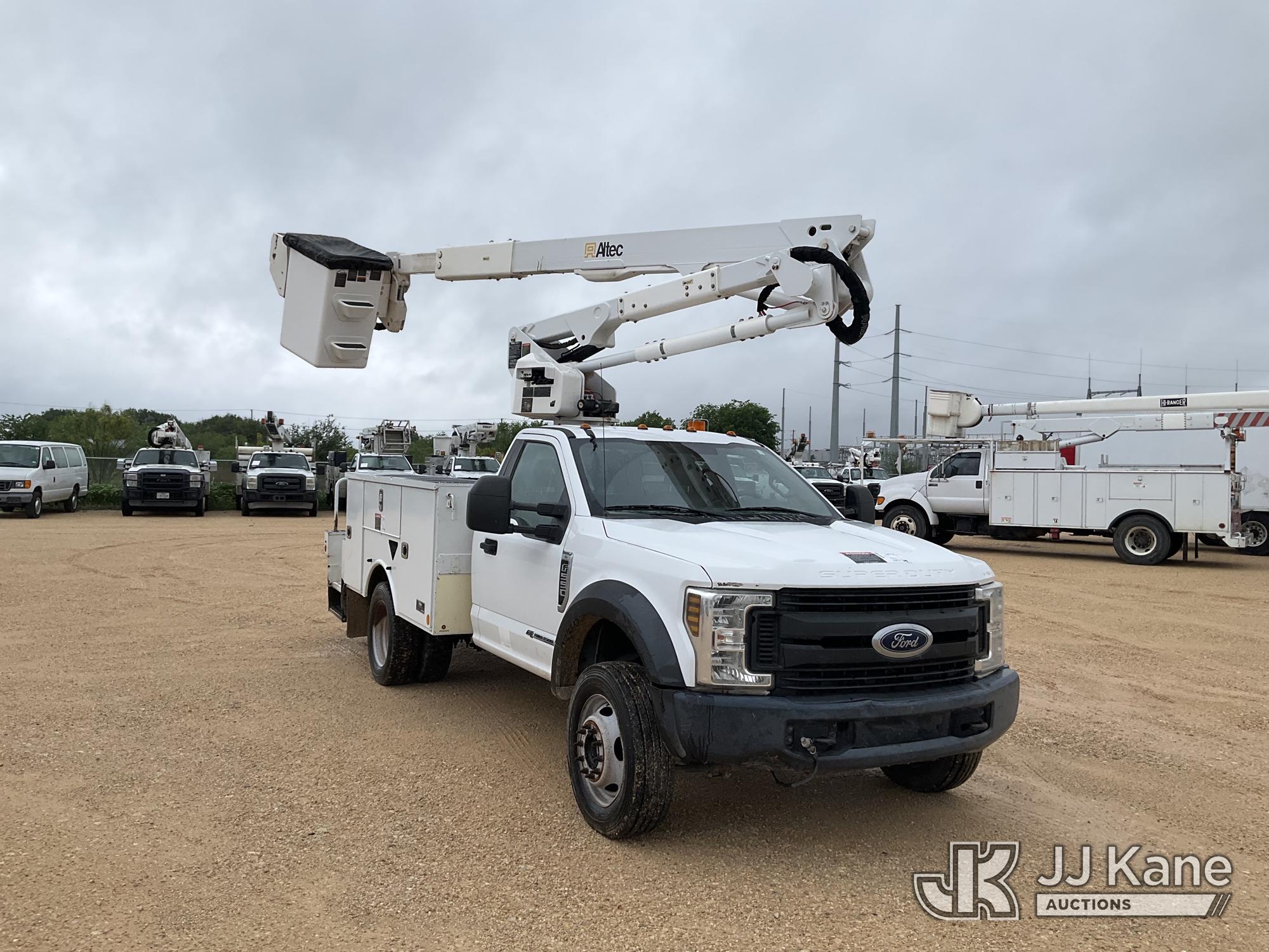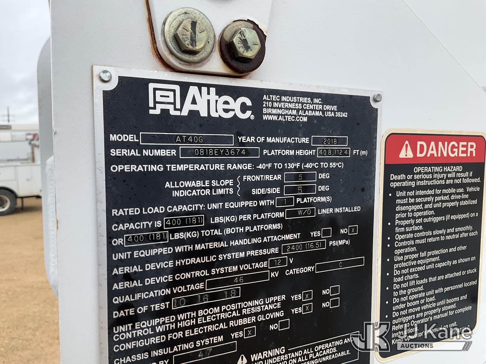 Altec AT40G, 45 ft, Articulating & Telescopic Bucket s/n 0818EY3674, with single man bucket, mounted behind cab on 2018 Ford F550 Service Truck, 6.7L diesel, Auto, A/C, (140,002 miles) (Runs, Moves, & Upper Operates) This is a Titled Item*