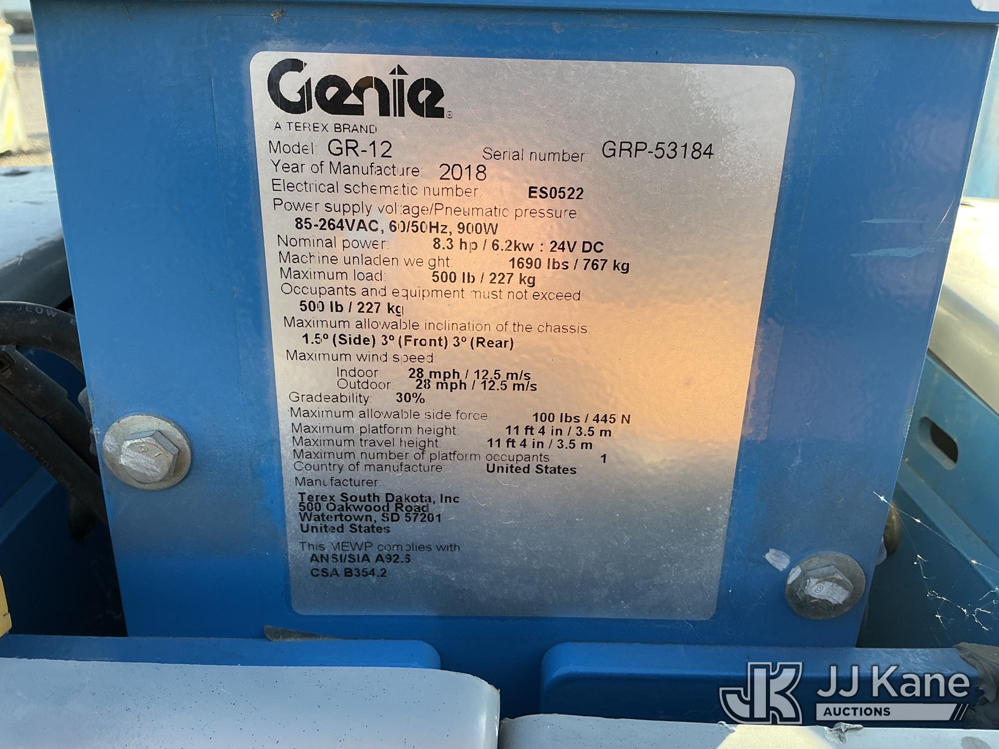 2018 Genie GR-12 Self-Propelled Manlift, s/n GRP-53184, electric, (Non Running, Conditions Unknown )*