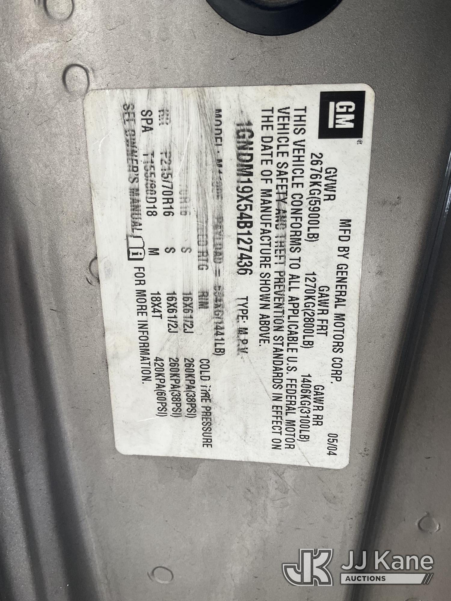 2004 Chevrolet Astro Passenger Van, 4.3L V6 OHV 12V RWD, GAS, Auto, A/C, (Exempt from Odometer Disclosure - Reads 28,060 miles) (Runs & Moves, Missing Catalytic Converter) (Bidding Restricted to Licensed Vehicle Dealers Only), This is a Titled Item*