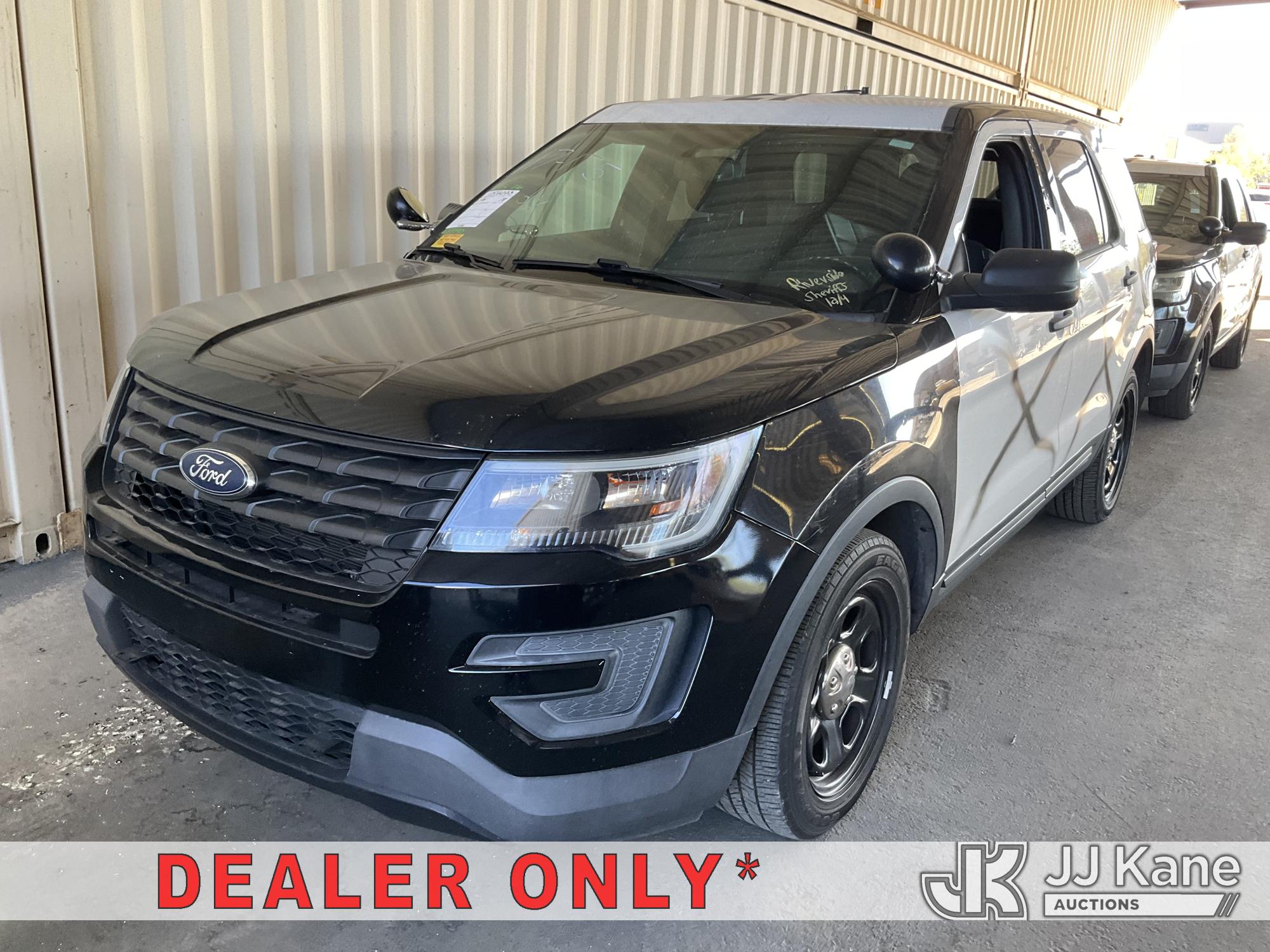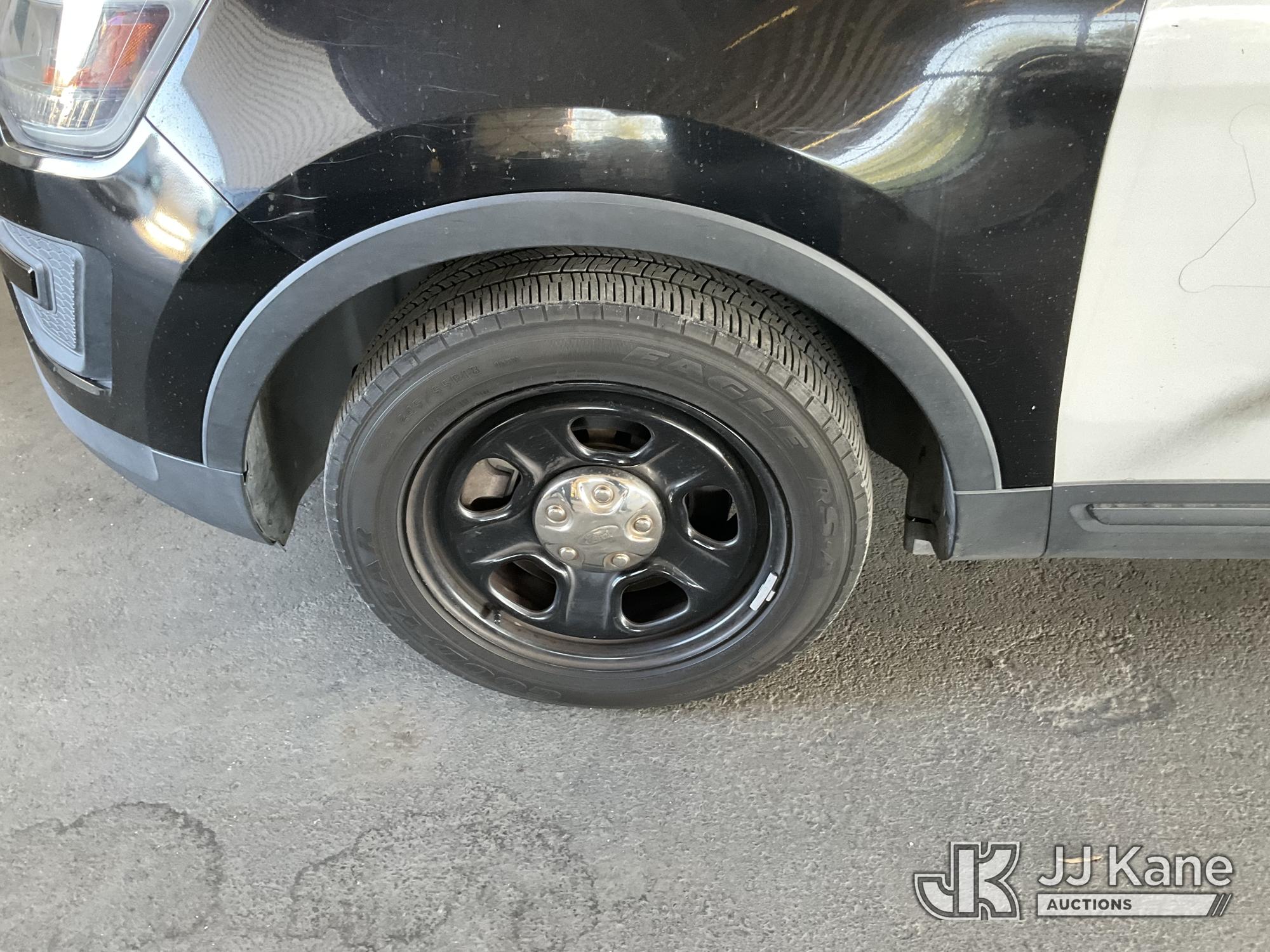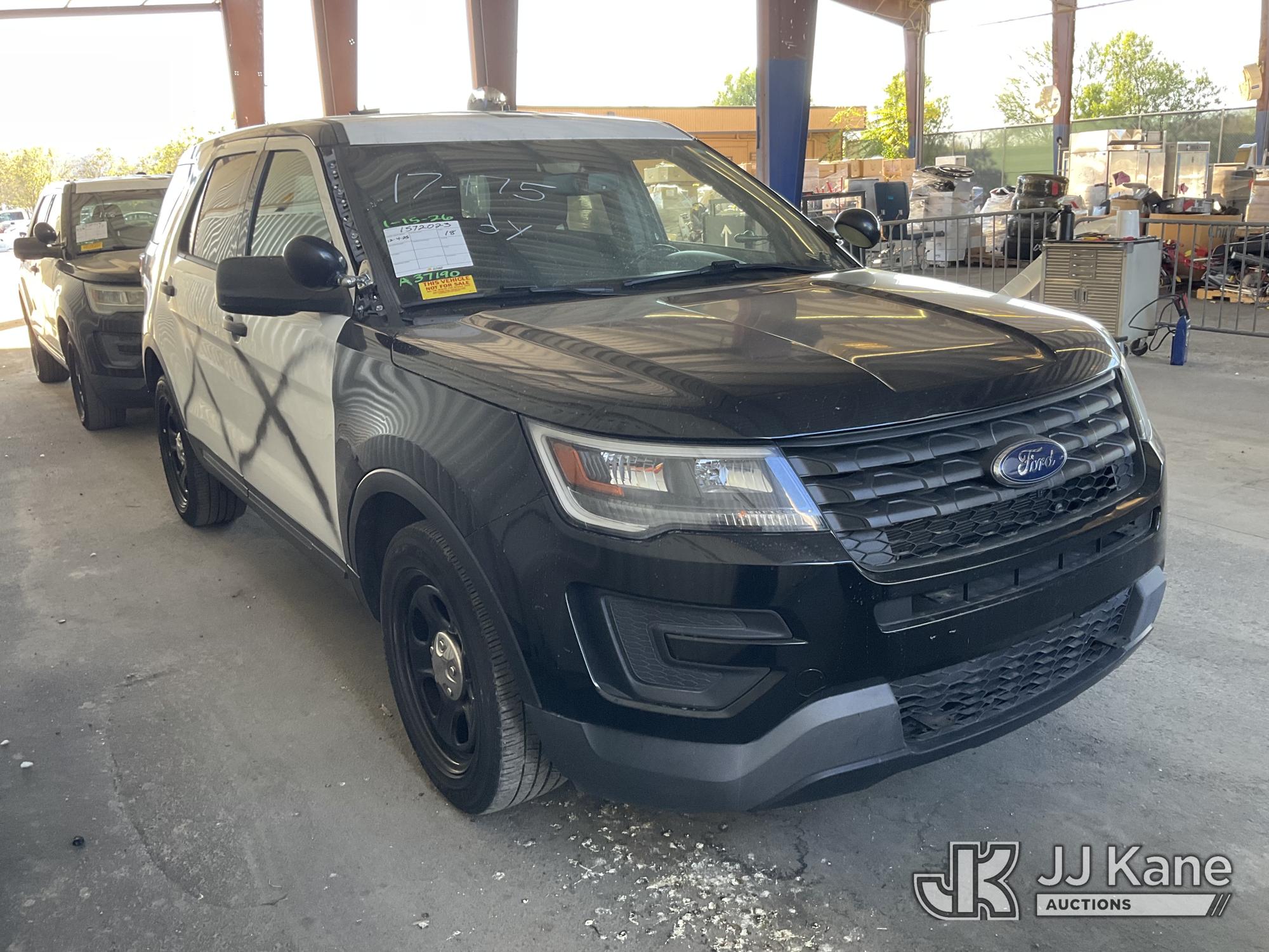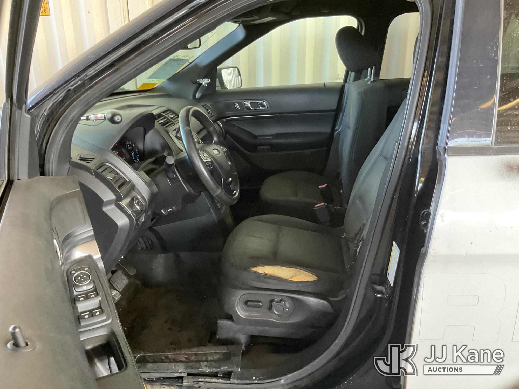 2018 Ford Explorer AWD Police Interceptor 4-Door Sport Utility Vehicle, s/n 1FM5K8AR5JGA37190, 6-cyl gas, 6-Speed Automatic, A/C, (120,397 miles) (Runs & Moves) (Interior Stripped Of Parts, Open Recall, Remedy Not Yet Available, Vehicle is subject to an open NHTSA safety recall related to IN SOME OF THE AFFECTED VEHICLES, IT MAY BE POSSIBLE THAT SOME OF THE EXTERIOR A-PILLAR APPLIQUE TRIM CLIP ATTACHMENTS ARE NOT PROPERLY ENGAGED DUE TO IMPROPER ASSEMBLY OR REPAIR. IF THIS OCCURS, THE A-PILLAR APPLIQUE TRIM, WHICH BORDERS THE RIGHT AND LEFT SIDE OF THE WINDSHIELD, MAY BE LOOSE, MISSING OR BECOME DETACHED WHILE DRIVING AND CAN CREATE A ROAD HAZARD FOR OTHER ROAD USERS, INCREASING THE RISK OF A CRASH, but a remedy for this recall does not appear to be available. Dealer is not authorized to perform the recall repair. Periodically contact the manufacturer or check the VIN on the NHTSA website at www.safercar.gov to determine whether a remedy for the recall is available. As soon as a remedy is available, arrange to have the recall remedied with a dealer from that make of car to make such repair.) (Bidding Restricted to Licensed Vehicle Dealers Only), This is a Titled Item*