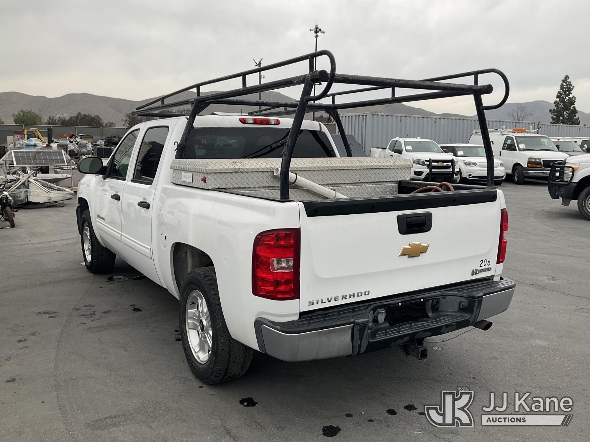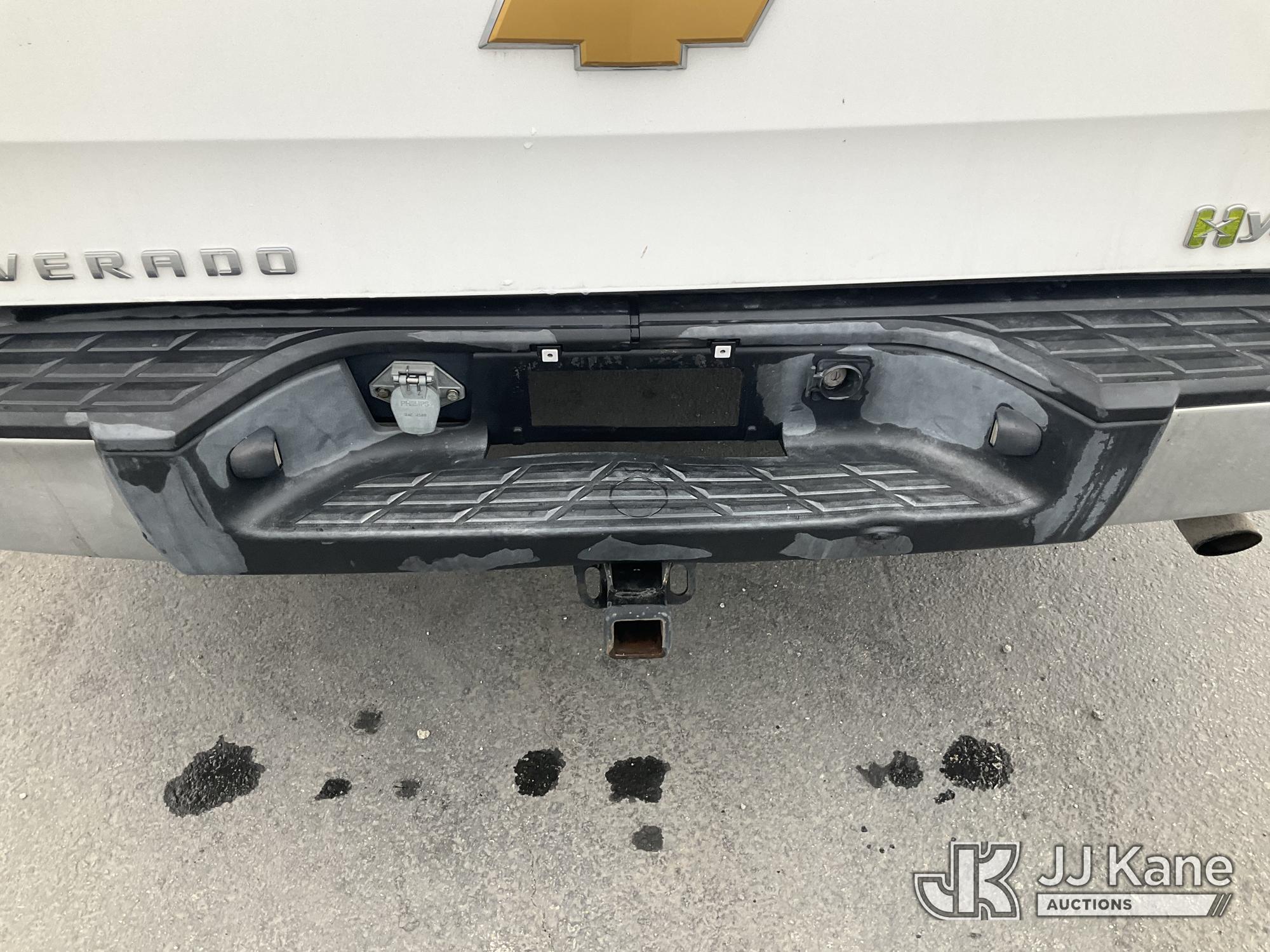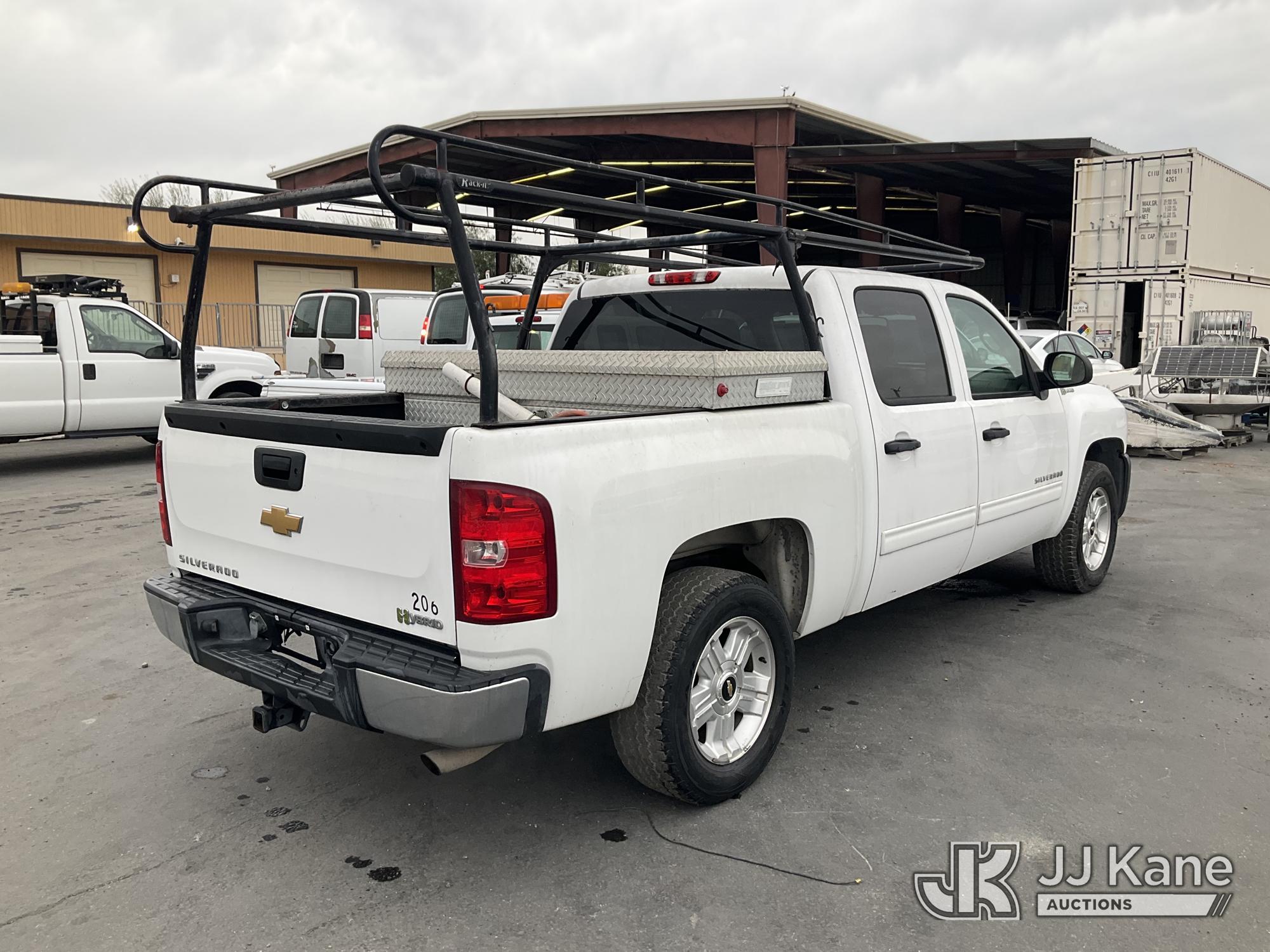 2013 Chevrolet Silverado hybrid Crew-Cab Pickup Truck, s/n 3GCUCUEJ4DG173362, 8-cyl Gas/Electric 4-Speed Automatic, A/C, with tow package, ladder rack, (80,778 miles) (Runs & Moves, Check Engine Light on, Hybrid Battery issue) (Bidding Restricted to Licensed Vehicle Dealers Only), This is a Titled Item*